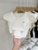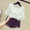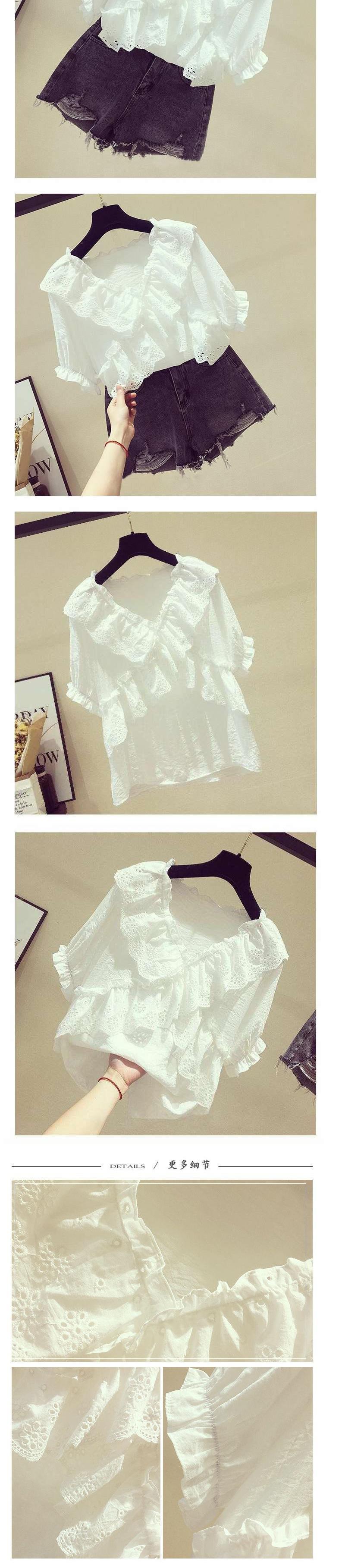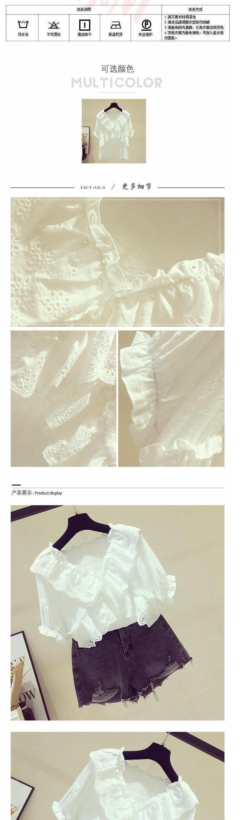 Camisa de Chifón con Cuello en V para Mujer 2024 Verano Nueva Manga Corta con Volantes Cuello de Muñeca Moda Holgada Look Adelgazante Top