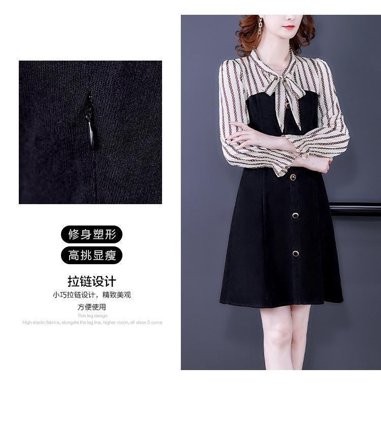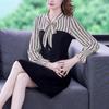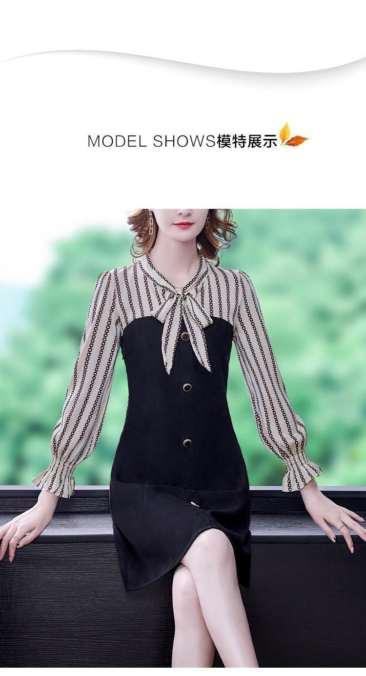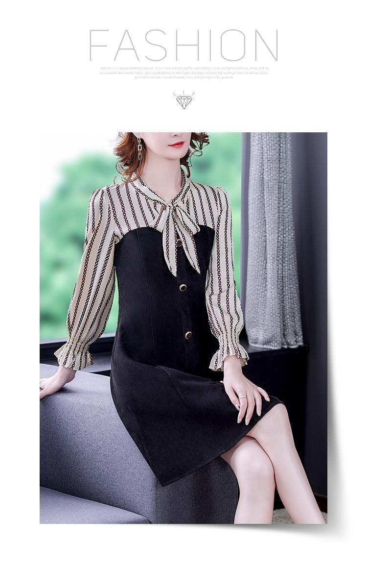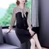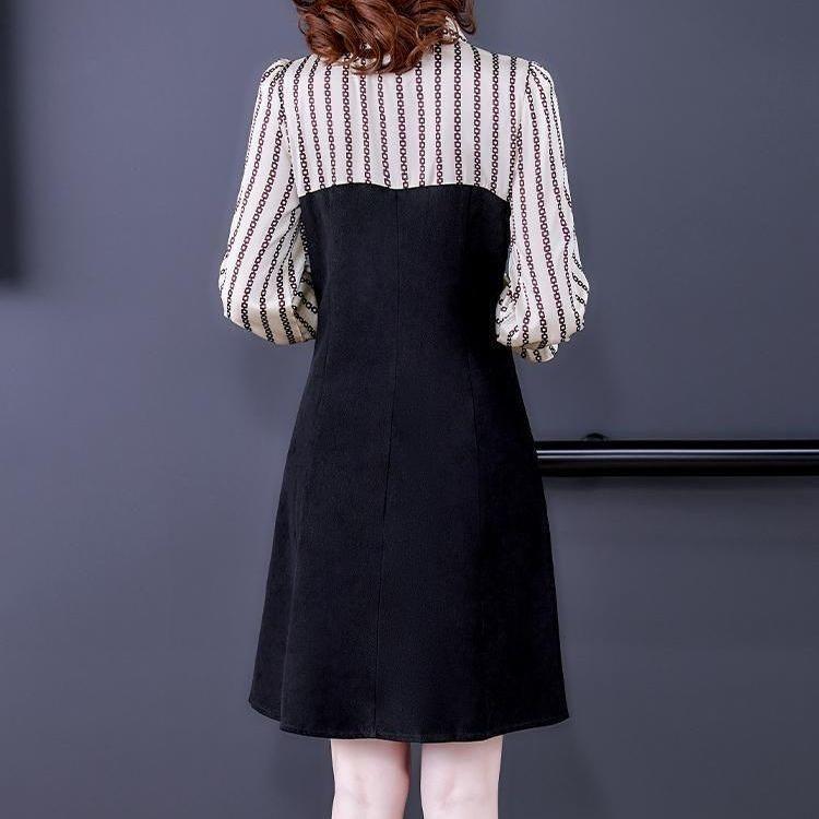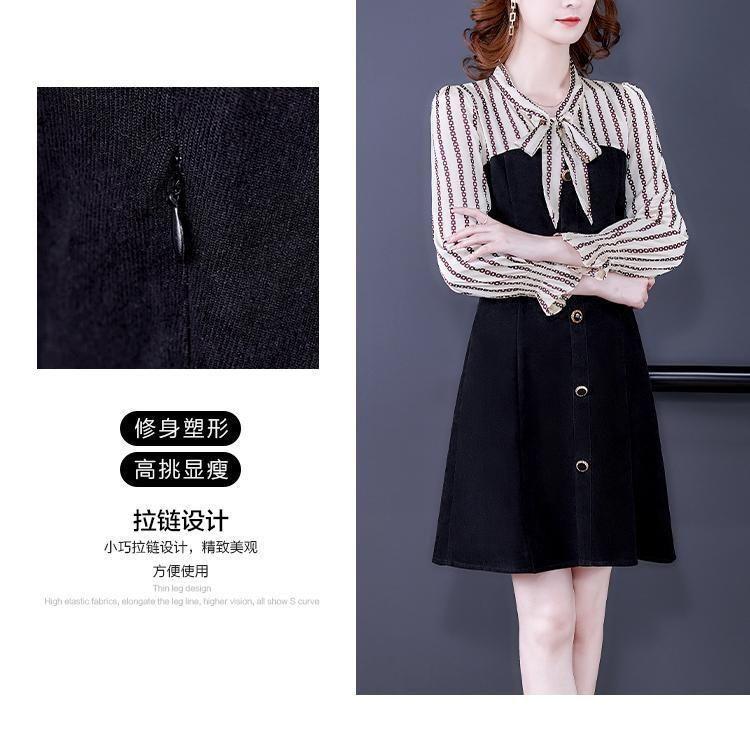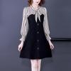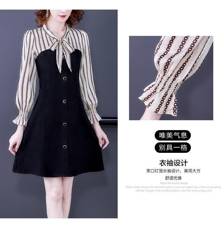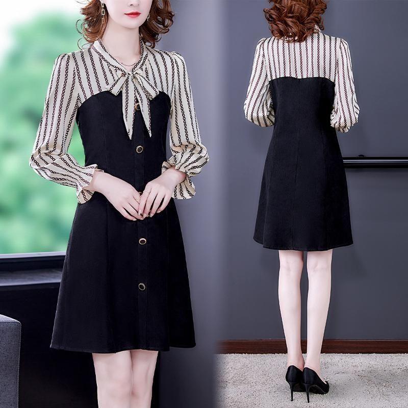 Compra Vestido de Línea A Diario para Mujer Estilo Primavera y Otoño Diseño Francés Nicho Lazo Empalmado Manga Larga Adelgazante para Ir al Trabajo al por mayor en Joom.pro