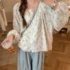 Camisa Floral de Manga Larga Estilo Fresco para Mujer Nueva de Principio de Primavera Holgada Adelgazante Cuello Redondo Diseño Dulce Versátil Camisa de Gasa