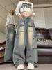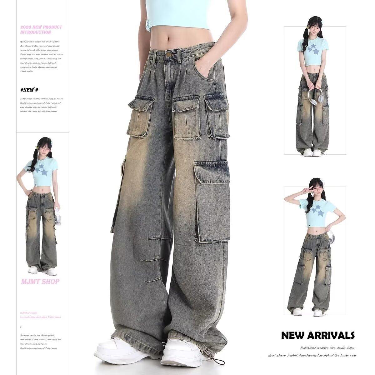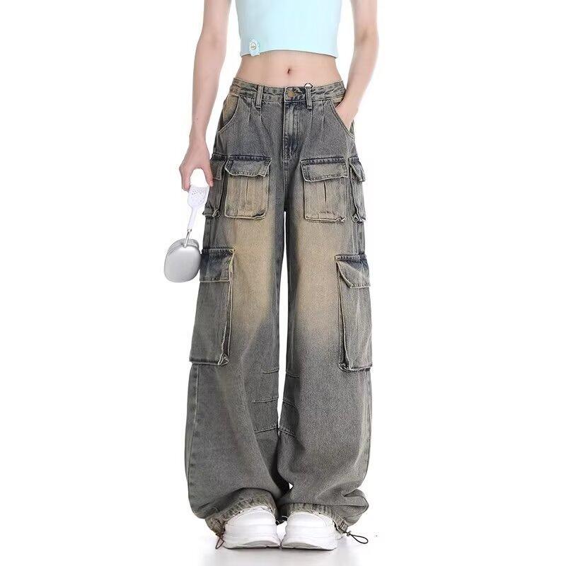 Diseño Sense High Street Estilo Americano Monos Vintage para Mujer Otoño Nuevos Jeans de Pierna Ancha Pantalones Sueltos de Moda de Marca Vibe