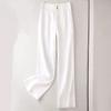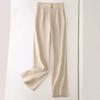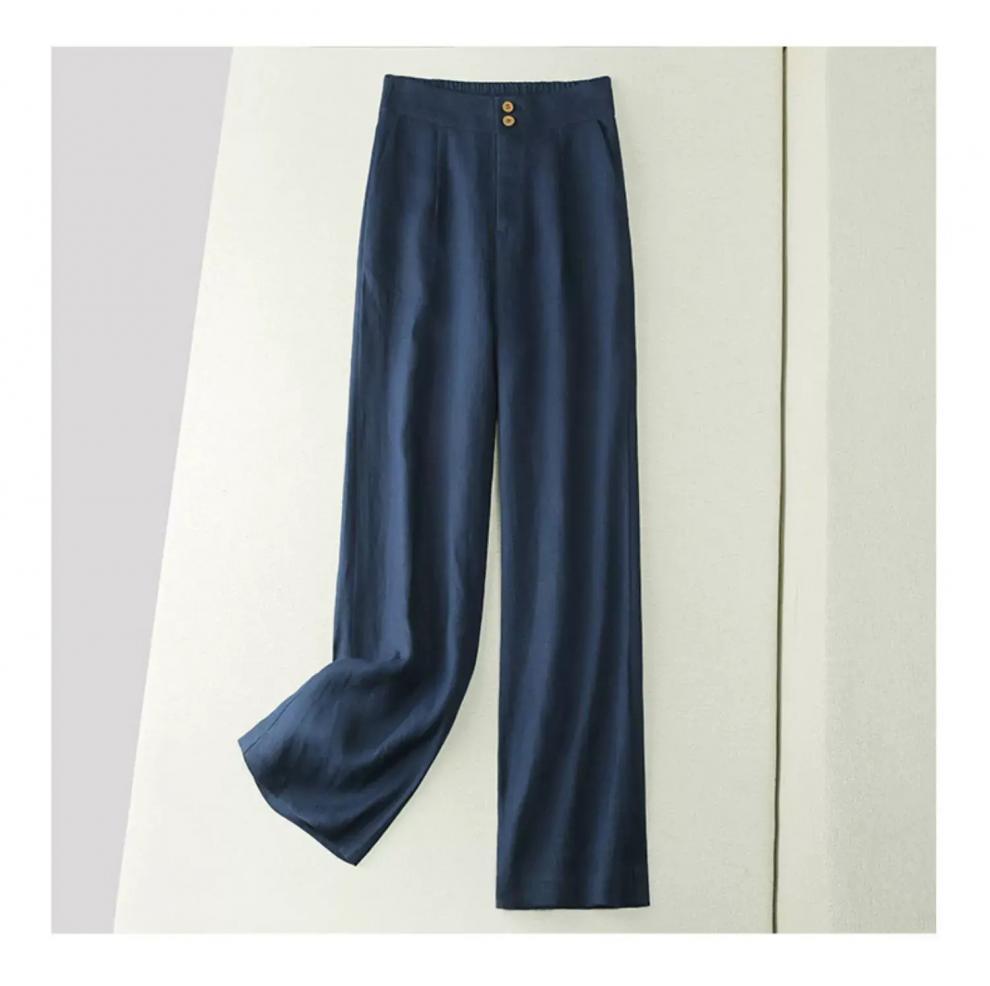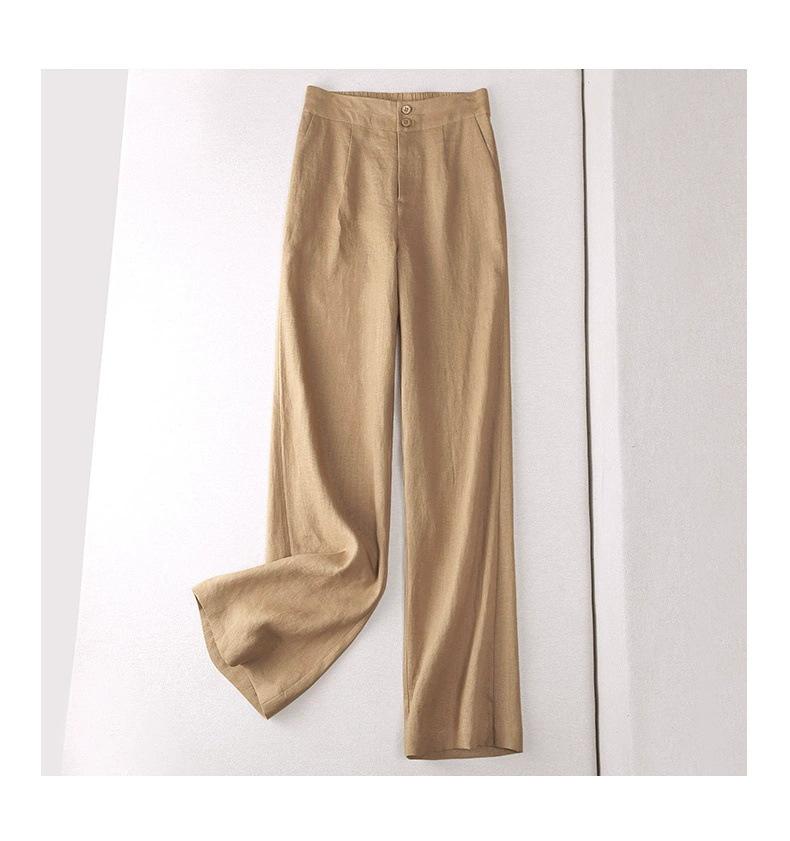 Pantalones de Pierna Ancha de Algodón Lino para Mujer de Color Sólido para Ir al Trabajo Pantalones Casuales Nuevos de Primavera y Otoño para Mujer Pantalones de Pierna Recta Adelgazantes Versátiles Pantalones Casuales