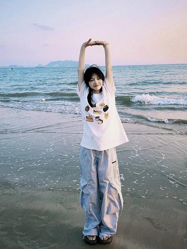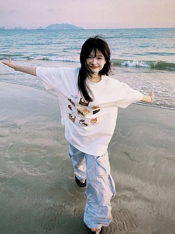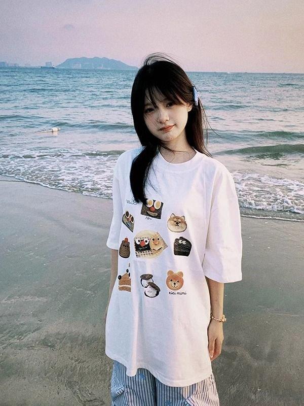 Tops de Camisetas de Media Manga Estampadas con Expresiones Populares Camisetas de Algodón Puro de Manga Corta para Mujer Ins Super Popular Estilo Preppy Verano para Hombre