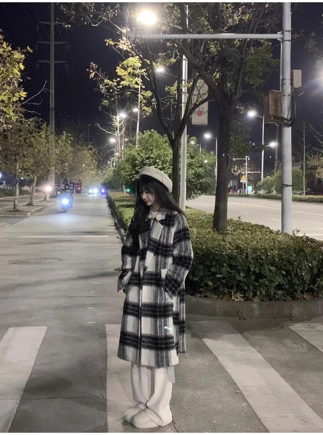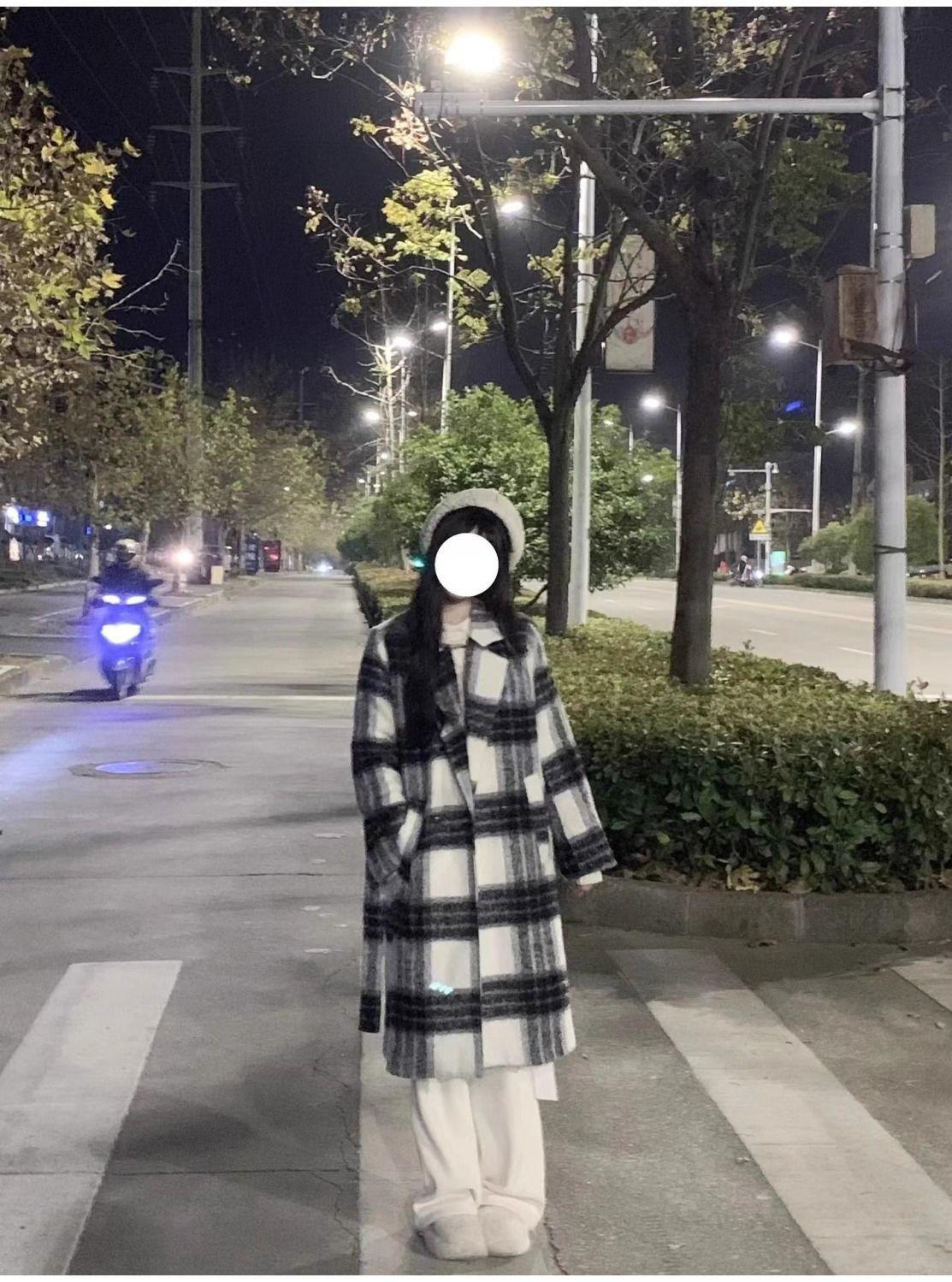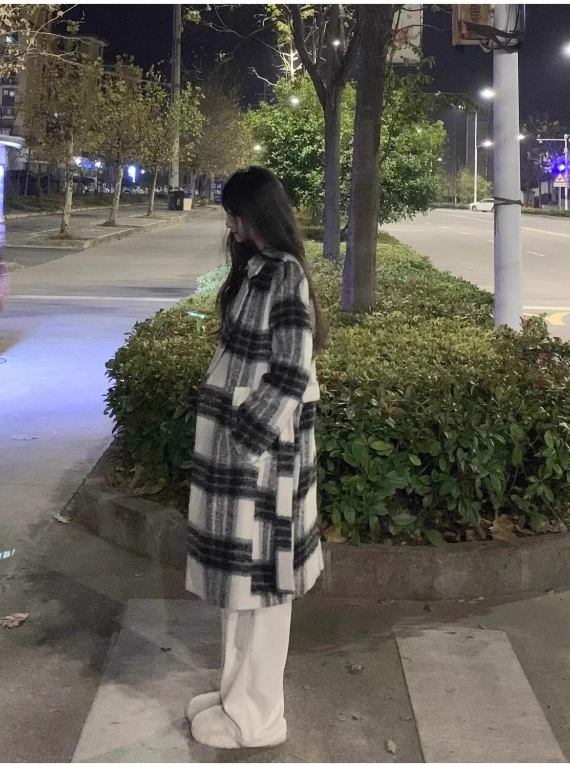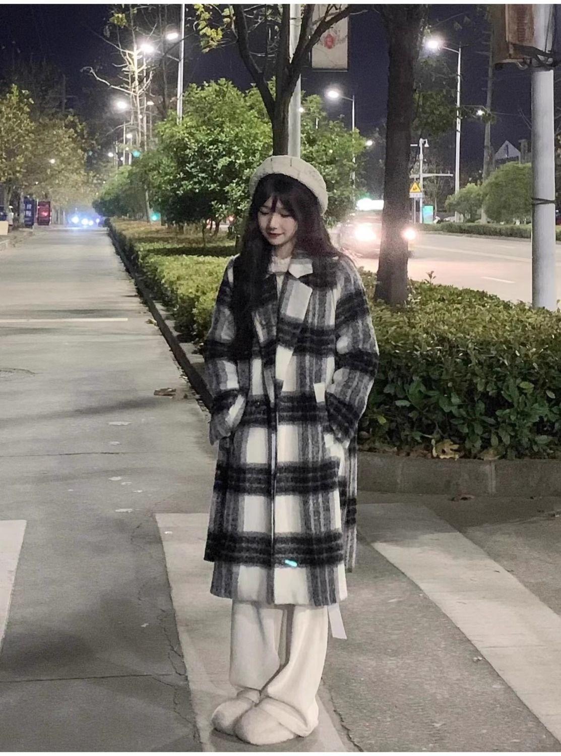 Abrigo de Lana a Cuadros para Mujer para Otoño e Invierno Nuevo Estilo Coreano Pequeño de Alta Gama Estilo Suave Abrigo de Lana Trendy