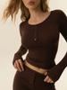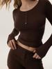 Conjunto de dos piezas de moda europea y americana transfronteriza para la primavera de 2025, nuevo, top de manga larga estilo botón con cuello redondo, shorts ajustados