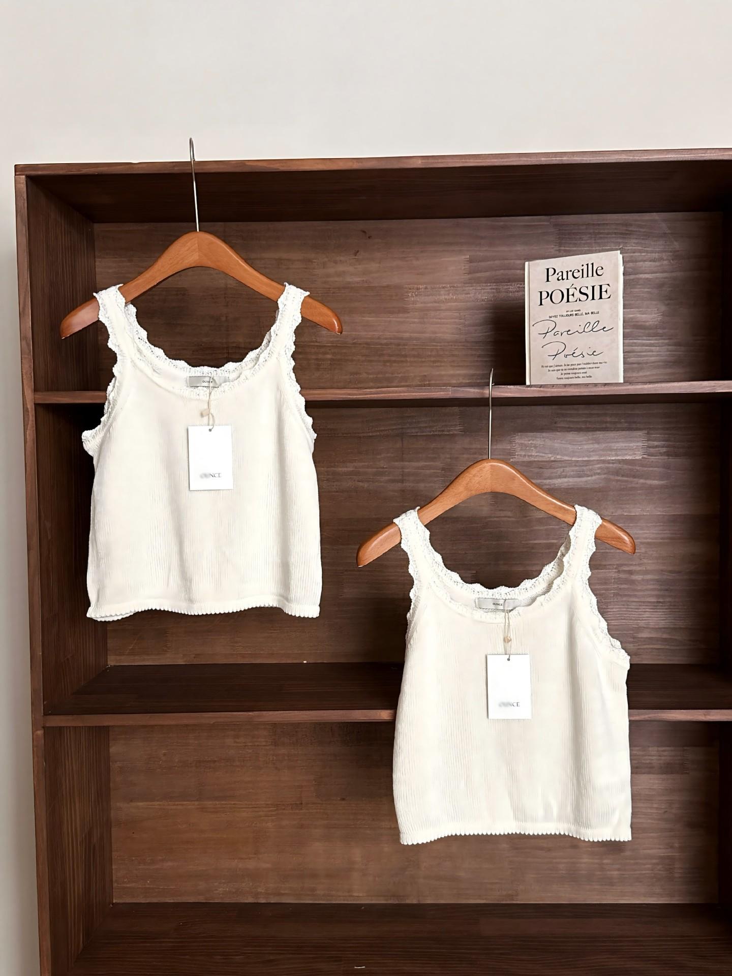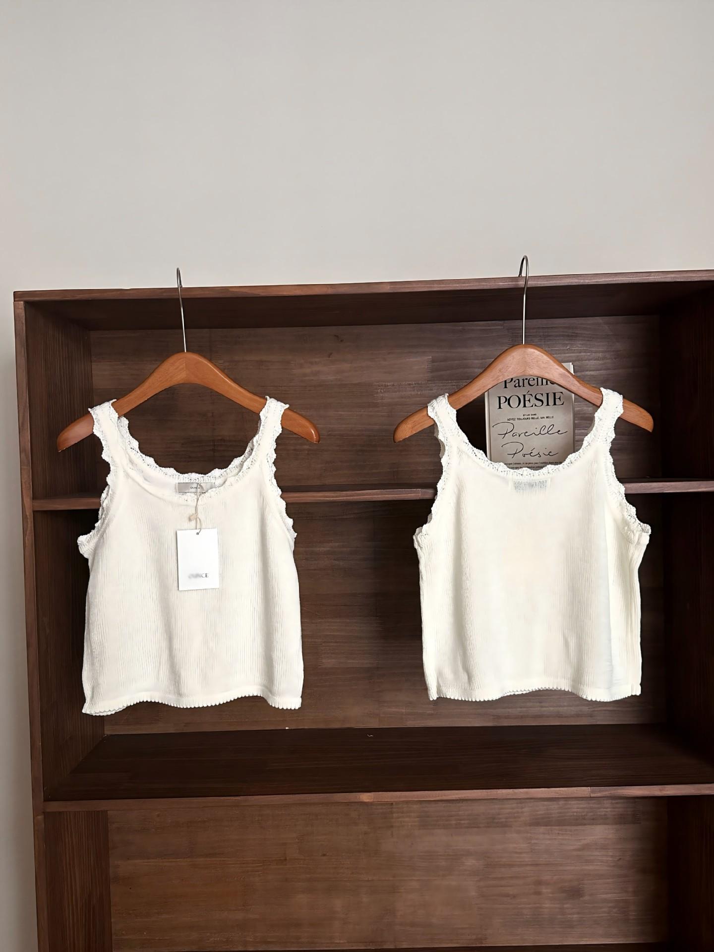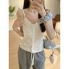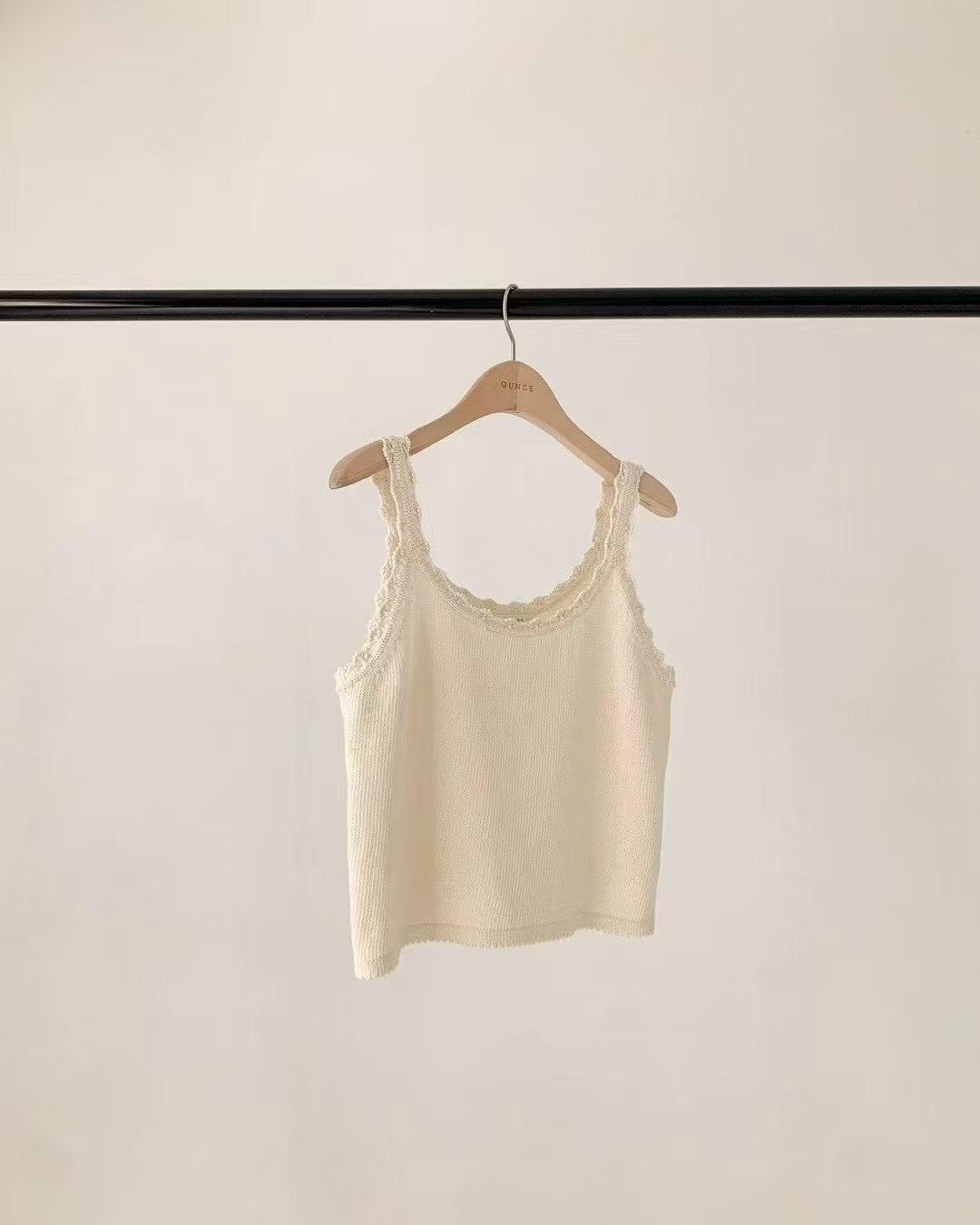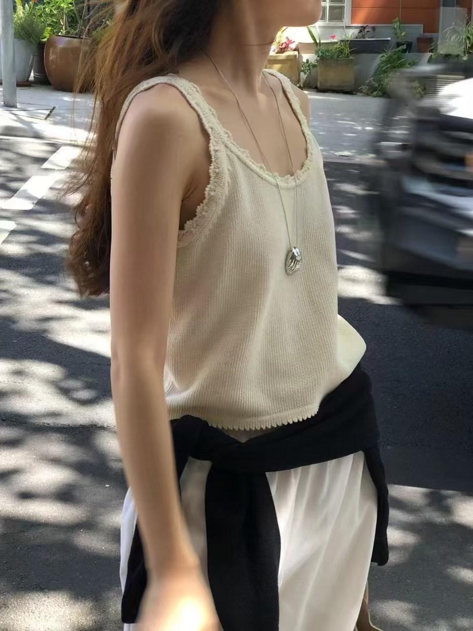 En stock Chaleco de encaje de color sólido 2025 Verano para mujer Estilo coreano Combinación con todo Suéter Camiseta sin mangas oun * e