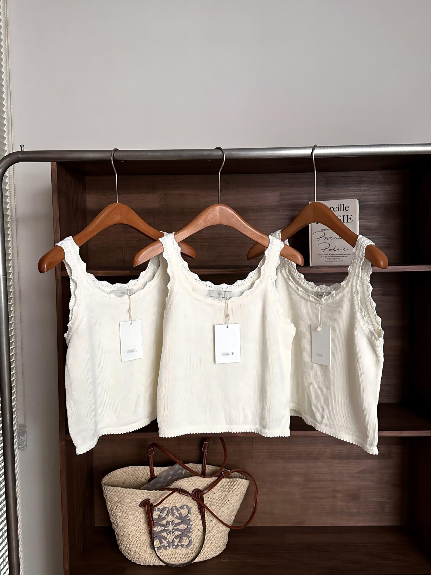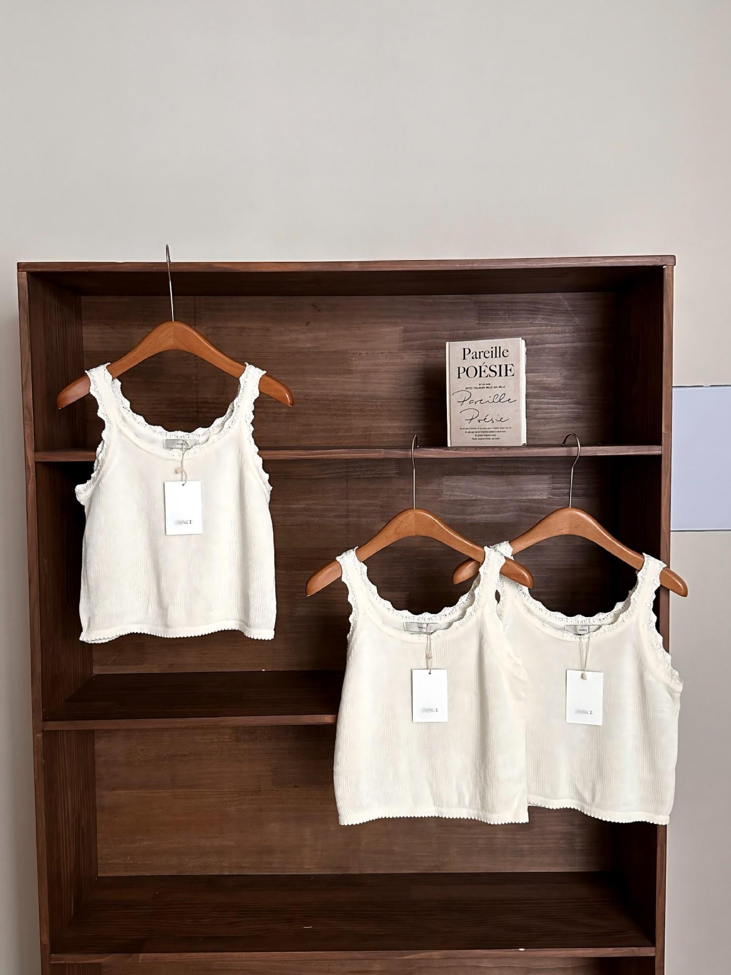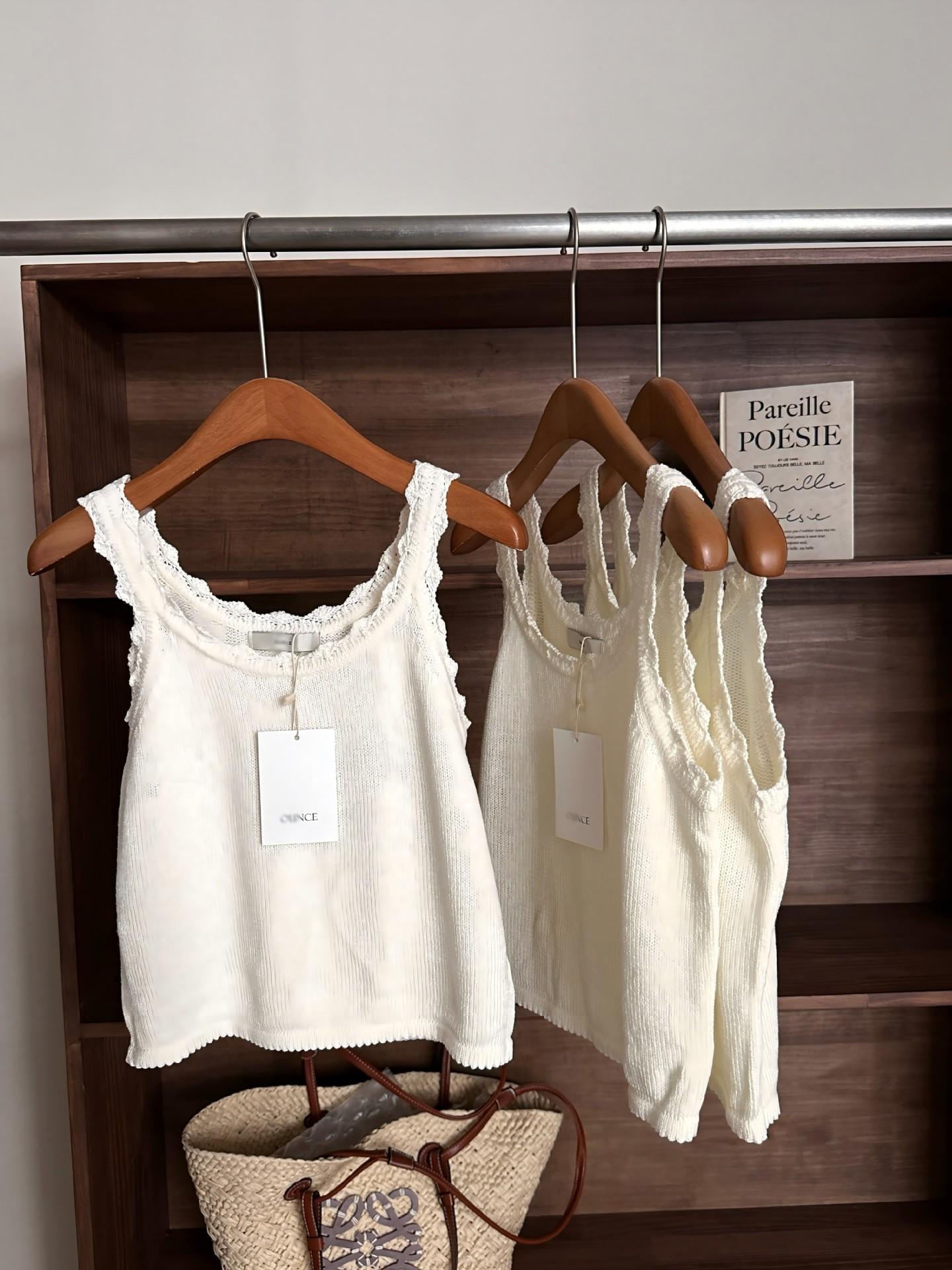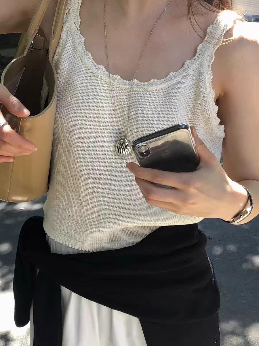 En stock Chaleco de encaje de color sólido 2025 Verano para mujer Estilo coreano Combinación con todo Suéter Camiseta sin mangas oun * e