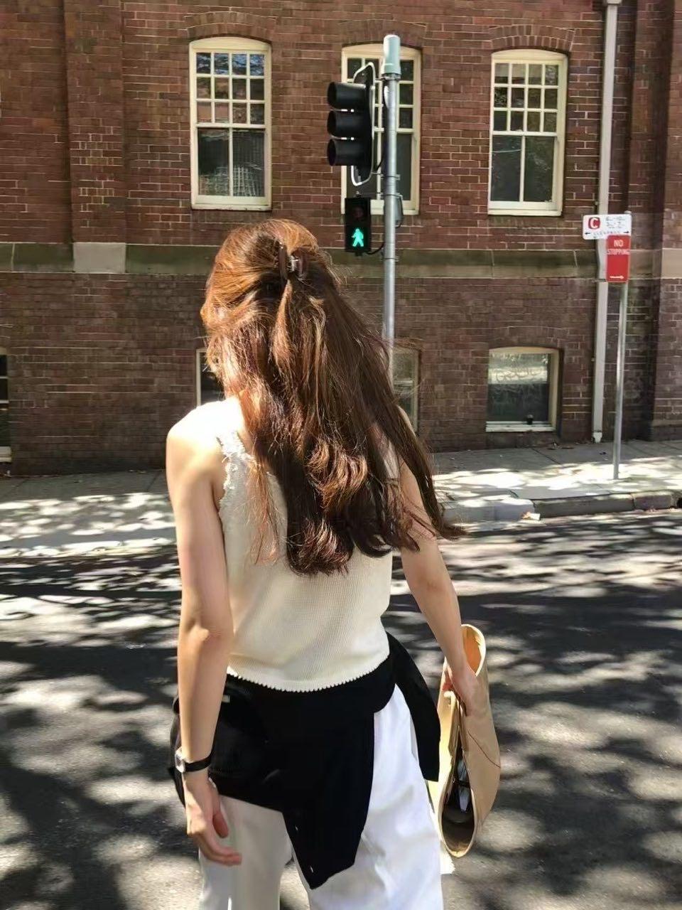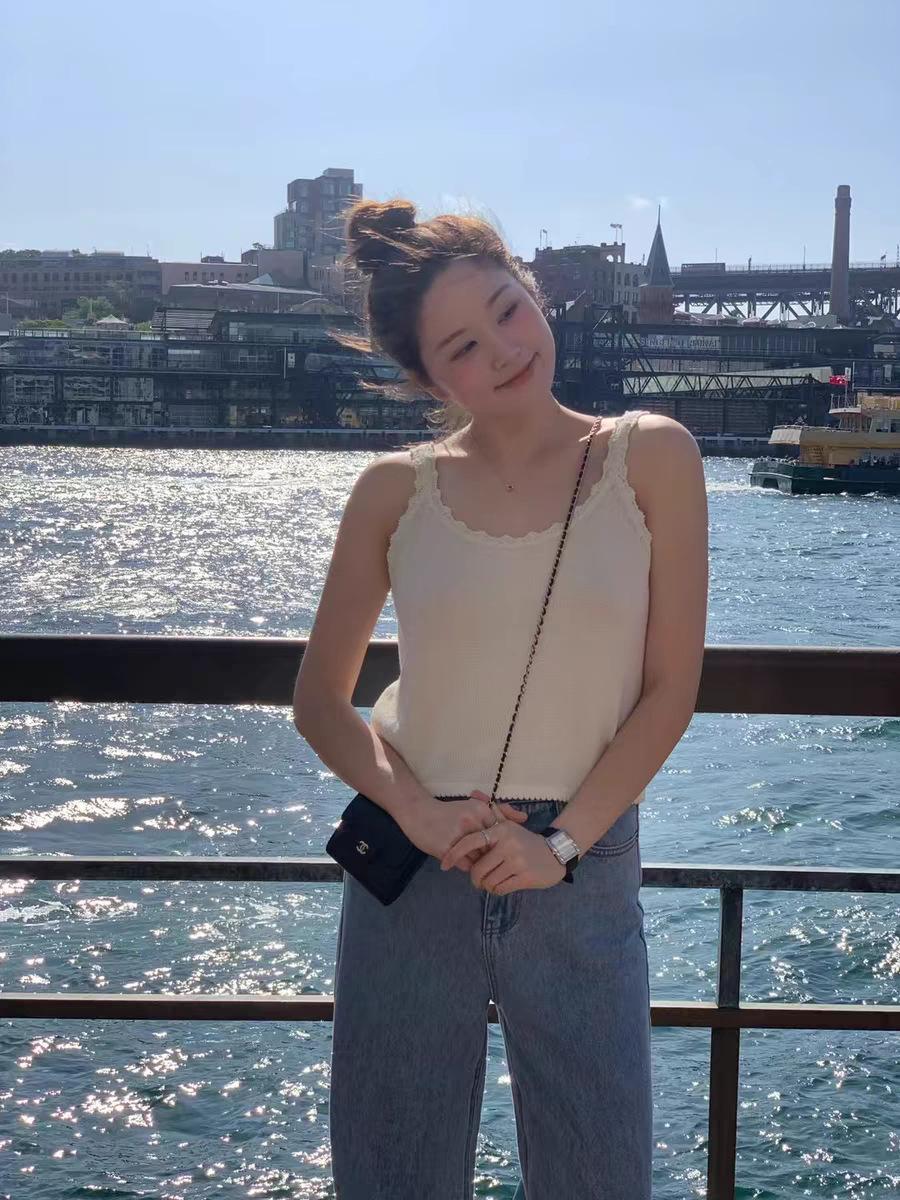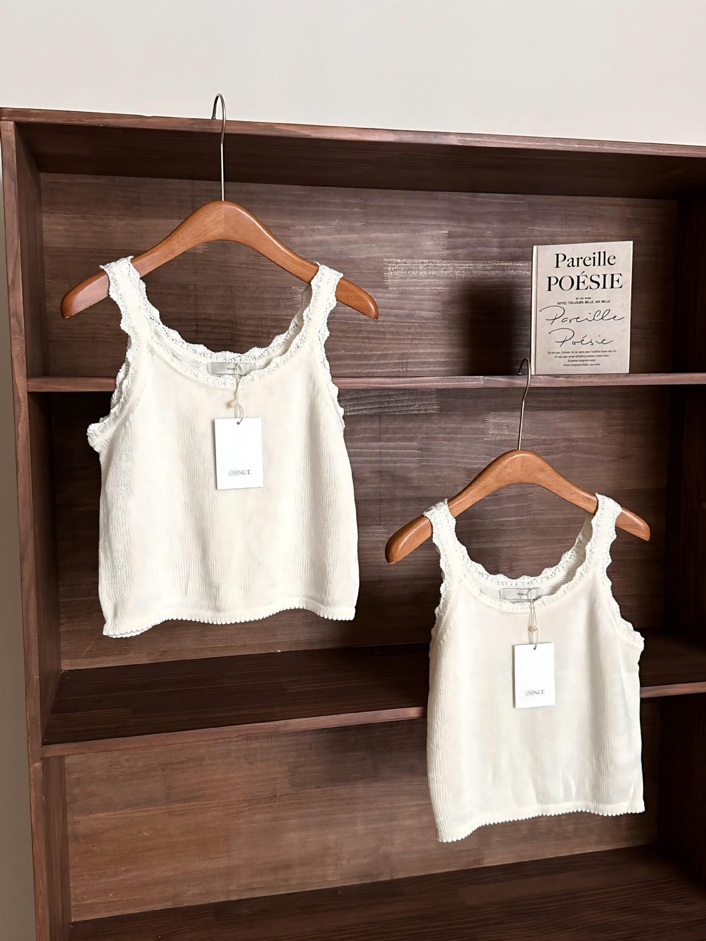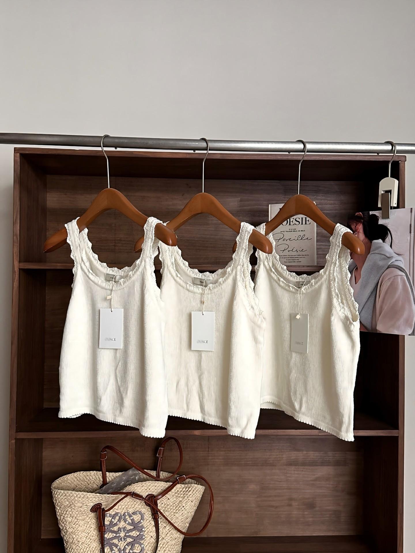 En stock Chaleco de encaje de color sólido 2025 Verano para mujer Estilo coreano Combinación con todo Suéter Camiseta sin mangas oun * e