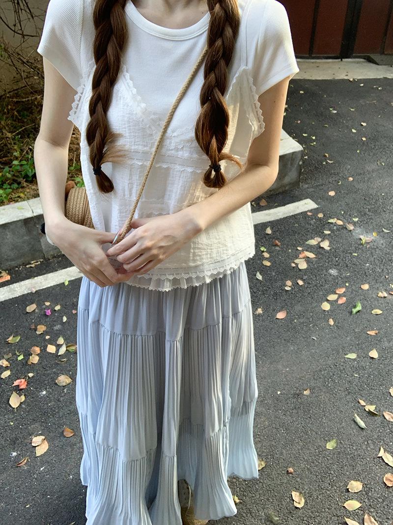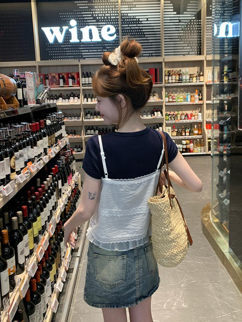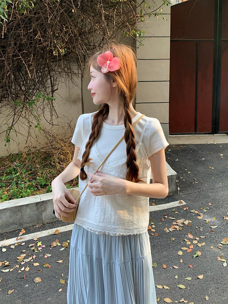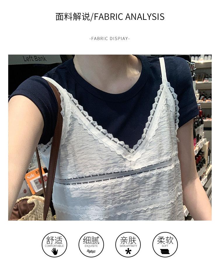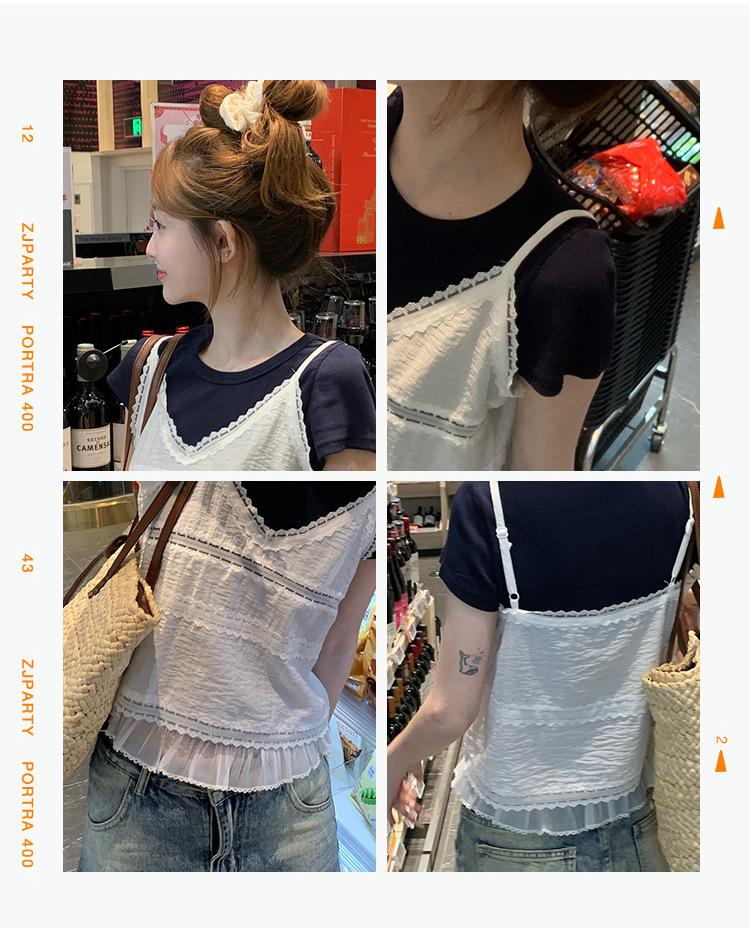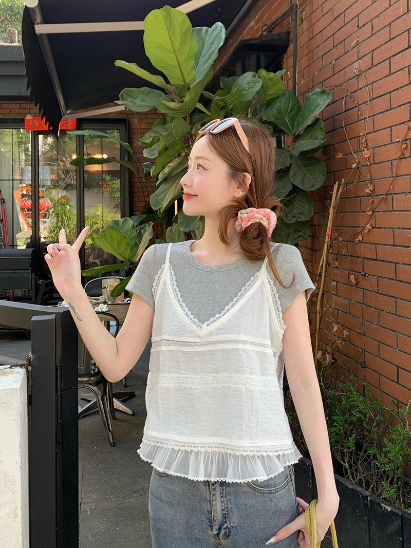 Camisola de Encaje Crochet Falso de Dos Piezas Estilo Francés, Camiseta de Manga Corta para Mujer, Diseño de Verano, Corta y Chic, Top Impresionante Ins