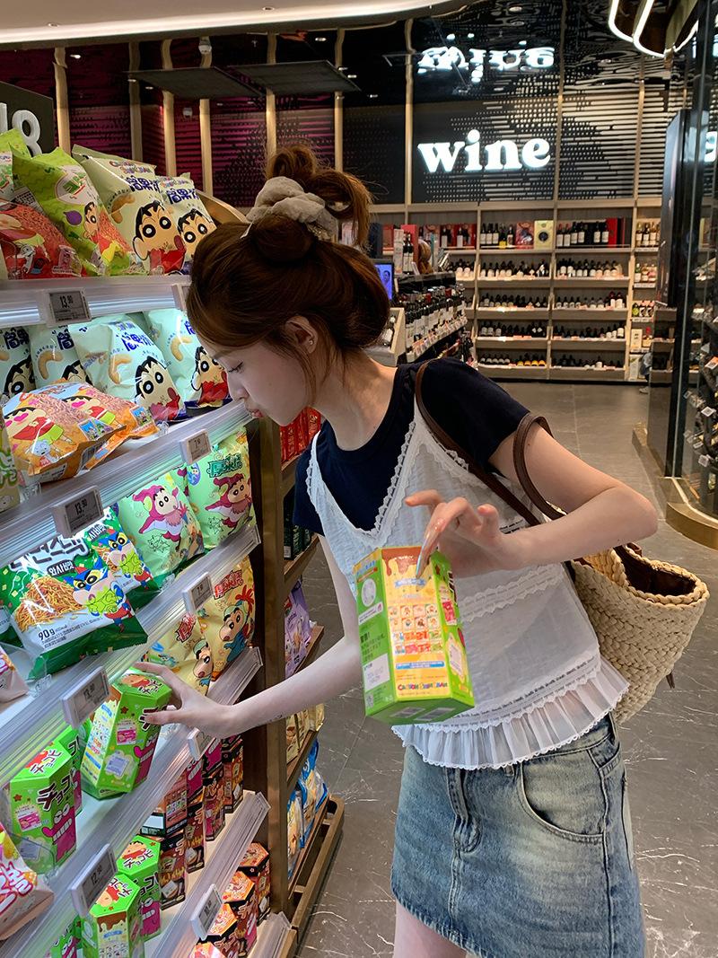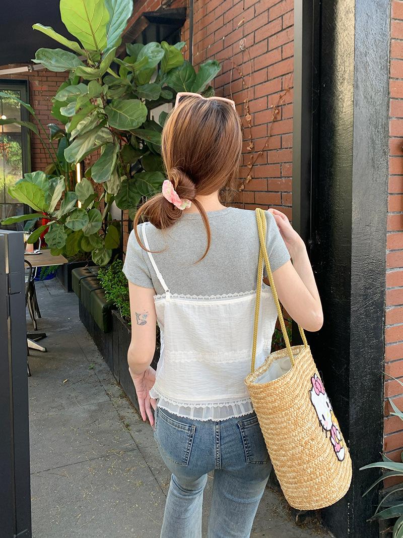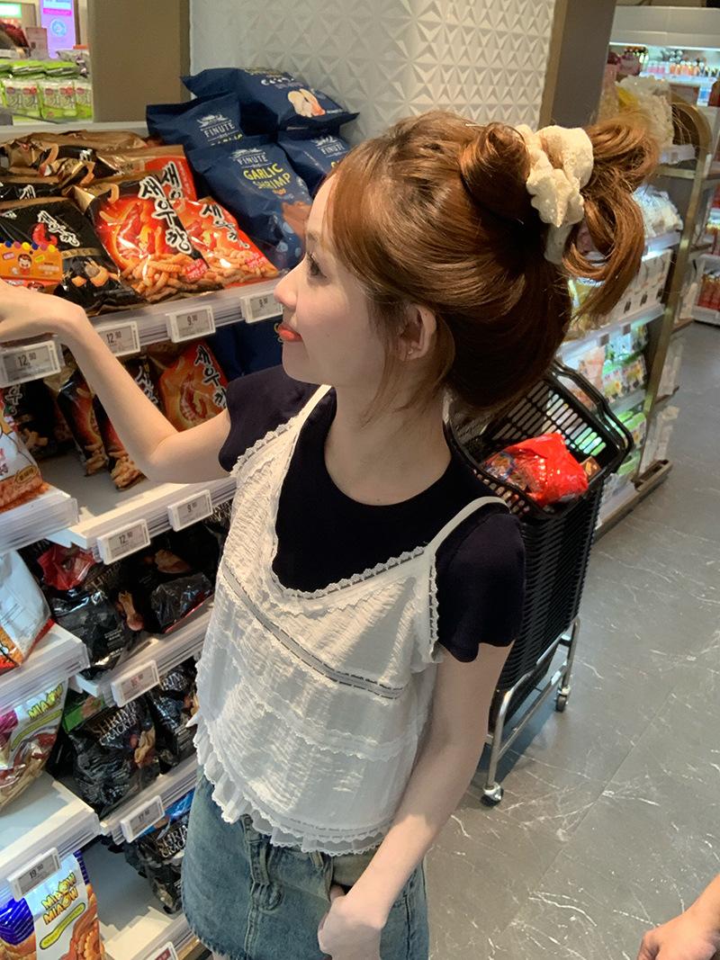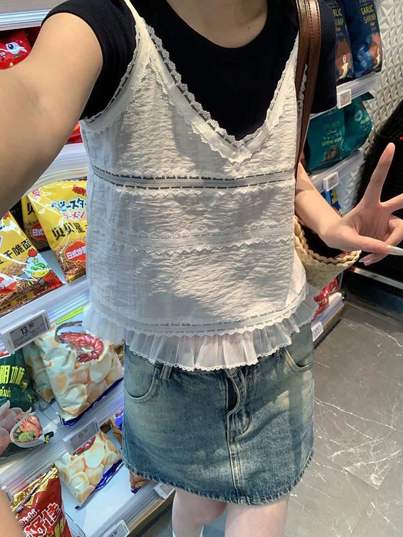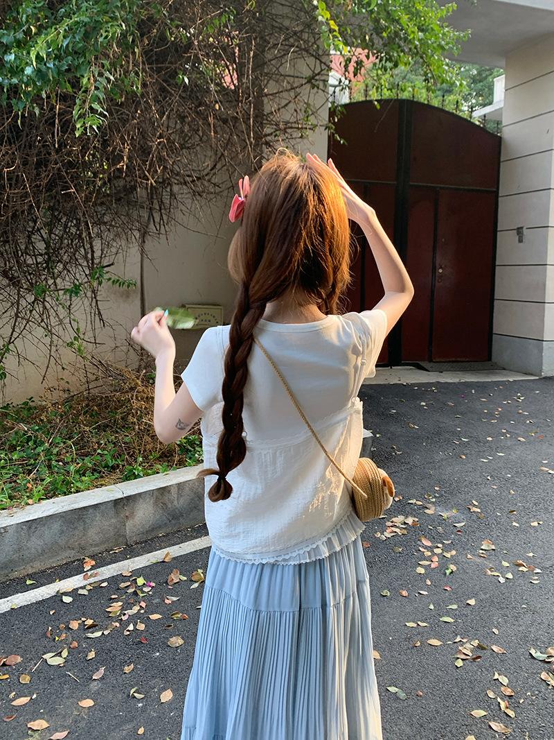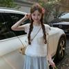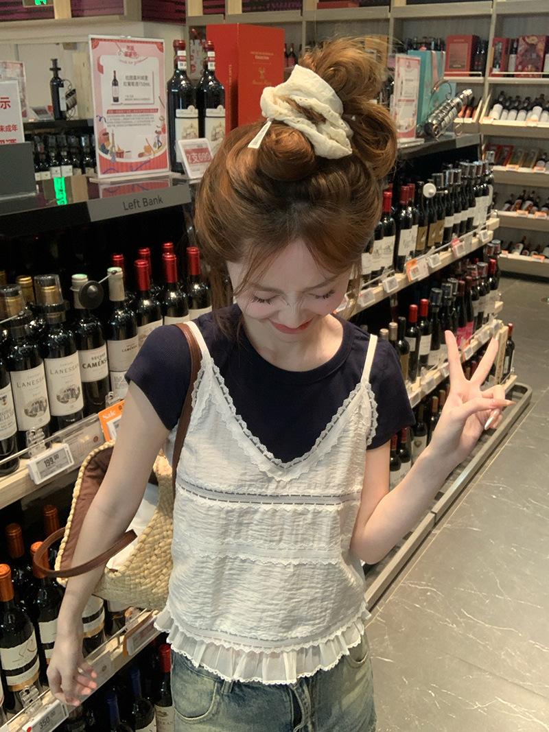 Camisola de Encaje Crochet Falso de Dos Piezas Estilo Francés, Camiseta de Manga Corta para Mujer, Diseño de Verano, Corta y Chic, Top Impresionante Ins