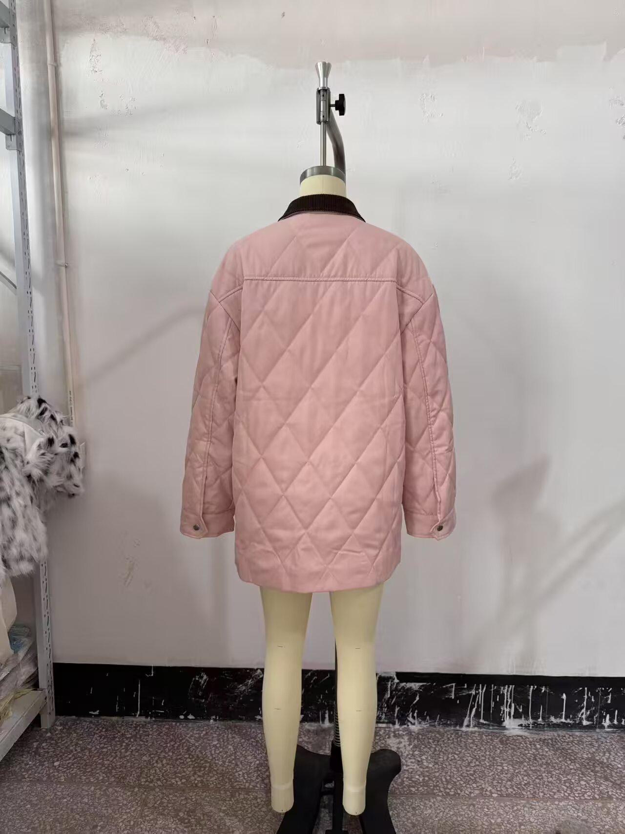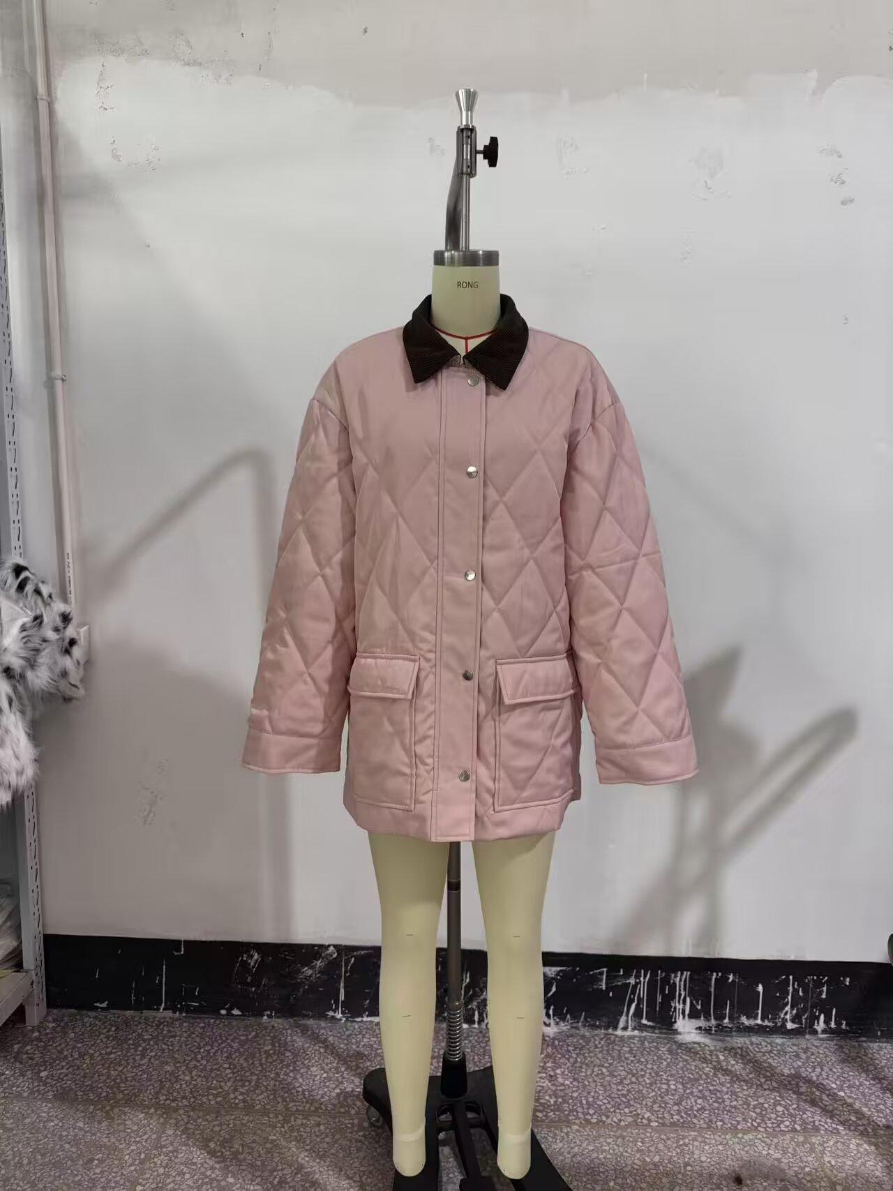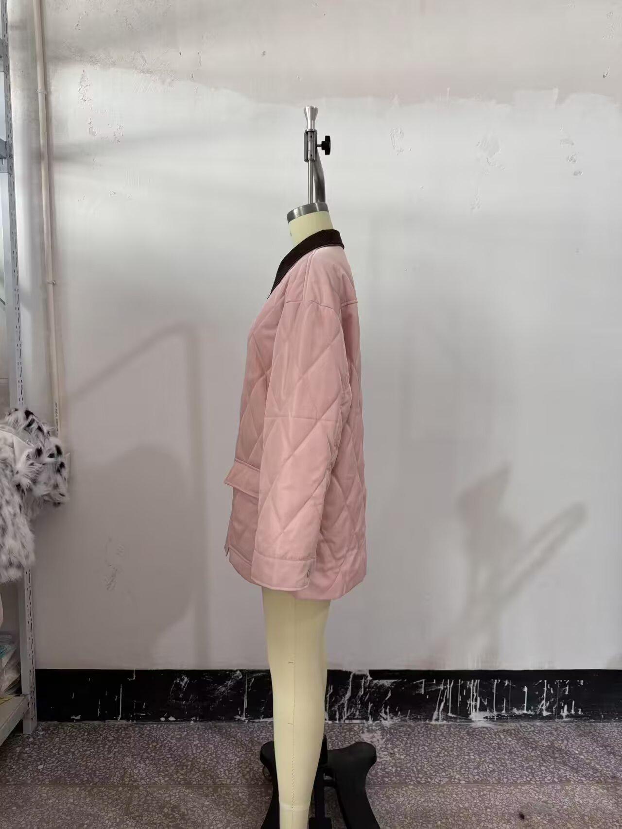 Otoño/Invierno 2025 Nueva Moda Versátil Casual Pana Patchwork Cuello Acolchado Diamante Chaqueta de Trabajo Abrigo de Algodón