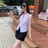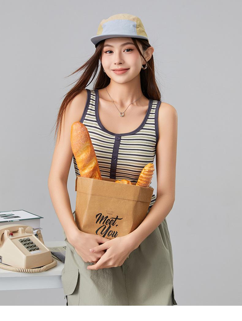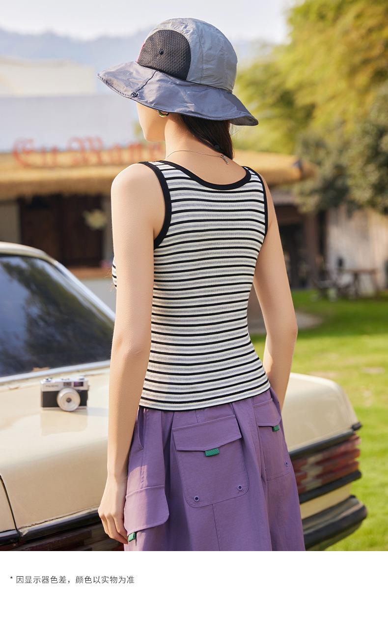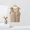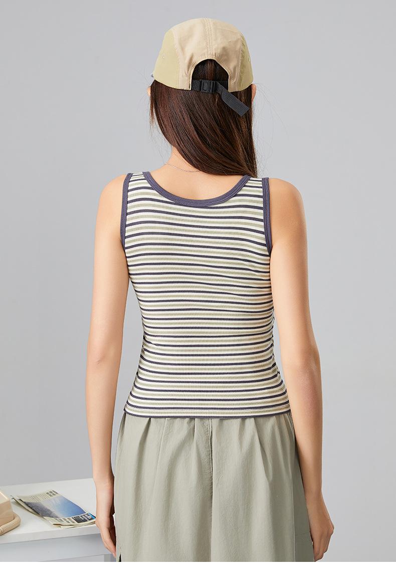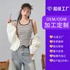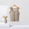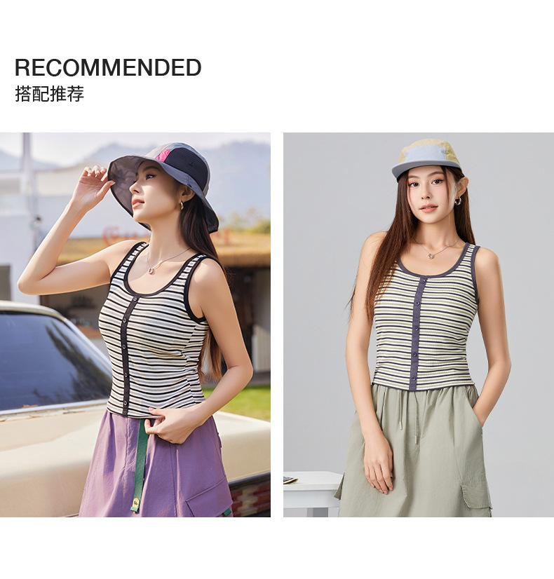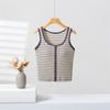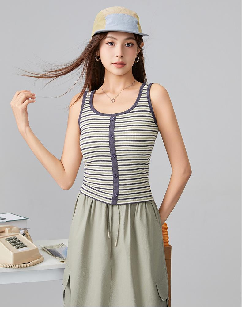 [Personalizado] 2025 Primavera Nuevo Estilo Rayas Escote Bajo Diseño de Botones Falsos Camisola Versátil Casual para Mujer