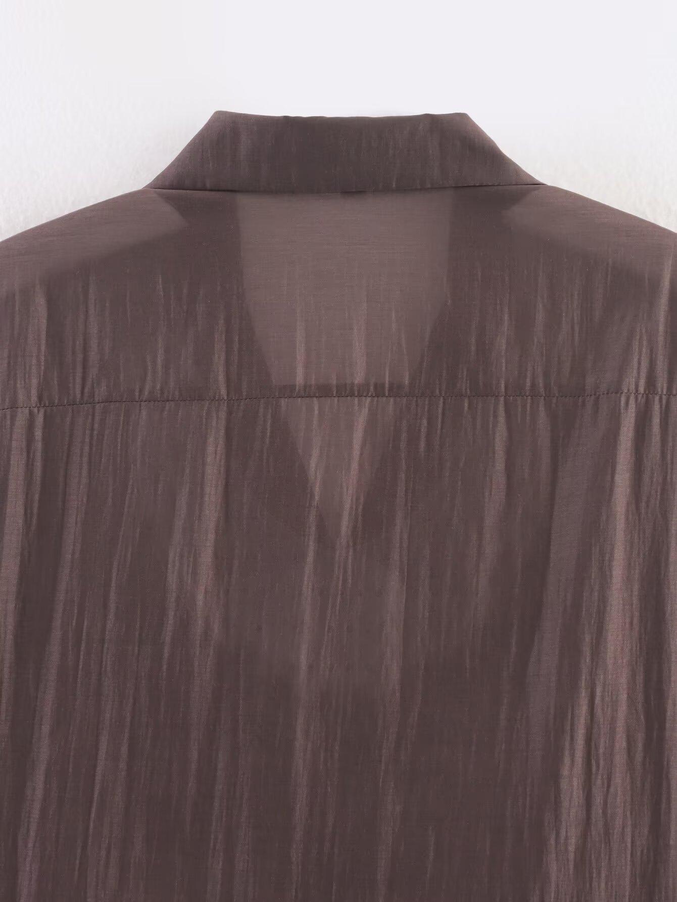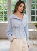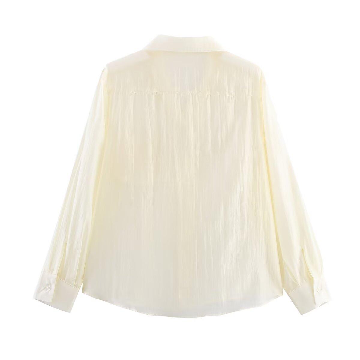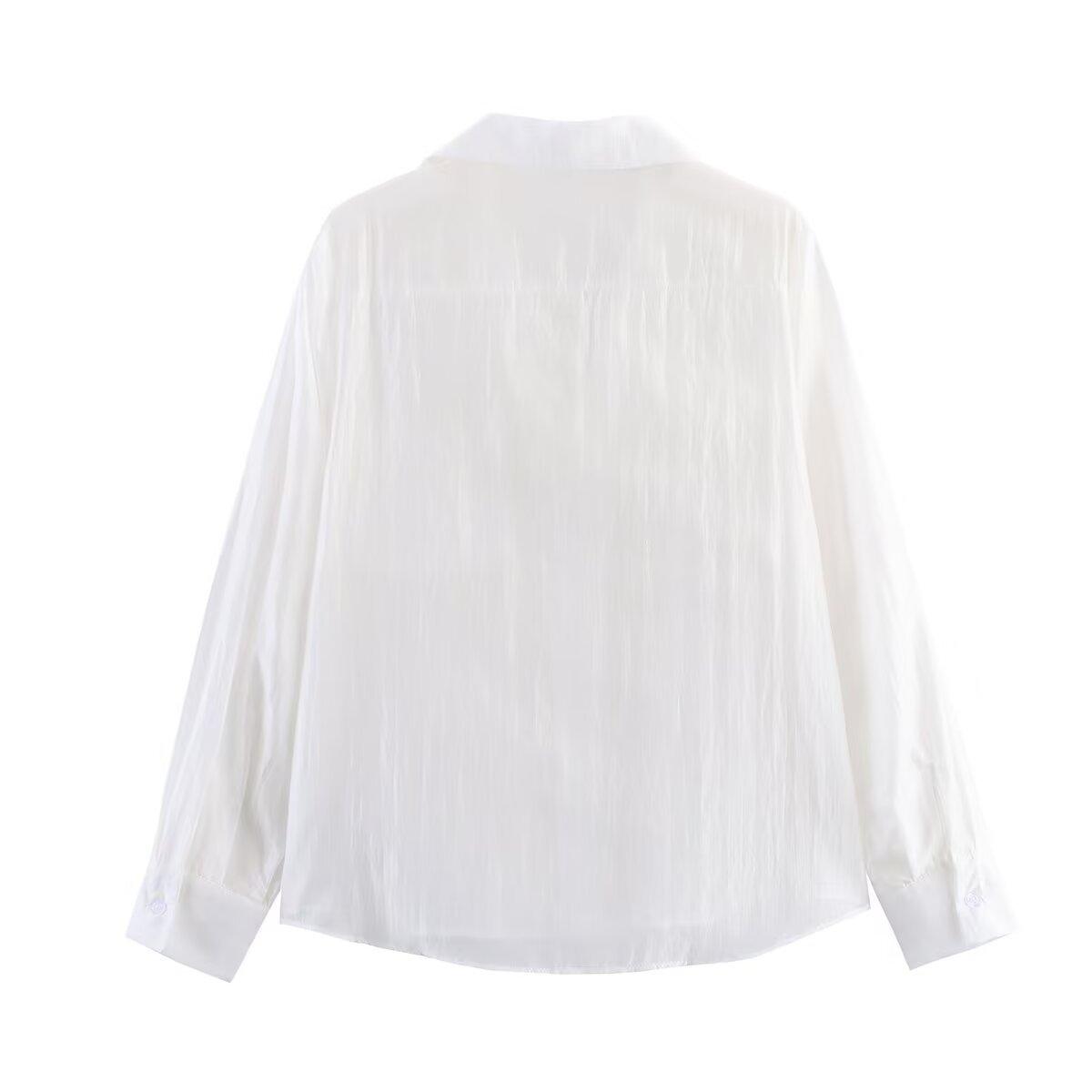 Ropa de mujer transfronteriza 2025 otoño nueva moda casual versátil simple manga larga abotonadura sencilla decoración de bolsillo bordado camisa