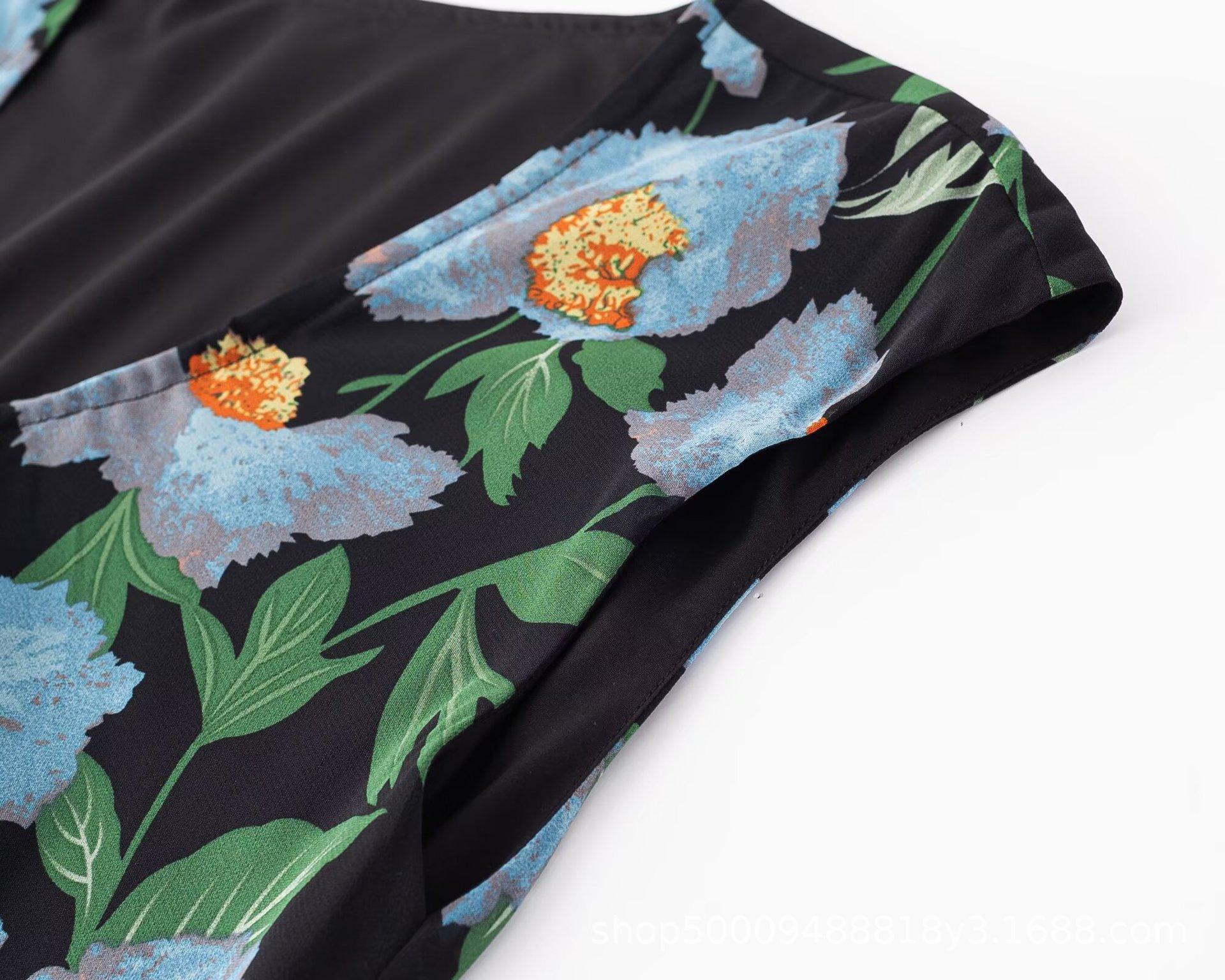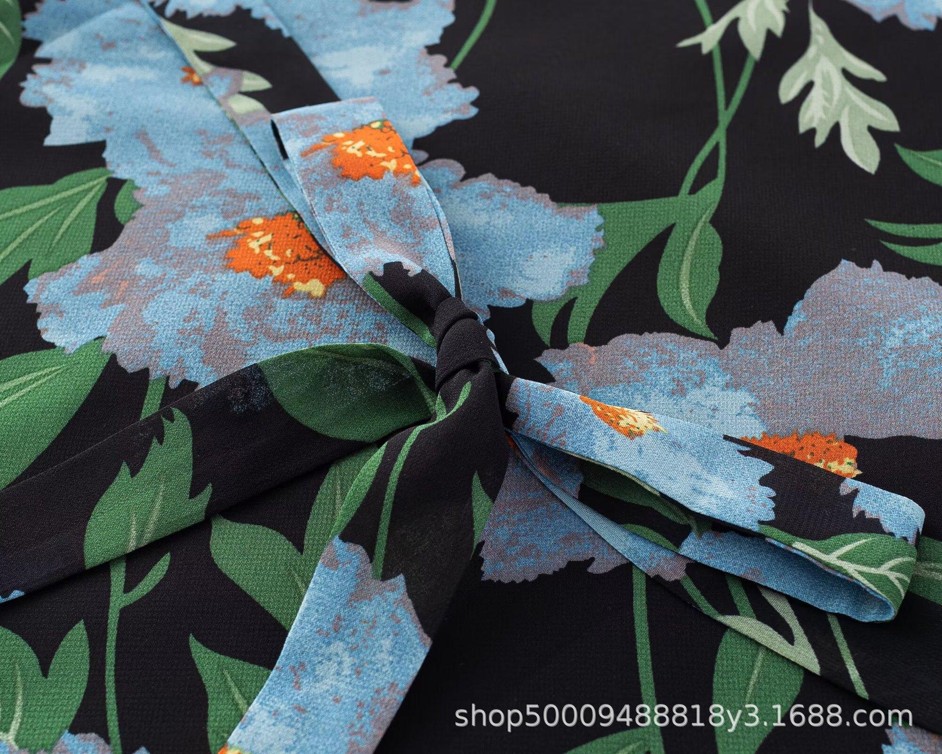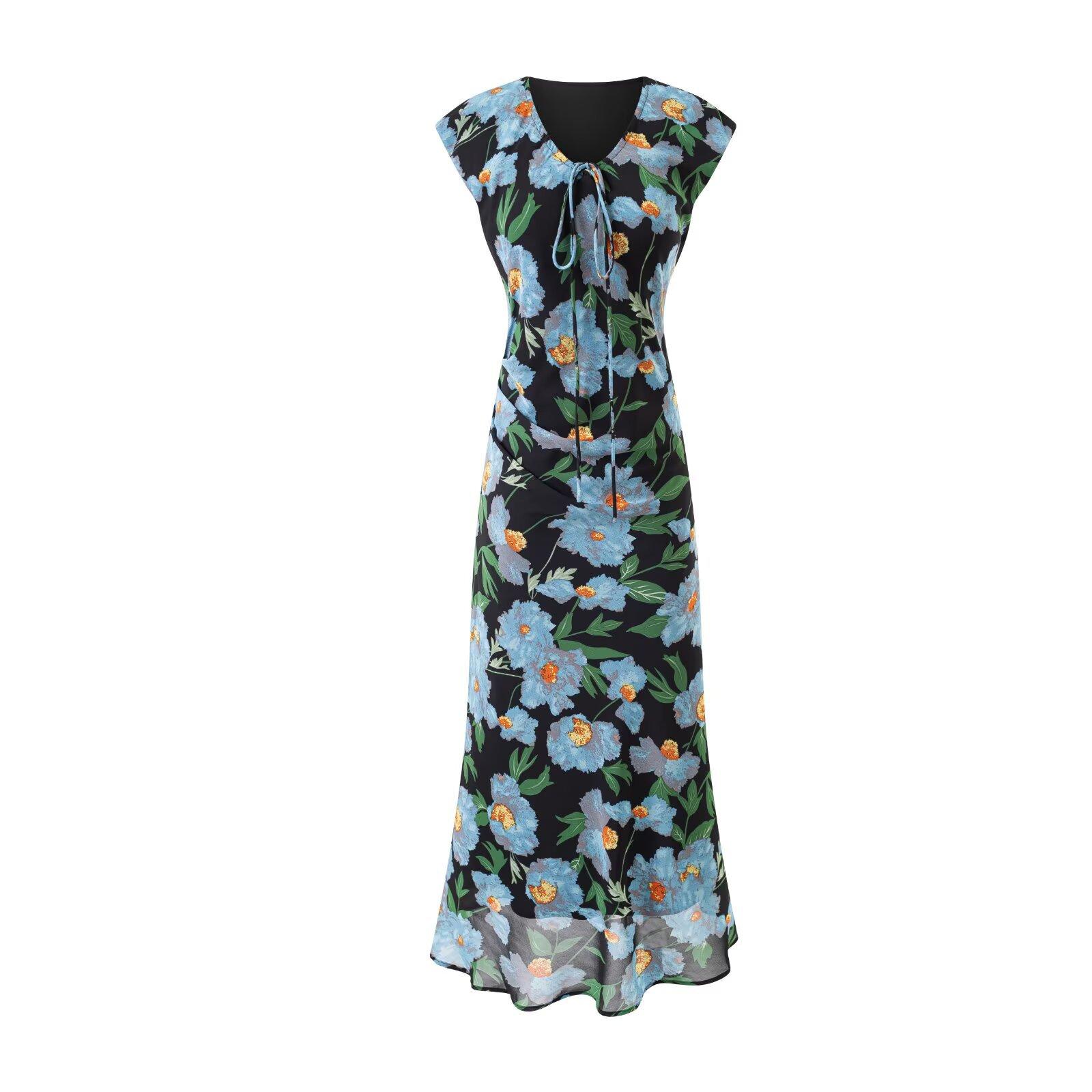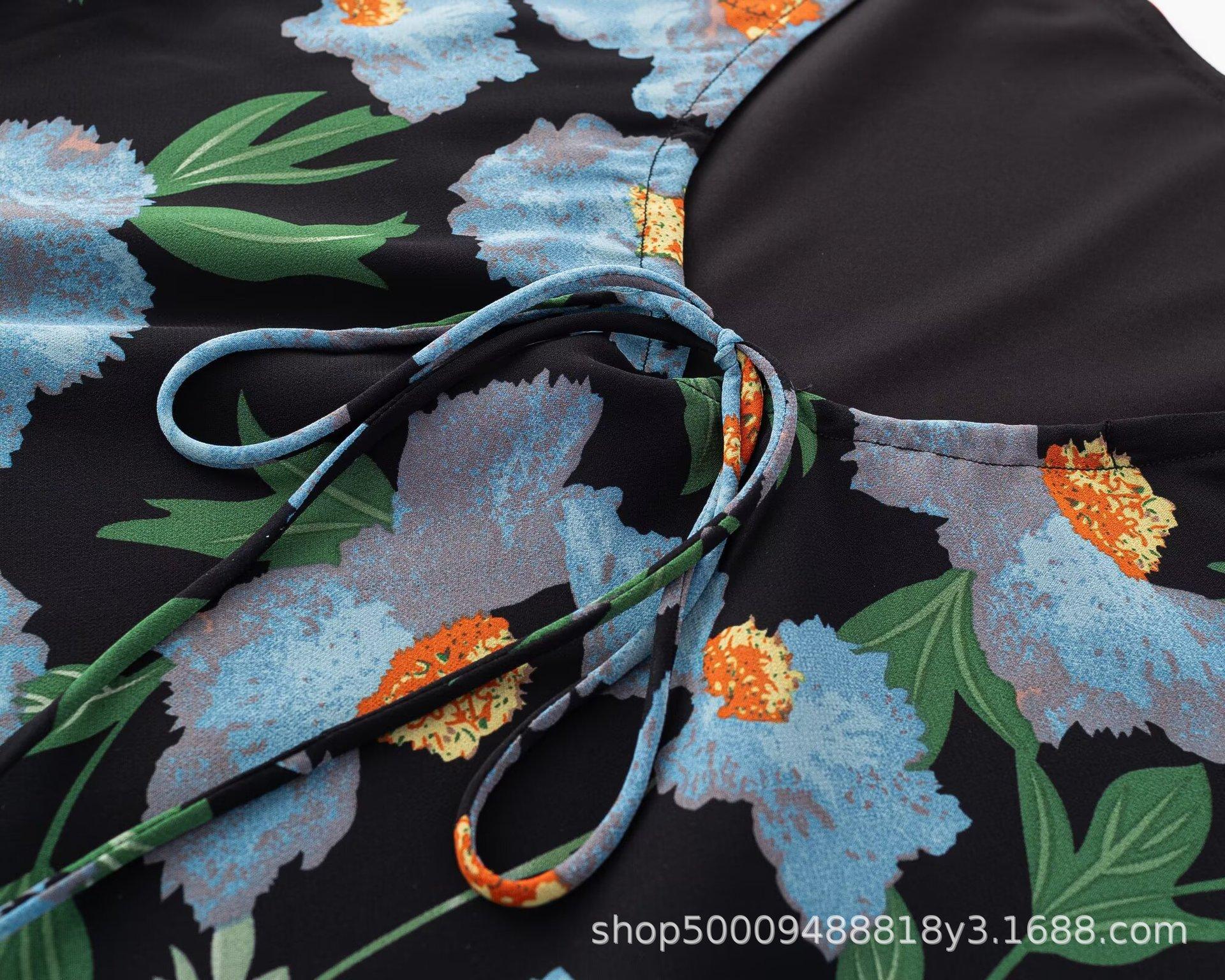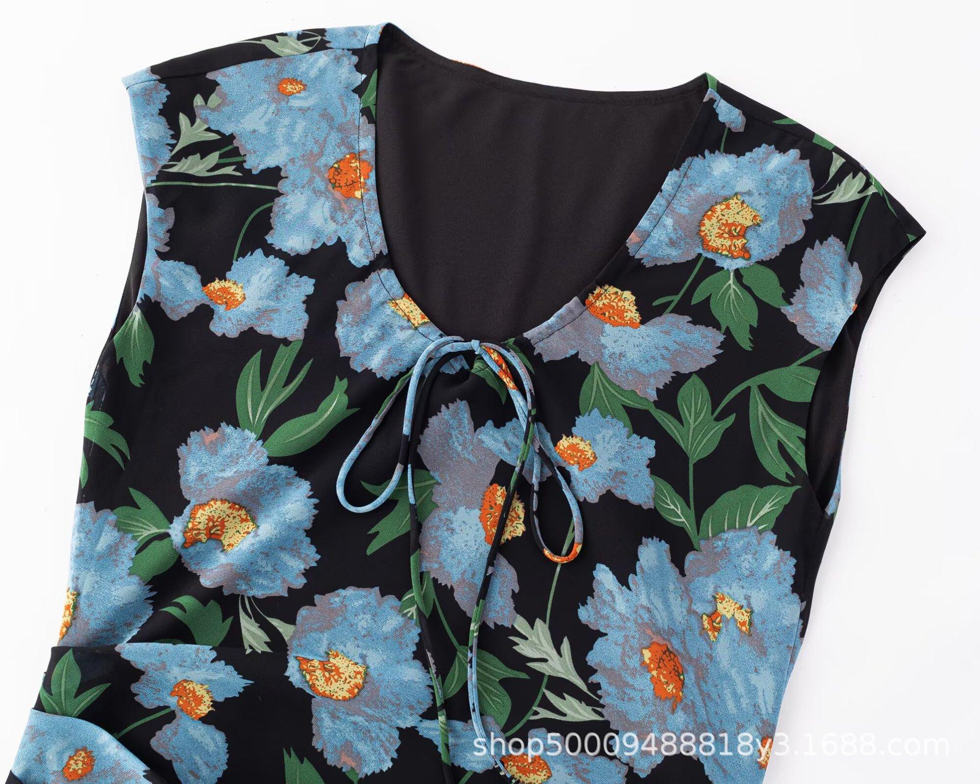 Compra Verano 2025 Nuevo Estilo Europeo y Americano Estampado Retro Francés Cuello en V Lazo Ajustado Vestido Midi al por mayor en Joom.pro