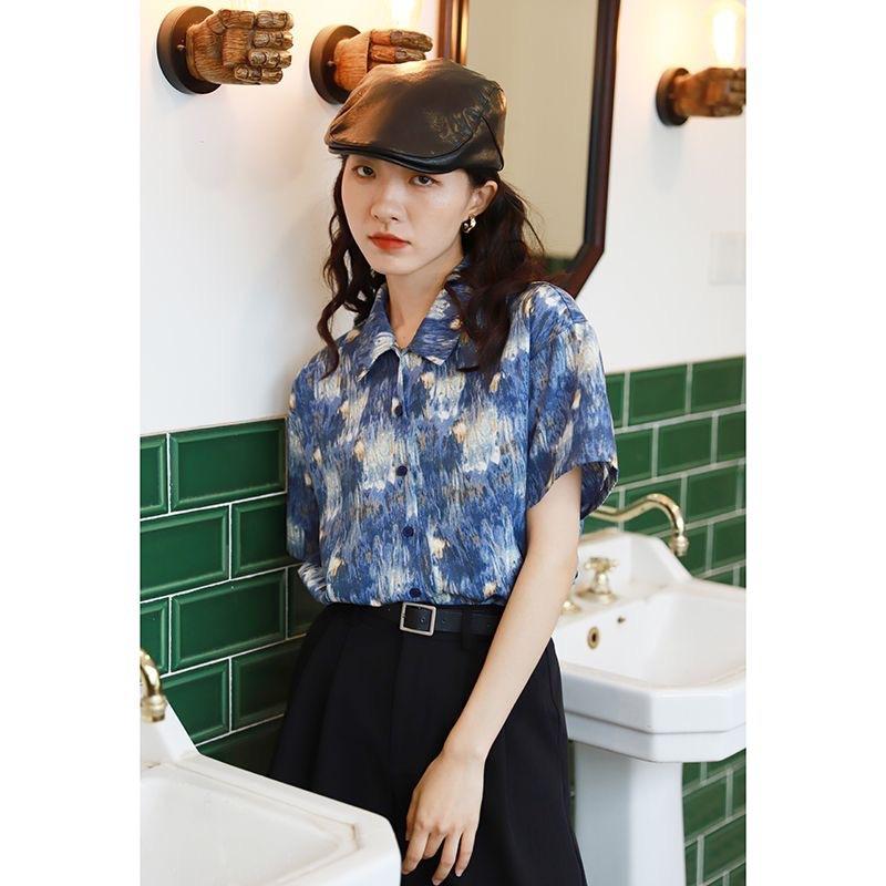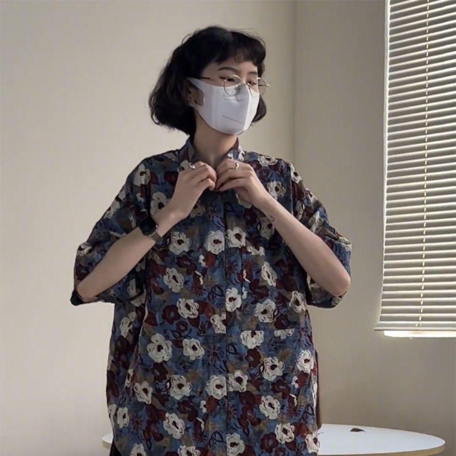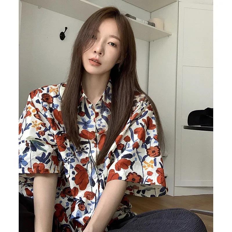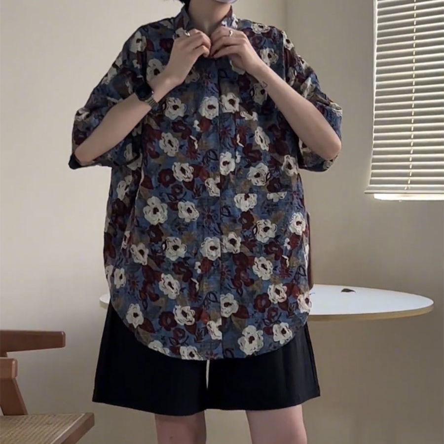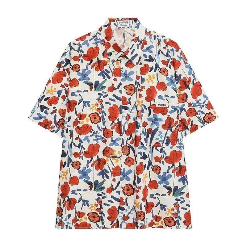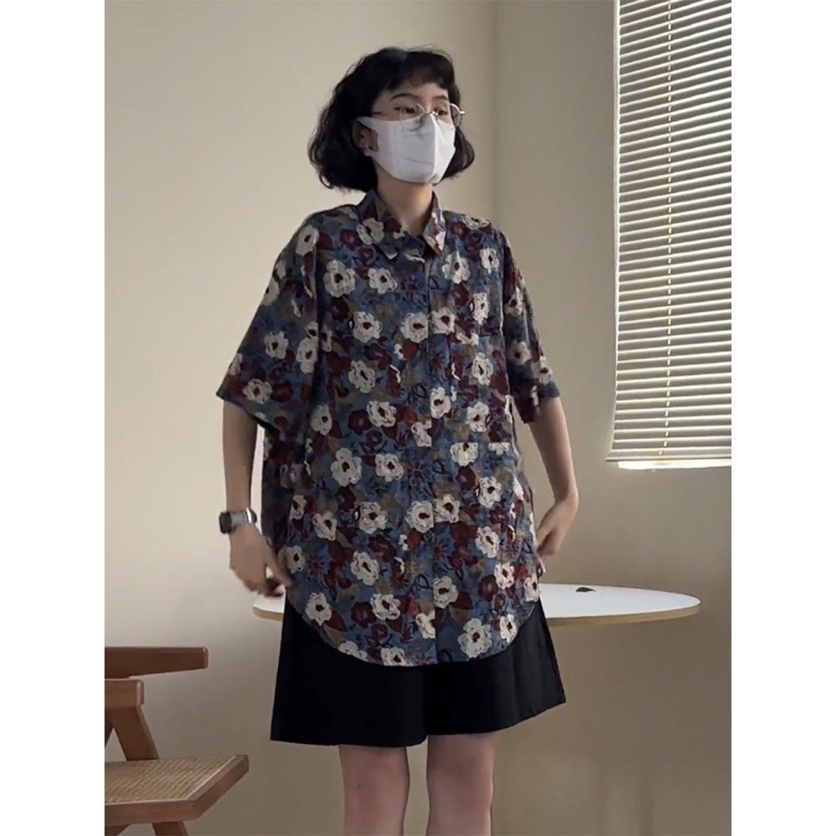 Camisa Floral Retro Personalizada de Verano a la Moda para Mujer, Diseño de Nicho, Sentido del Diseño, Holgada, Adelgazante, Estilo Hong Kong, Manga Corta