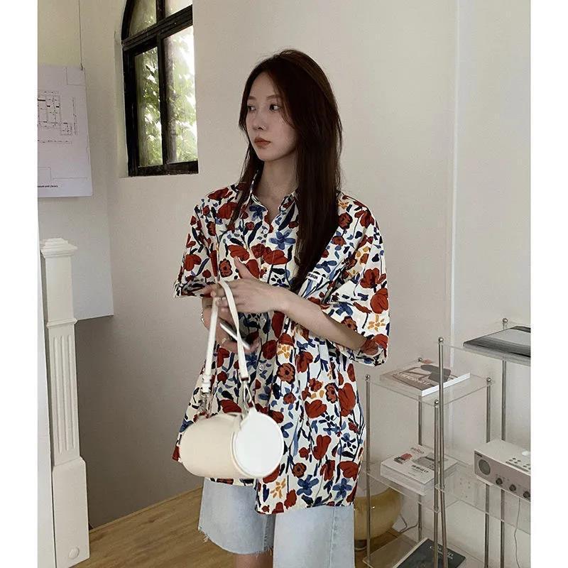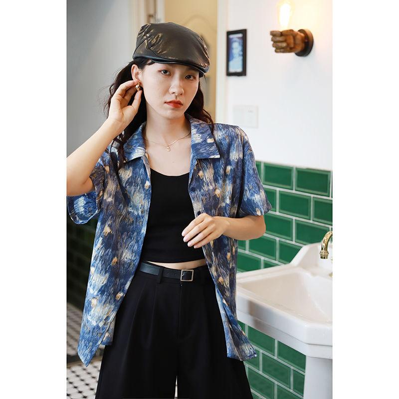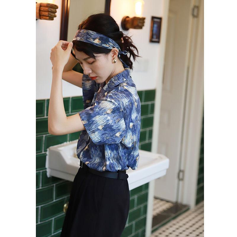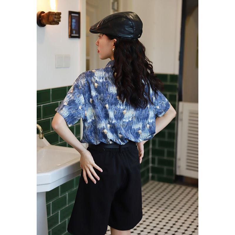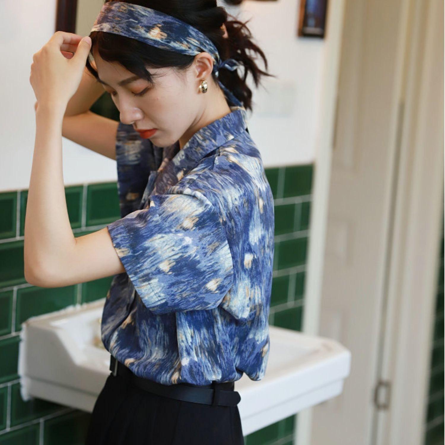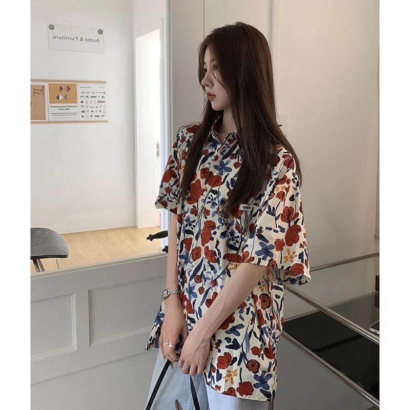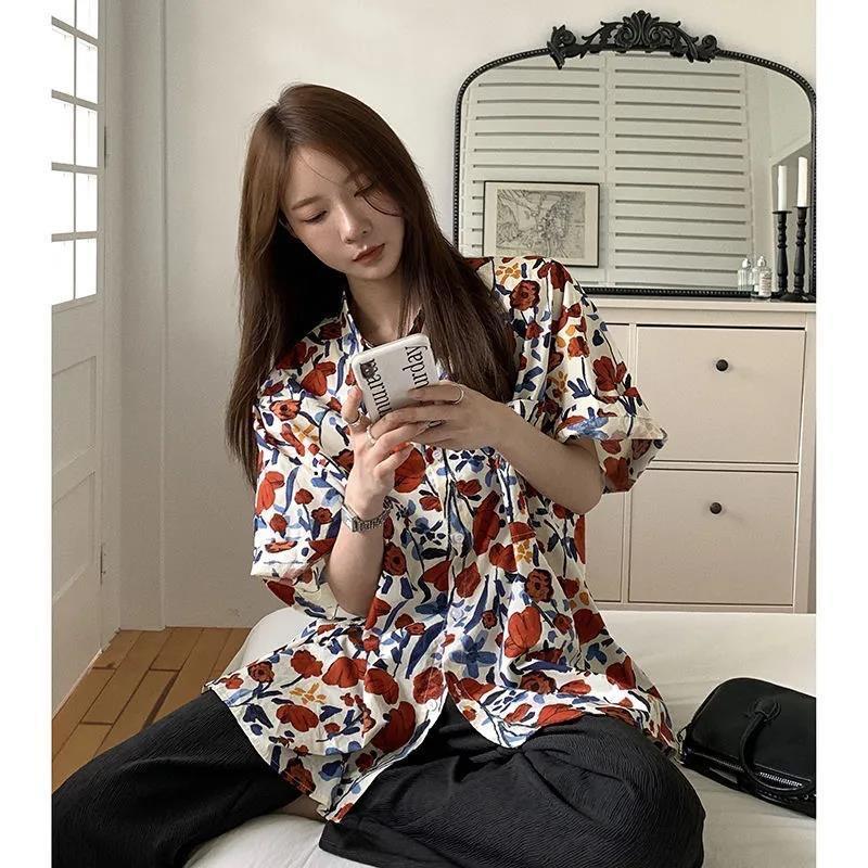 Camisa Floral Retro Personalizada de Verano a la Moda para Mujer, Diseño de Nicho, Sentido del Diseño, Holgada, Adelgazante, Estilo Hong Kong, Manga Corta