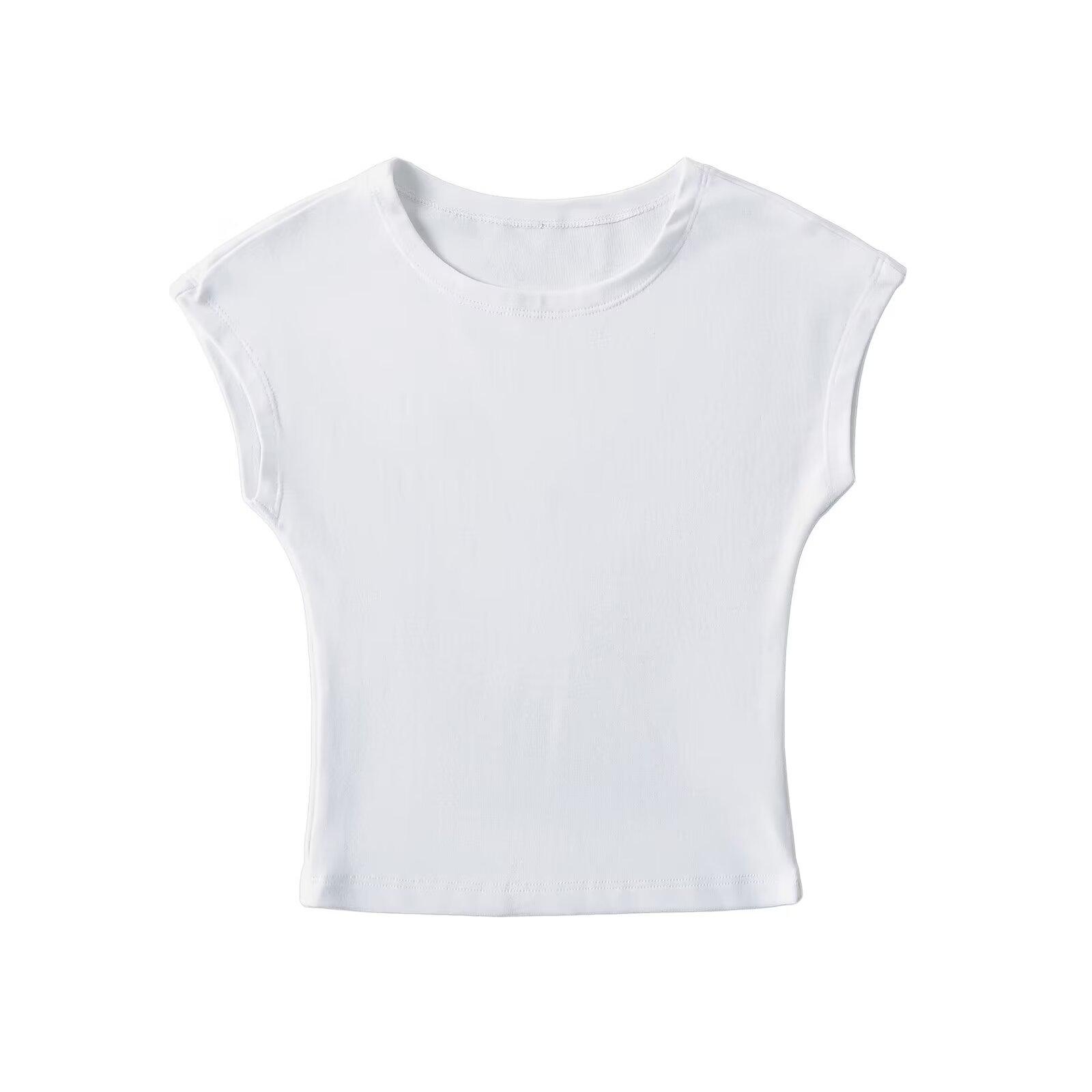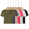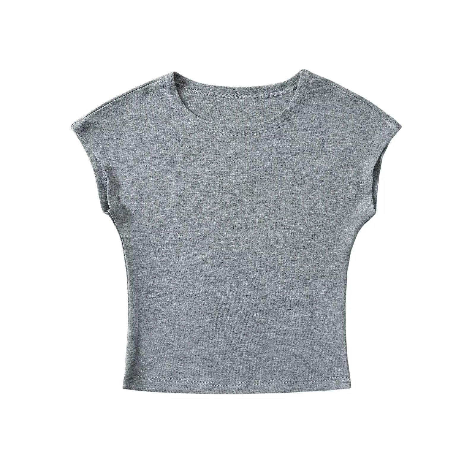 Camiseta de Estilo Americano para Chica Caliente, Ajustada, de Cuello Redondo, Corta, con Ombligo Descubierto, para Mujer, Urbana, Ajustada, Ceñida, Versátil, de Manga Corta, para Mujer