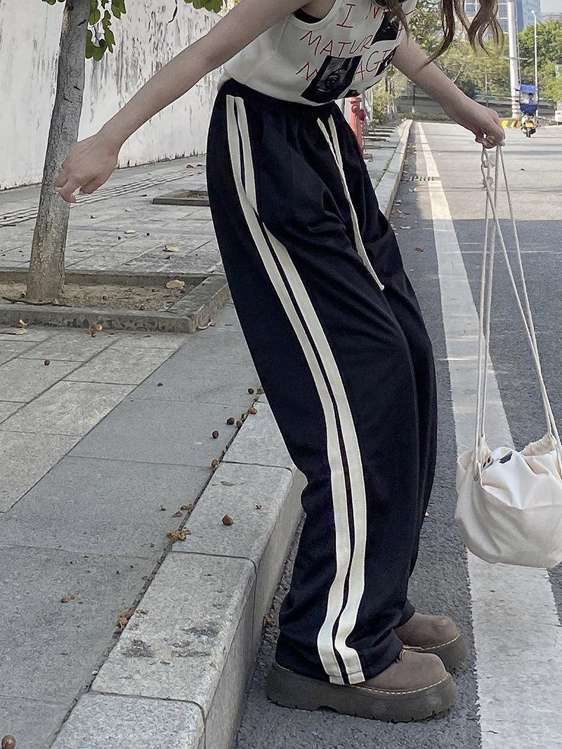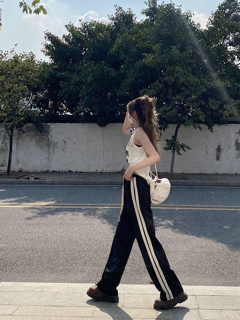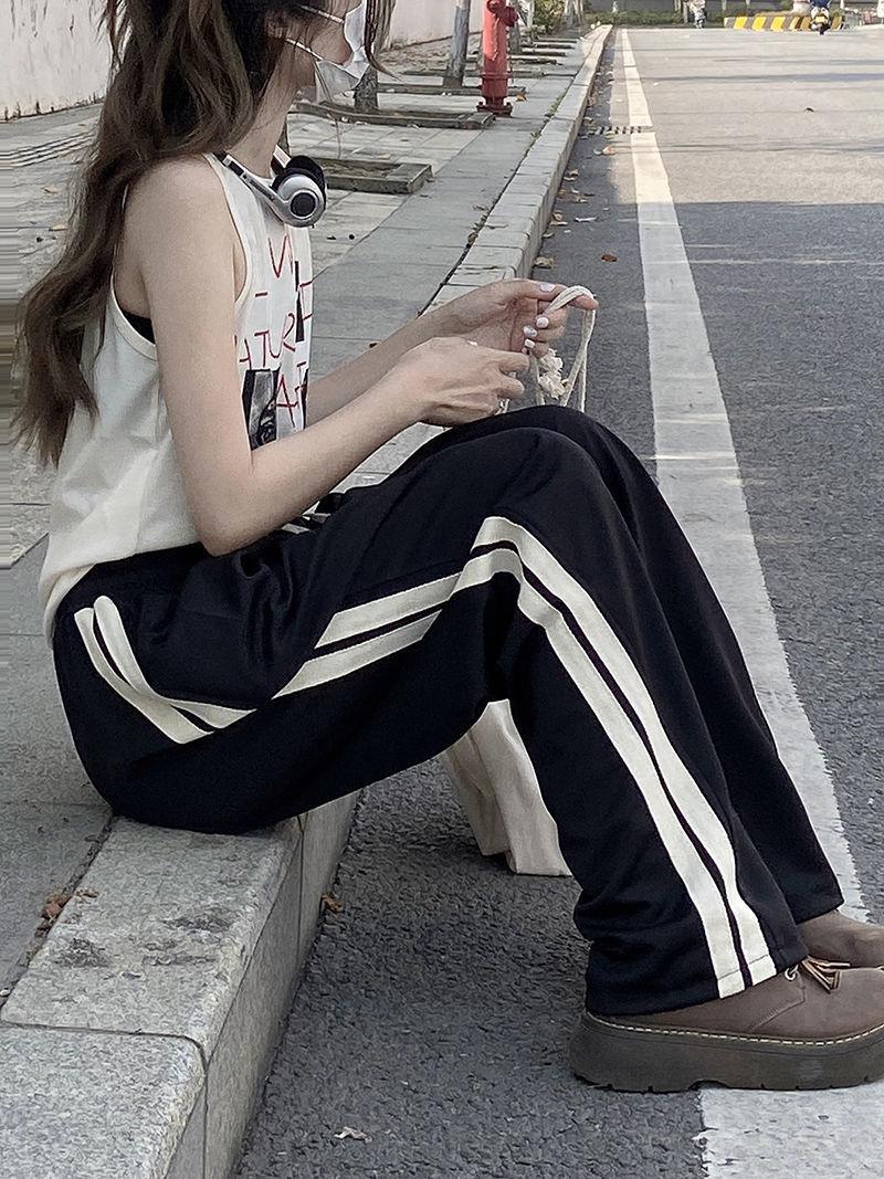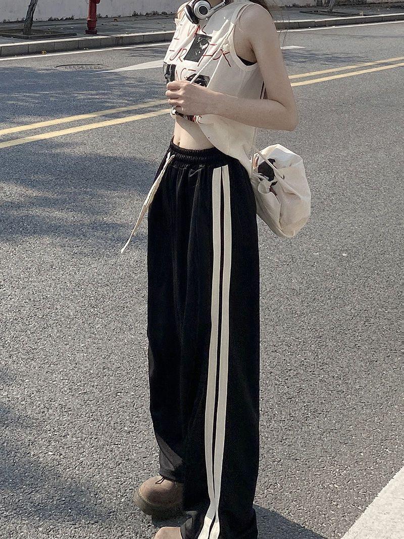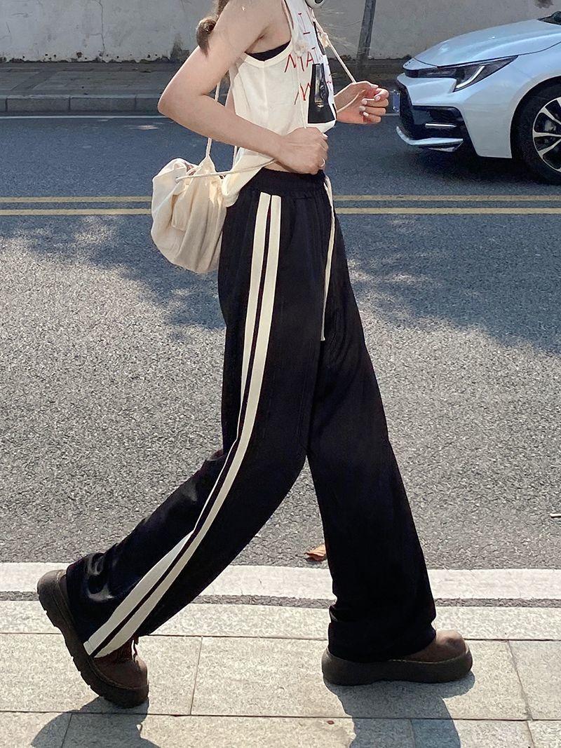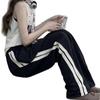 Pantalones deportivos negros mujer primavera/verano/otoño 2025 estilo coreano sueltos versátiles modernos casual petite pierna recta pierna ancha