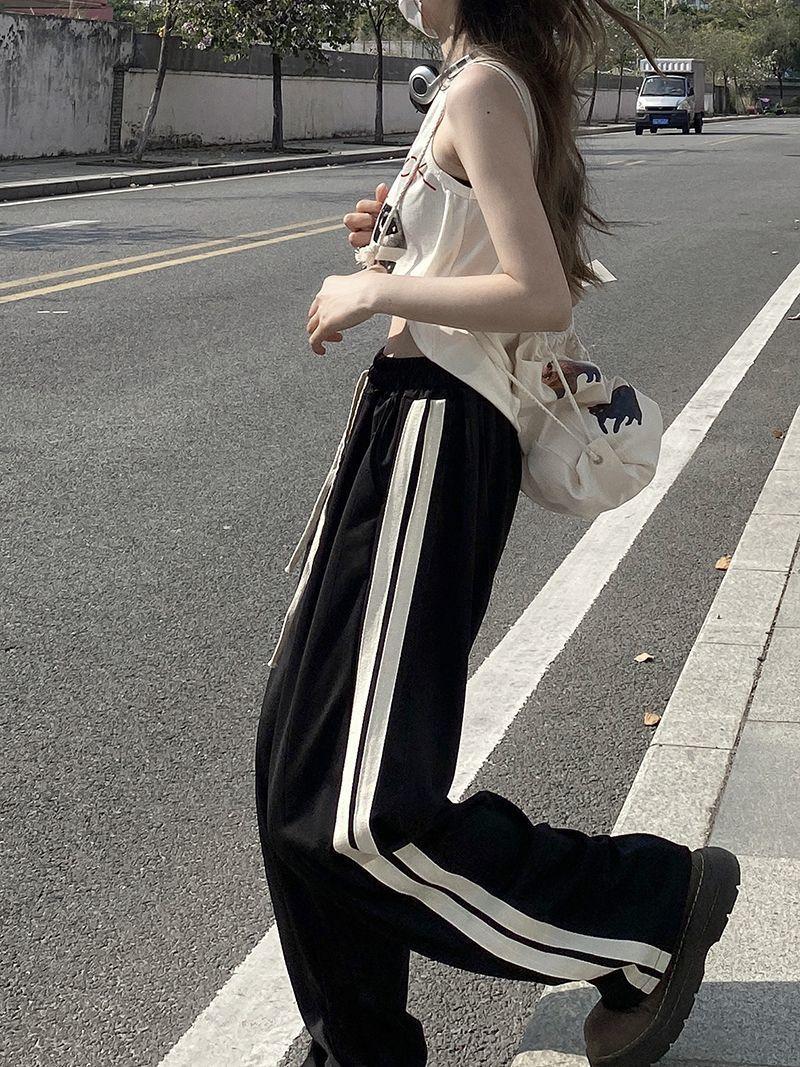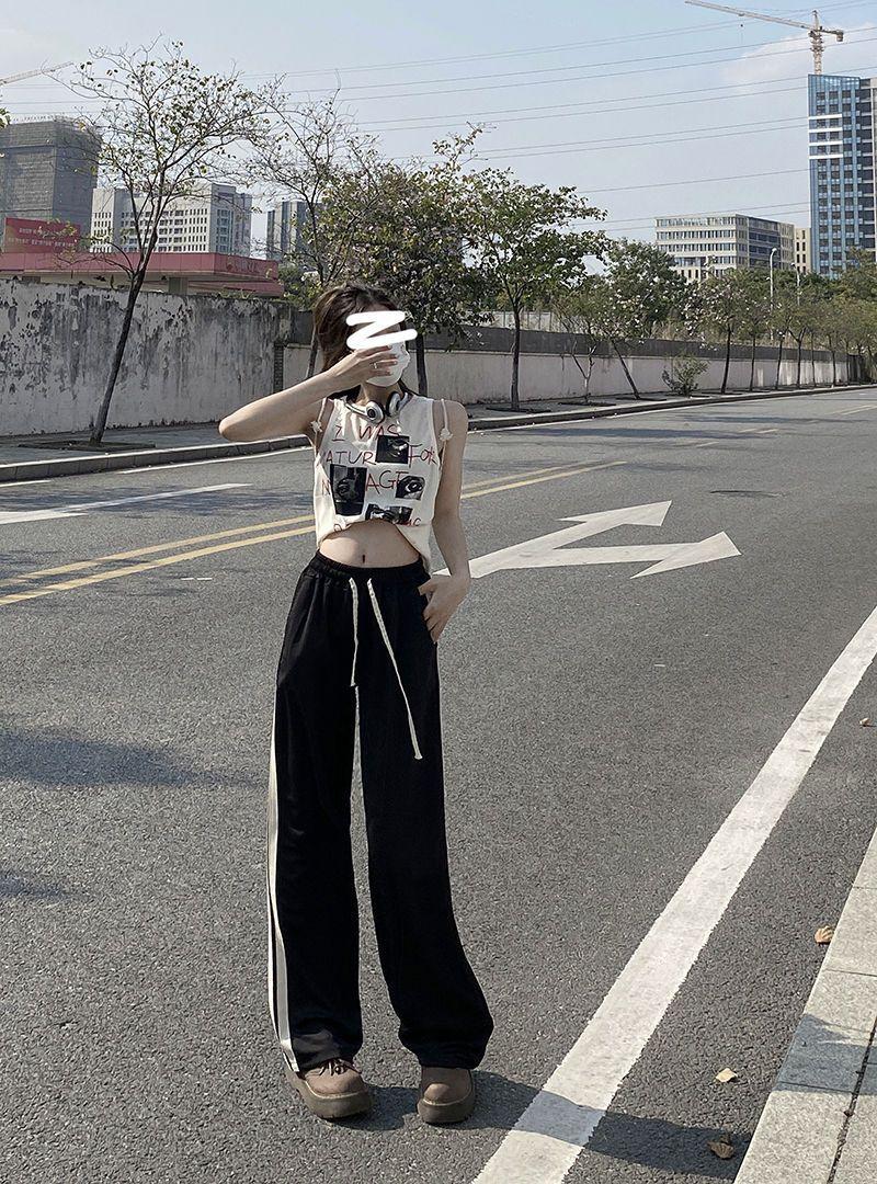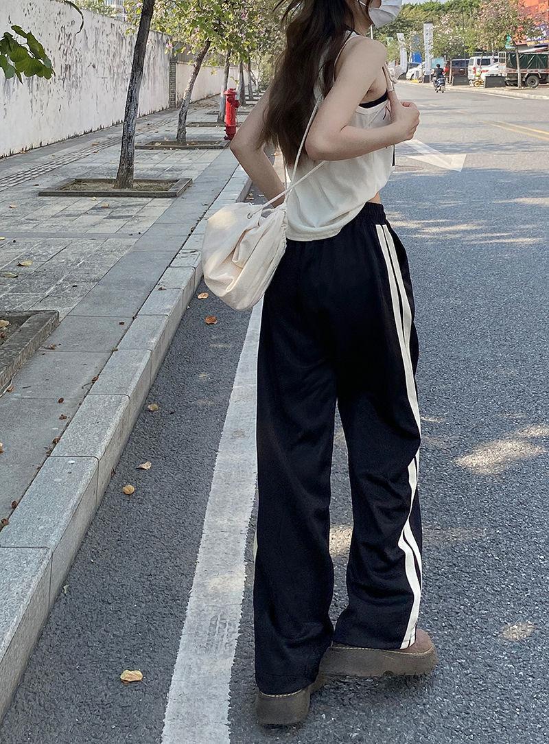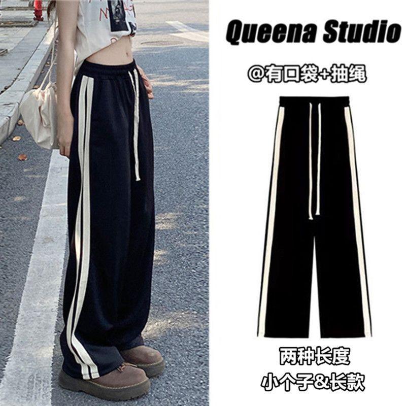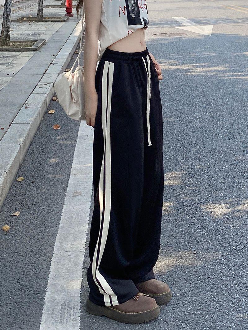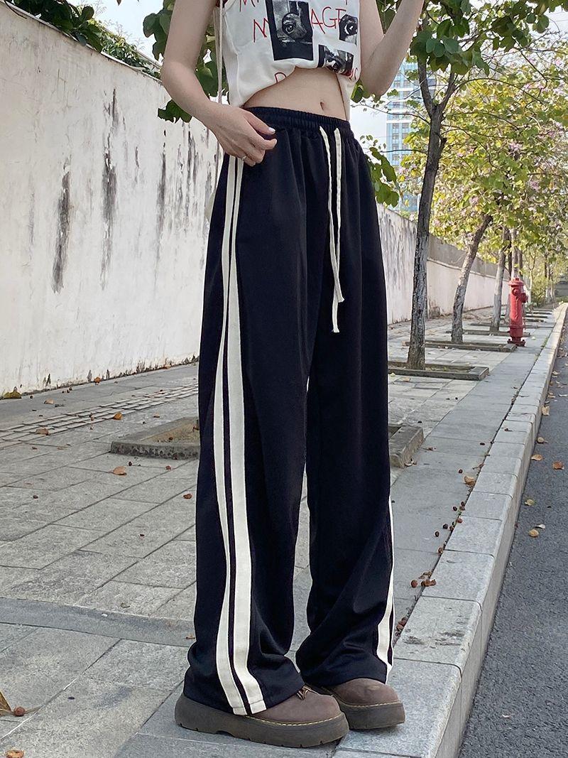 Compra Pantalones deportivos negros mujer primavera/verano/otoño 2025 estilo coreano sueltos versátiles modernos casual petite pierna recta pierna ancha al por mayor en Joom.pro