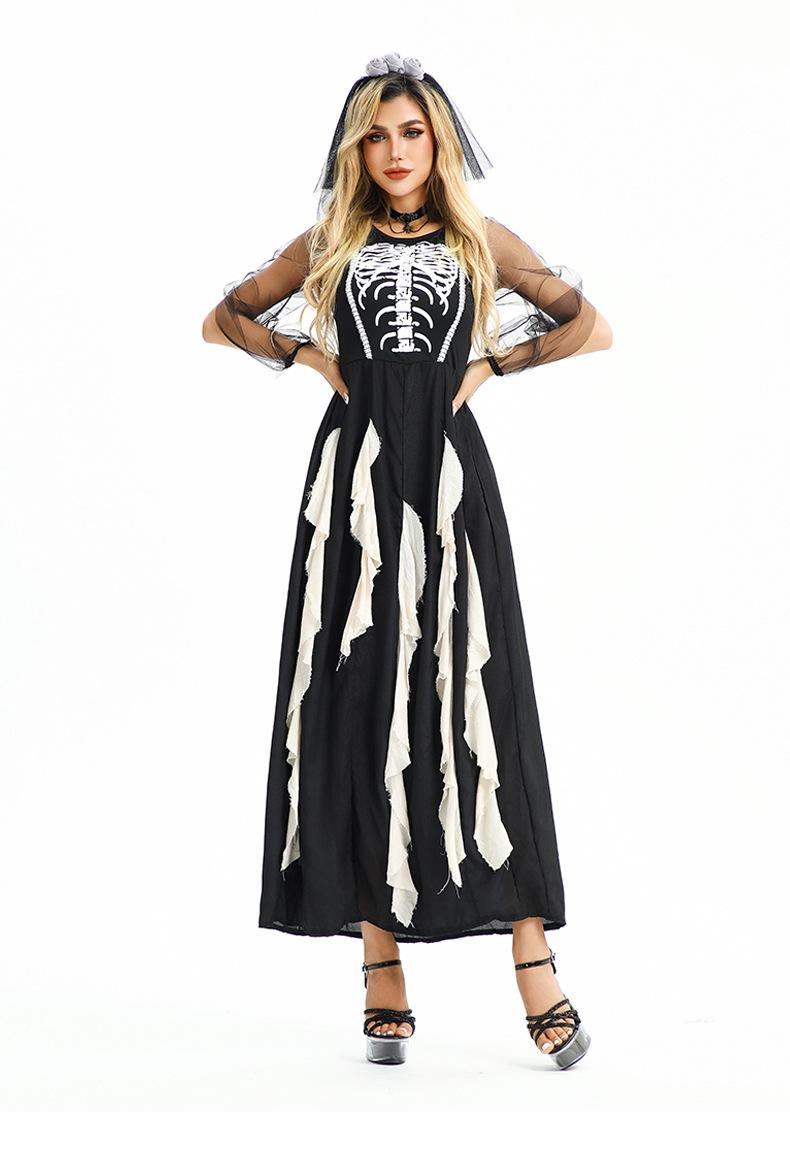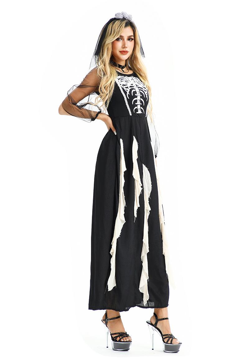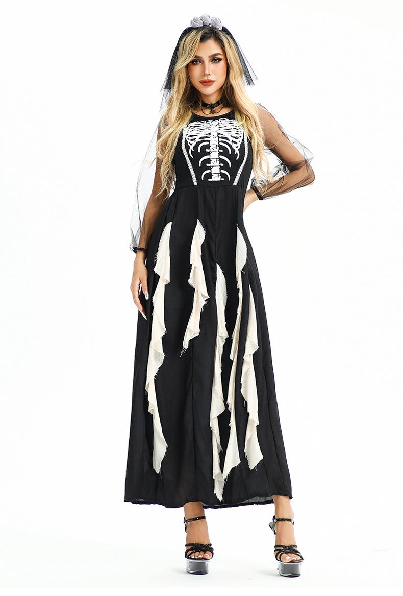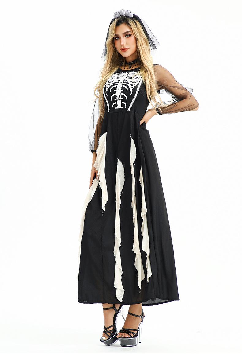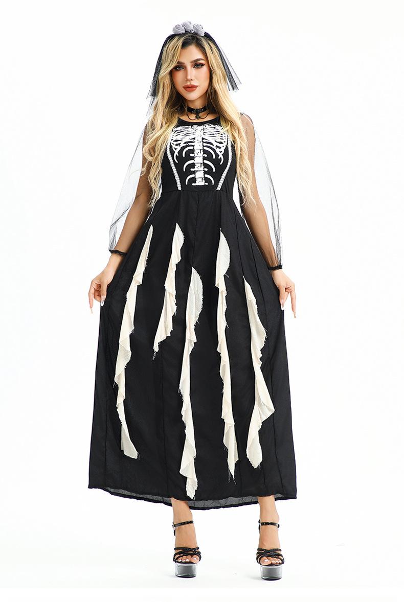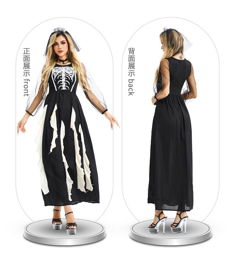 Disfraz de Halloween Europeo y Americano Gótico Diablo Fantasma Novia Vestido Fantasma Oscuro Vampiro Horror Esqueleto Zombi