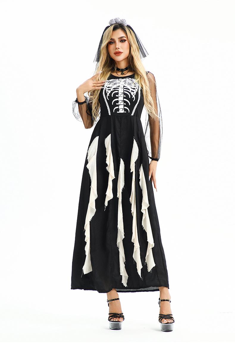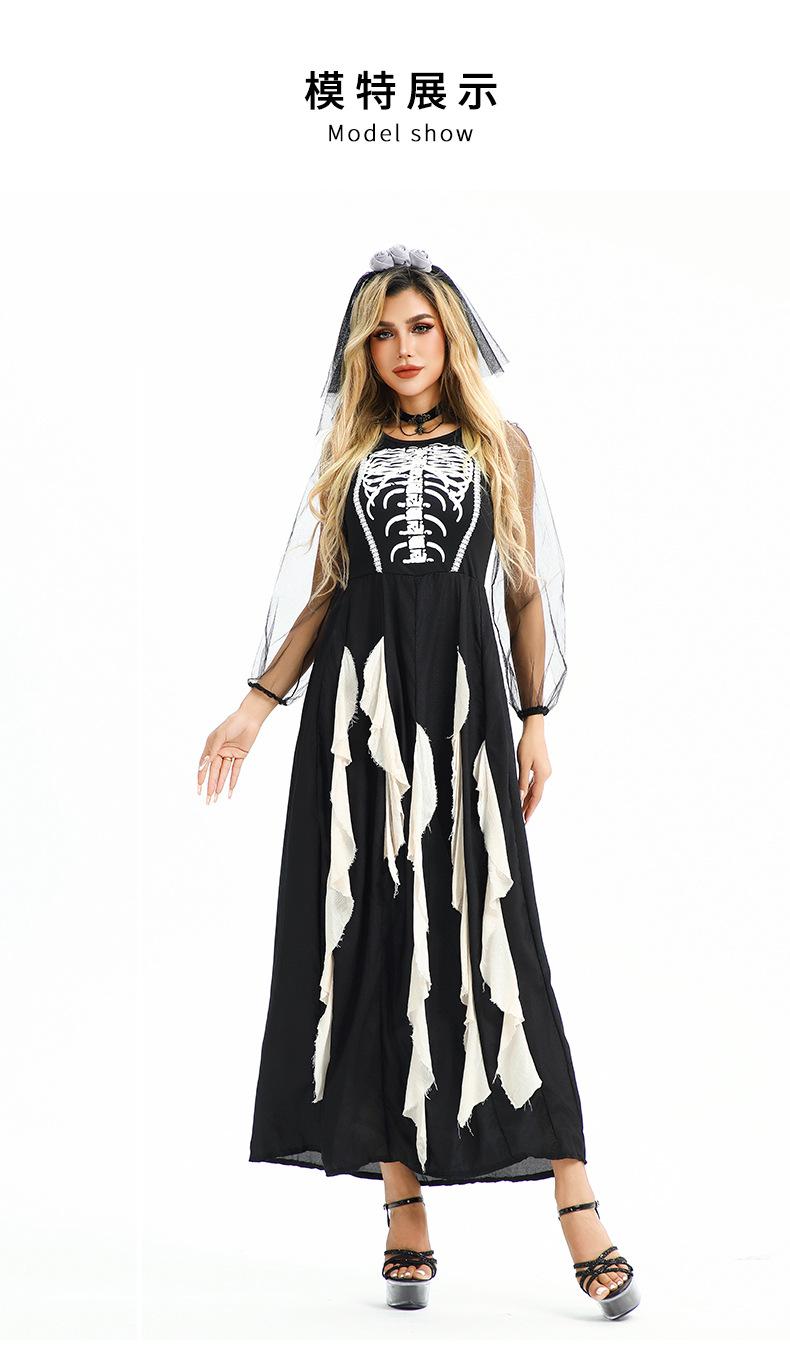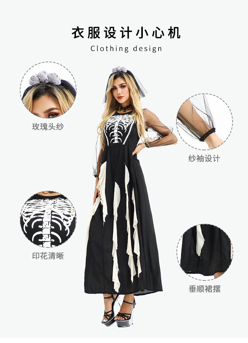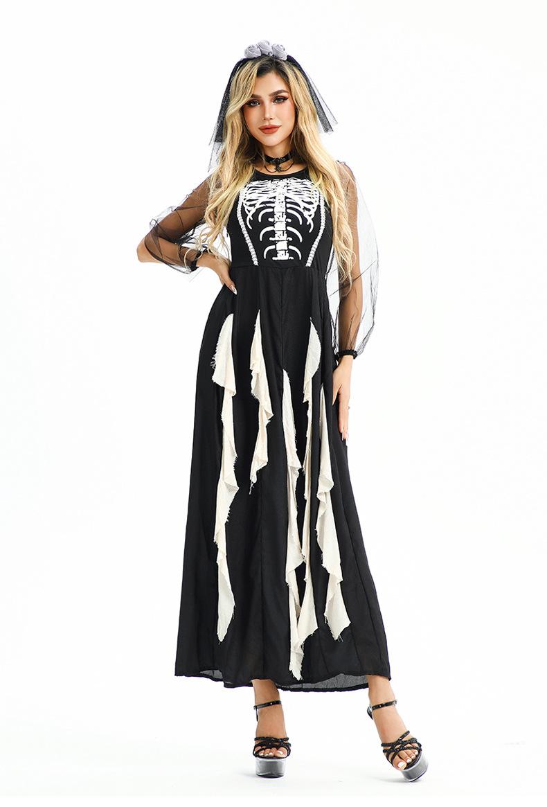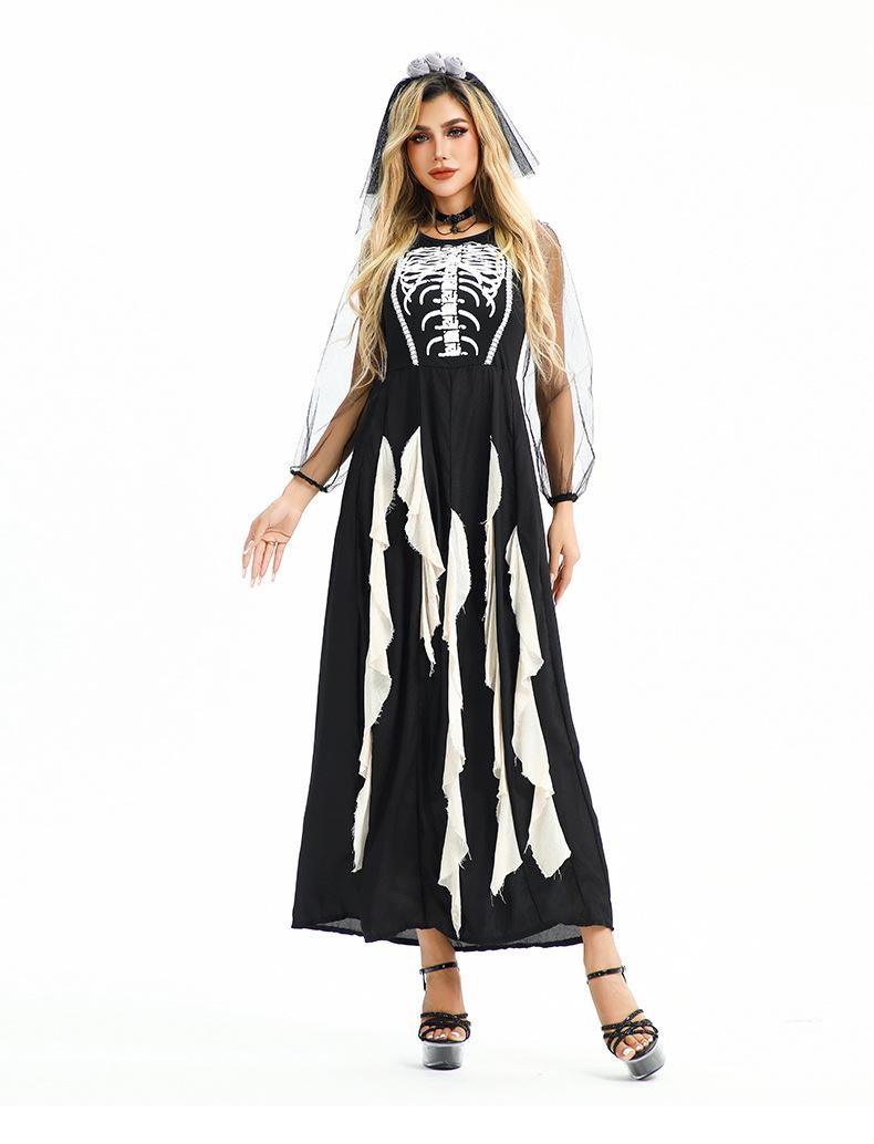 Disfraz de Halloween Europeo y Americano Gótico Diablo Fantasma Novia Vestido Fantasma Oscuro Vampiro Horror Esqueleto Zombi
