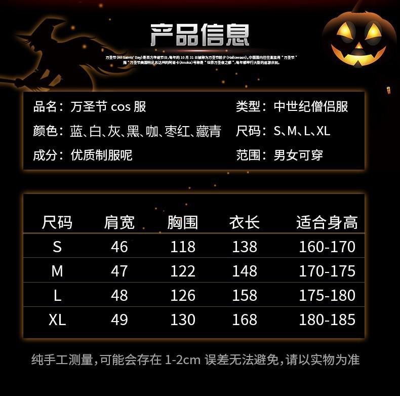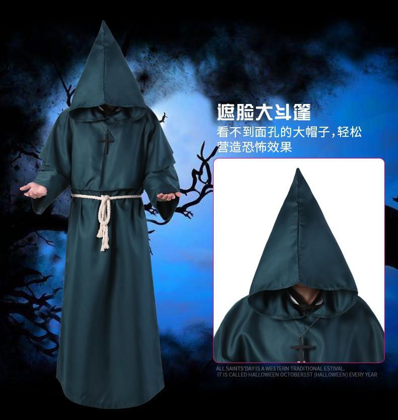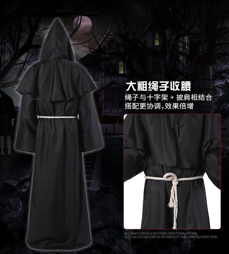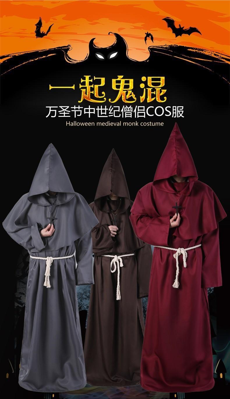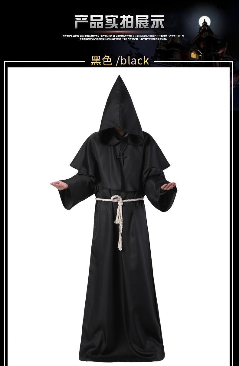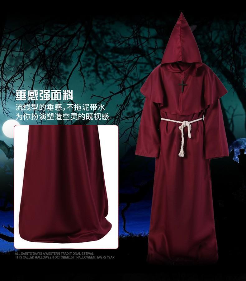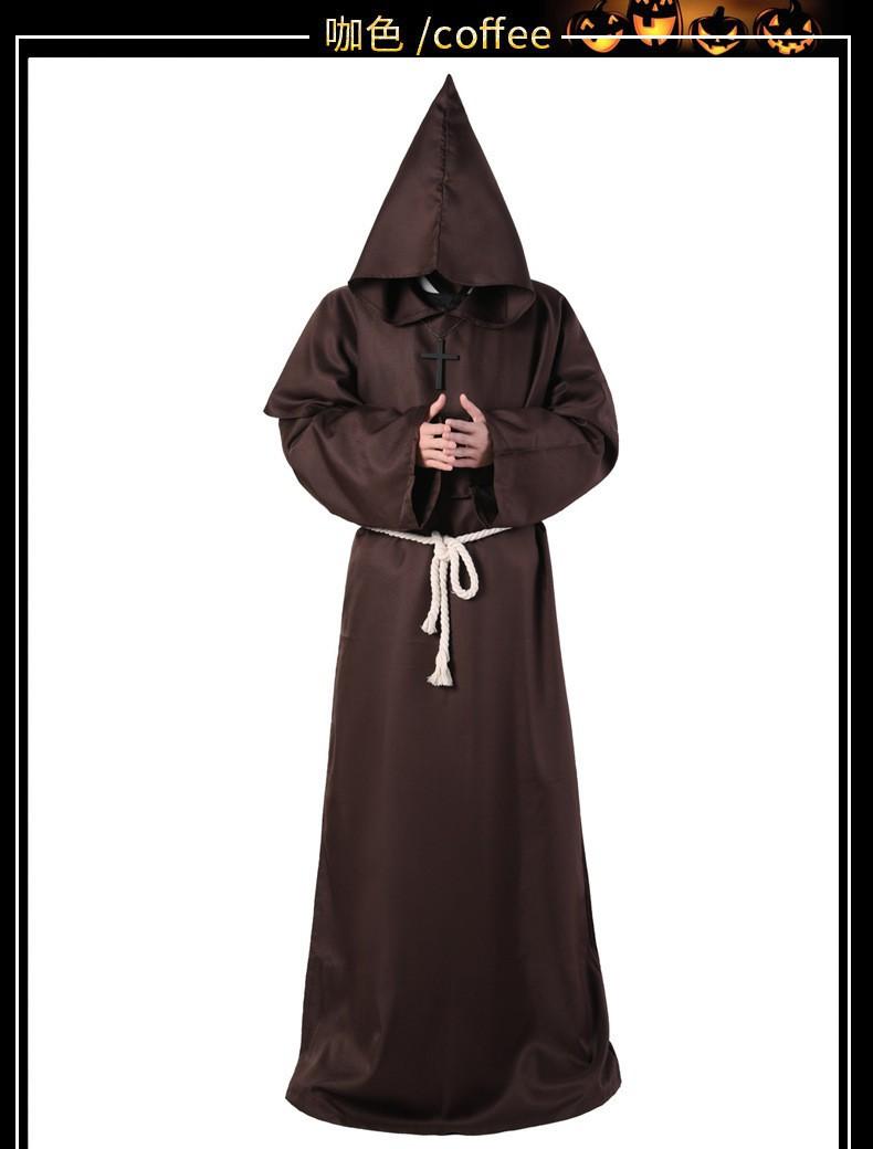 Túnica de Monje Medieval Halloween Cosplay Estilo Antiguo Túnica de Caballero Disfraz COS Disfraz de Escenario Disfraz de Mago Disfraz de Sacerdote