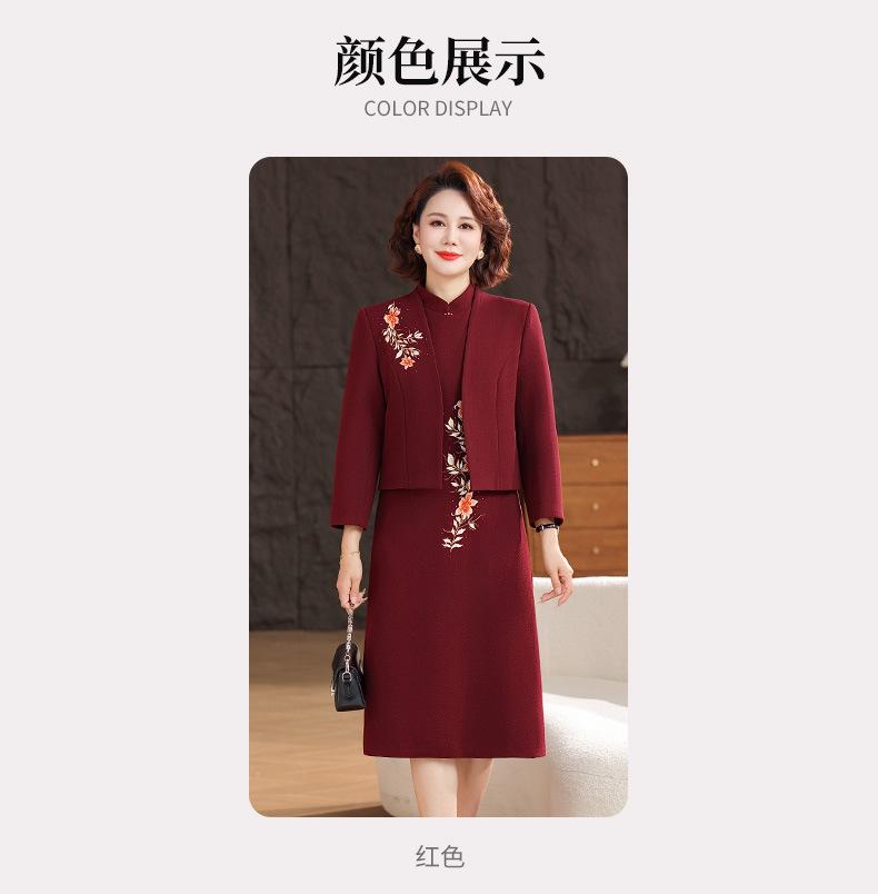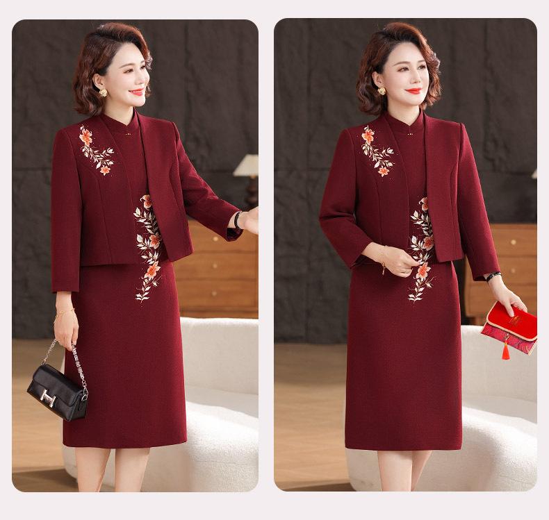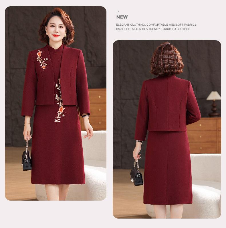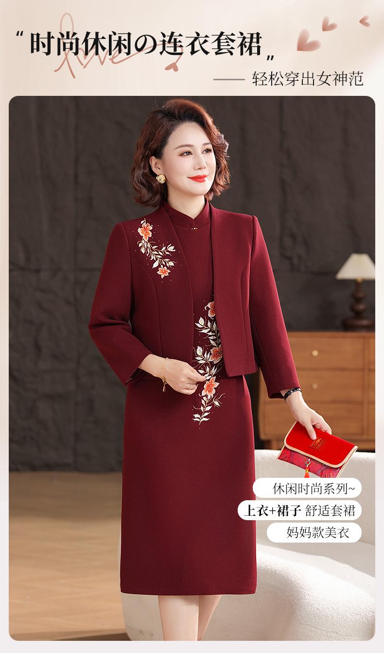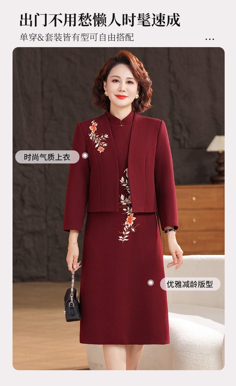 Vestido de Moda para Madre Edad Media y Adulta Mayor Vestido de Banquete de Boda Temperamento Bordado Edad Media Festivo Traje de Suegra 50 Años Conjunto de Dos Piezas Otoño