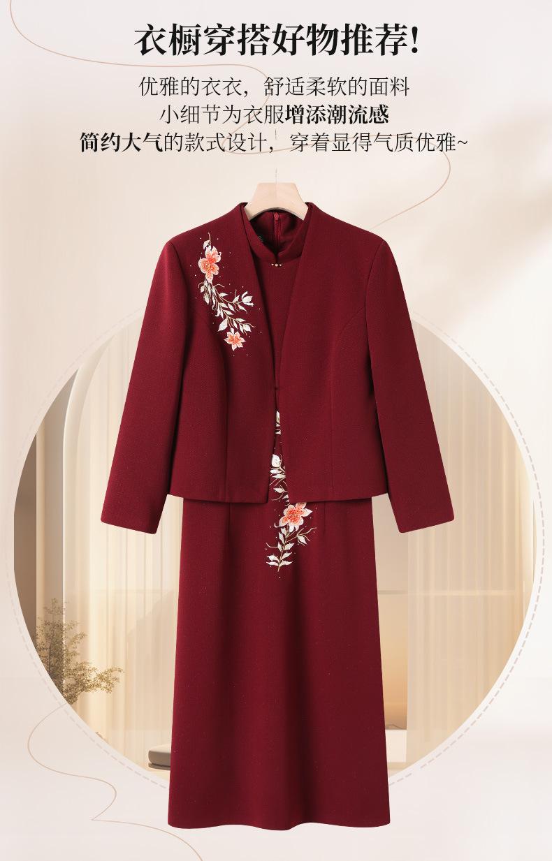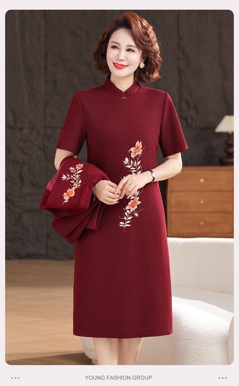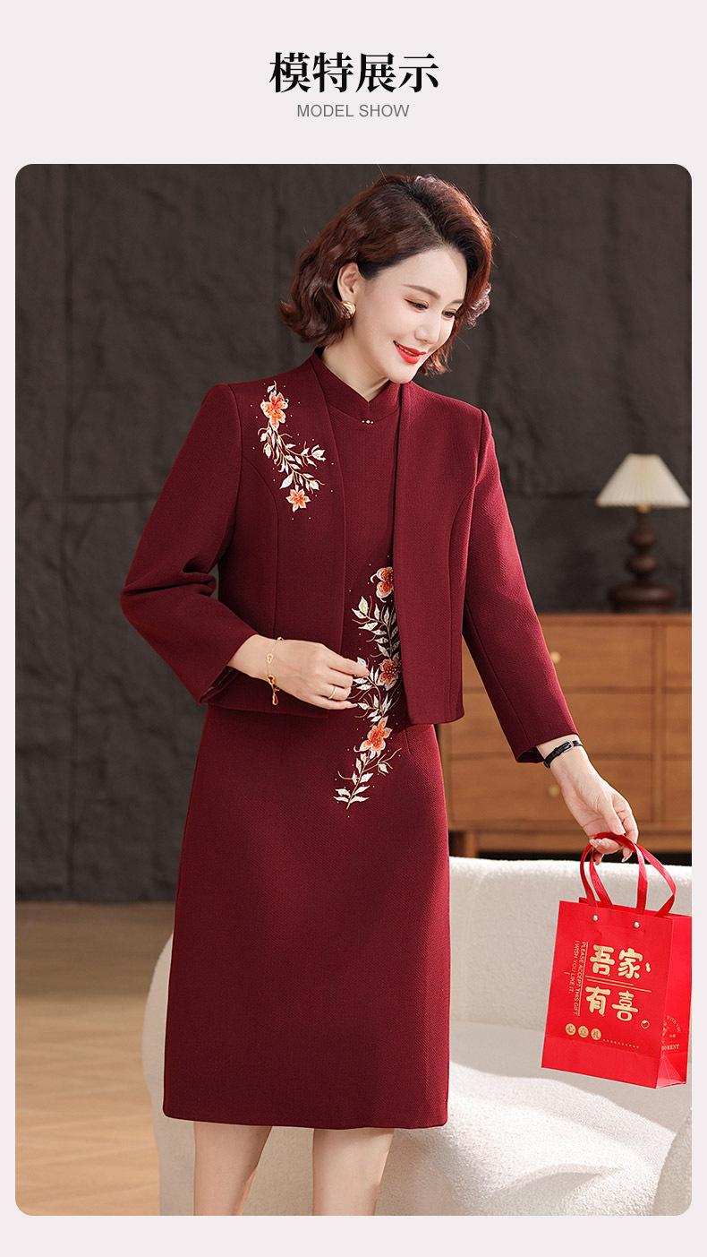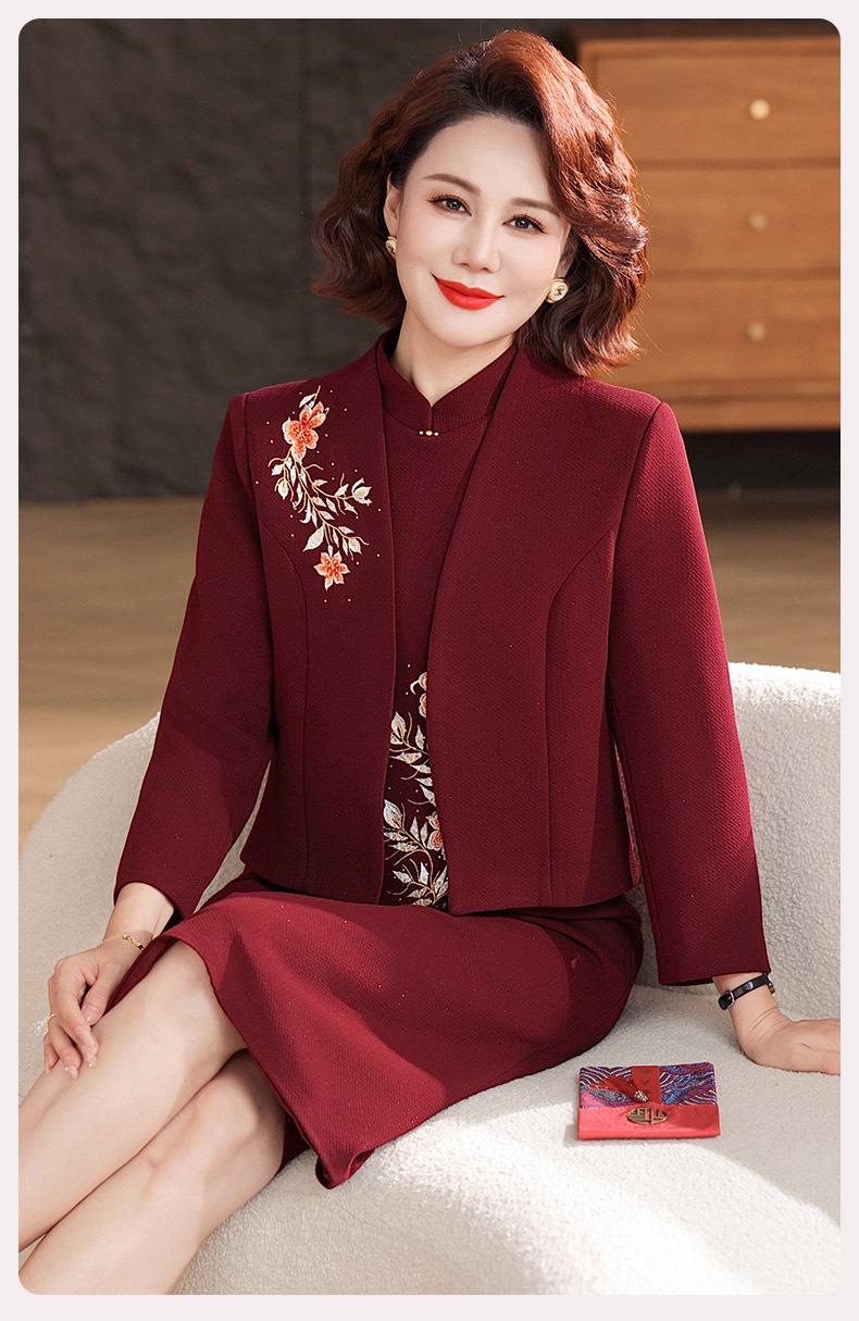 Vestido de Moda para Madre Edad Media y Adulta Mayor Vestido de Banquete de Boda Temperamento Bordado Edad Media Festivo Traje de Suegra 50 Años Conjunto de Dos Piezas Otoño