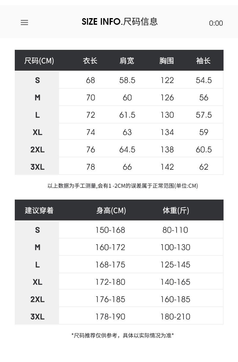 S, M, L, XL, 2XL, 3XL