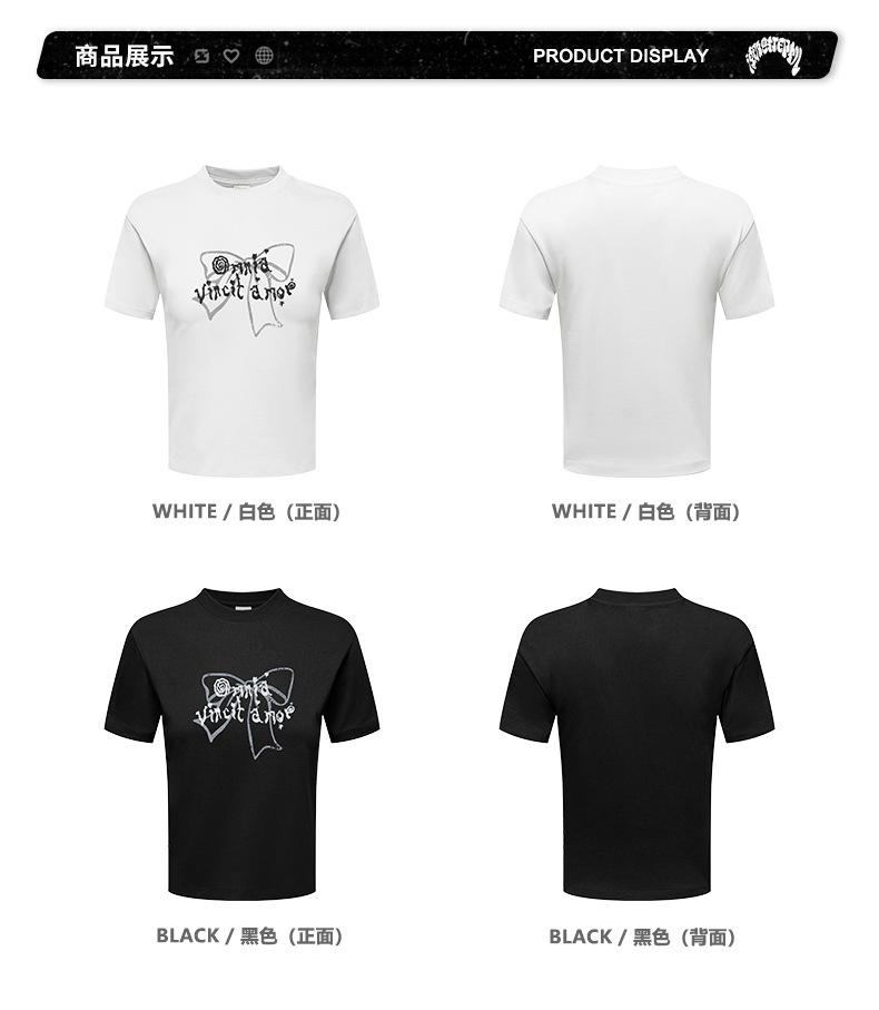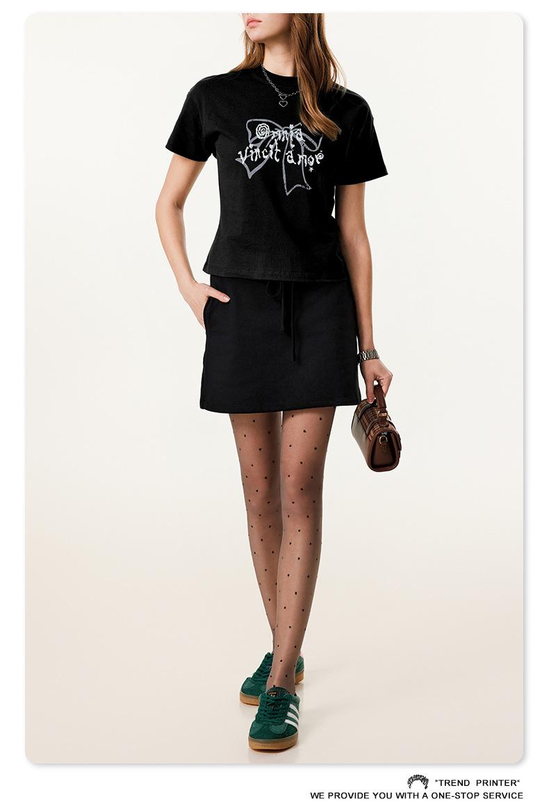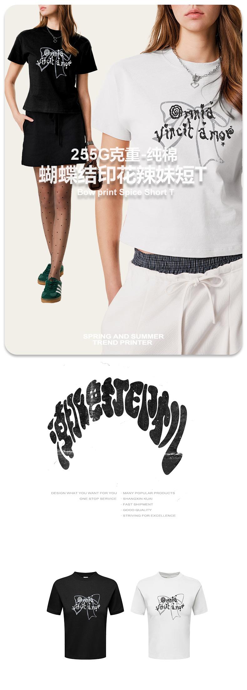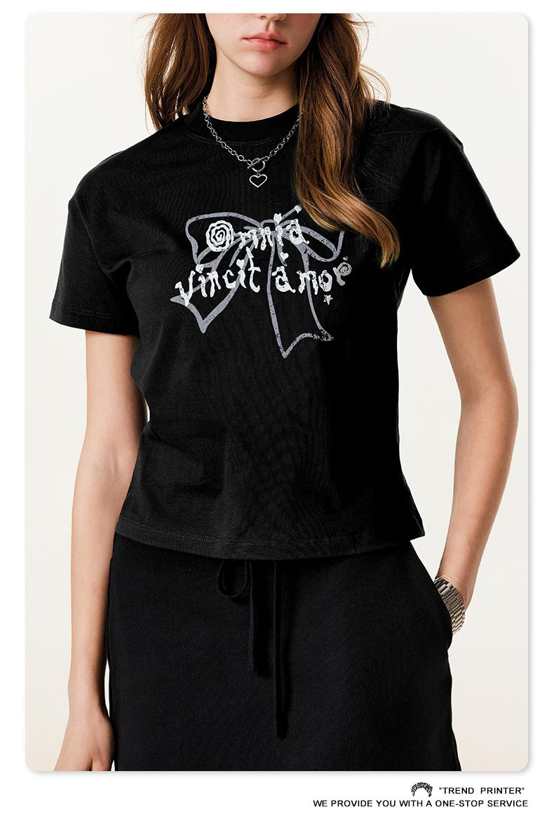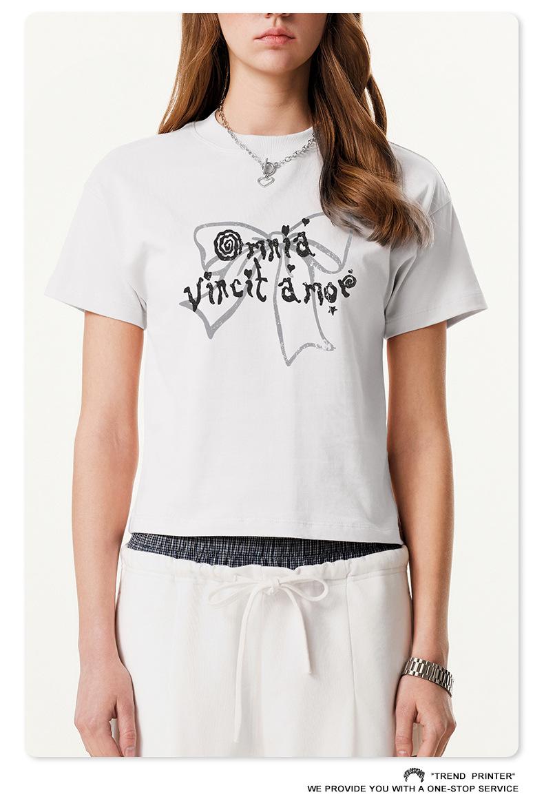 Verano 2025 Nicho Americano Chica Picante Hombro Recto Lazo Manga Corta Camiseta Adelgazante Cuello Redondo Top para Mujer