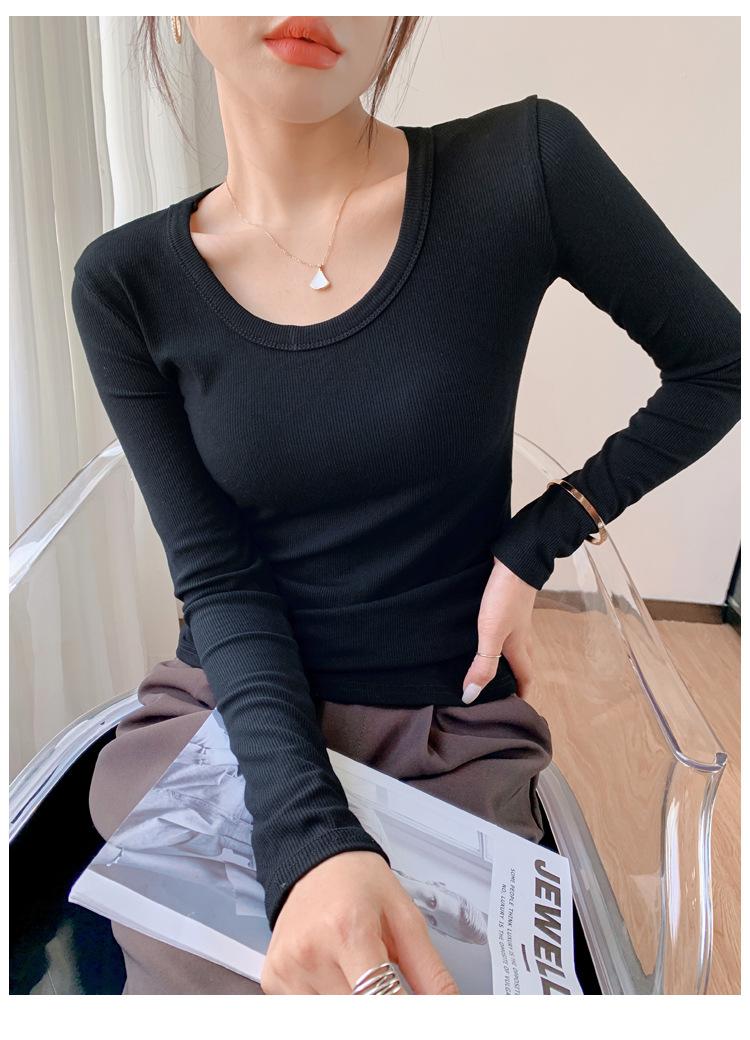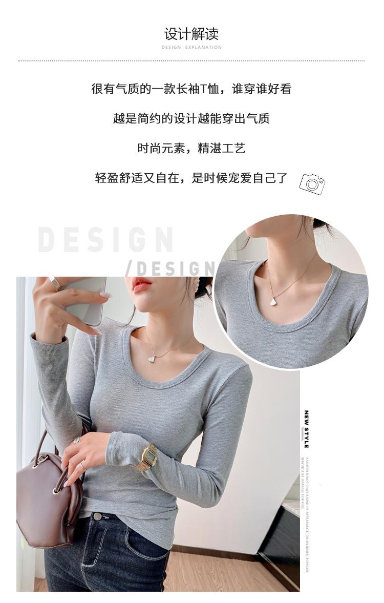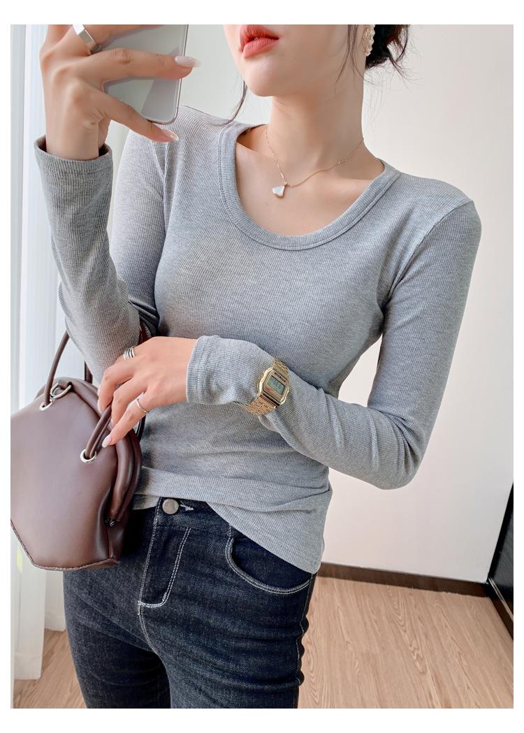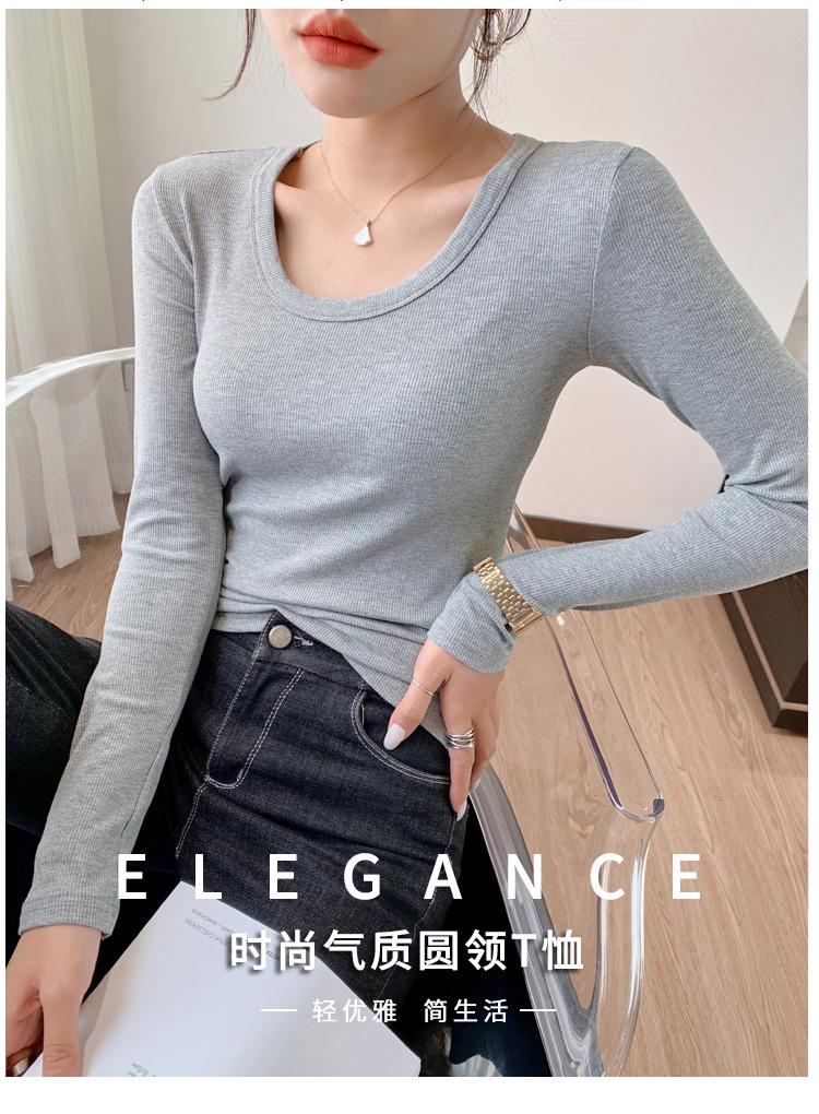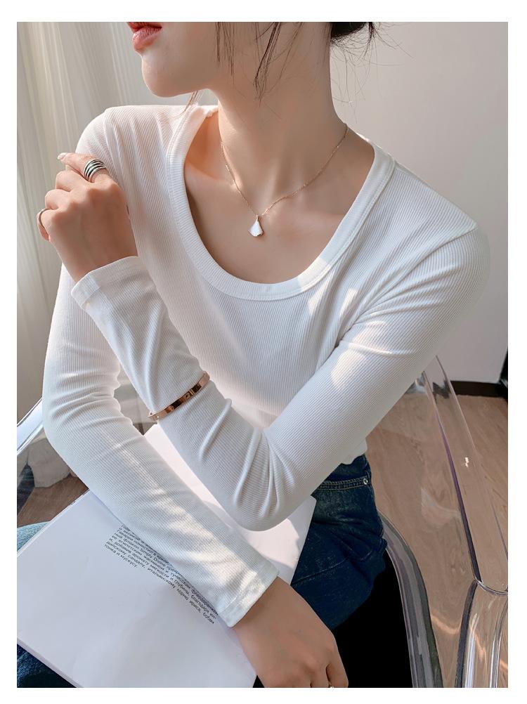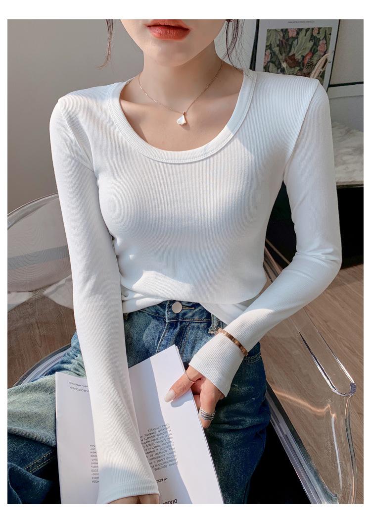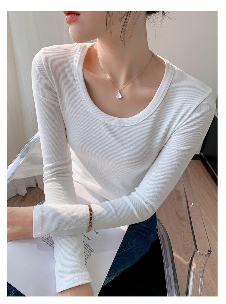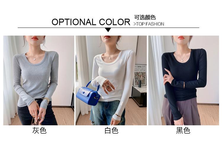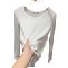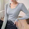 Compra Camiseta básica de cuello redondo ropa interior de mujer 2025 nuevo estilo de principios de otoño color sólido sexy top con clavícula ajuste ceñido y adelgazante camiseta de manga larga al por mayor en Joom.pro
