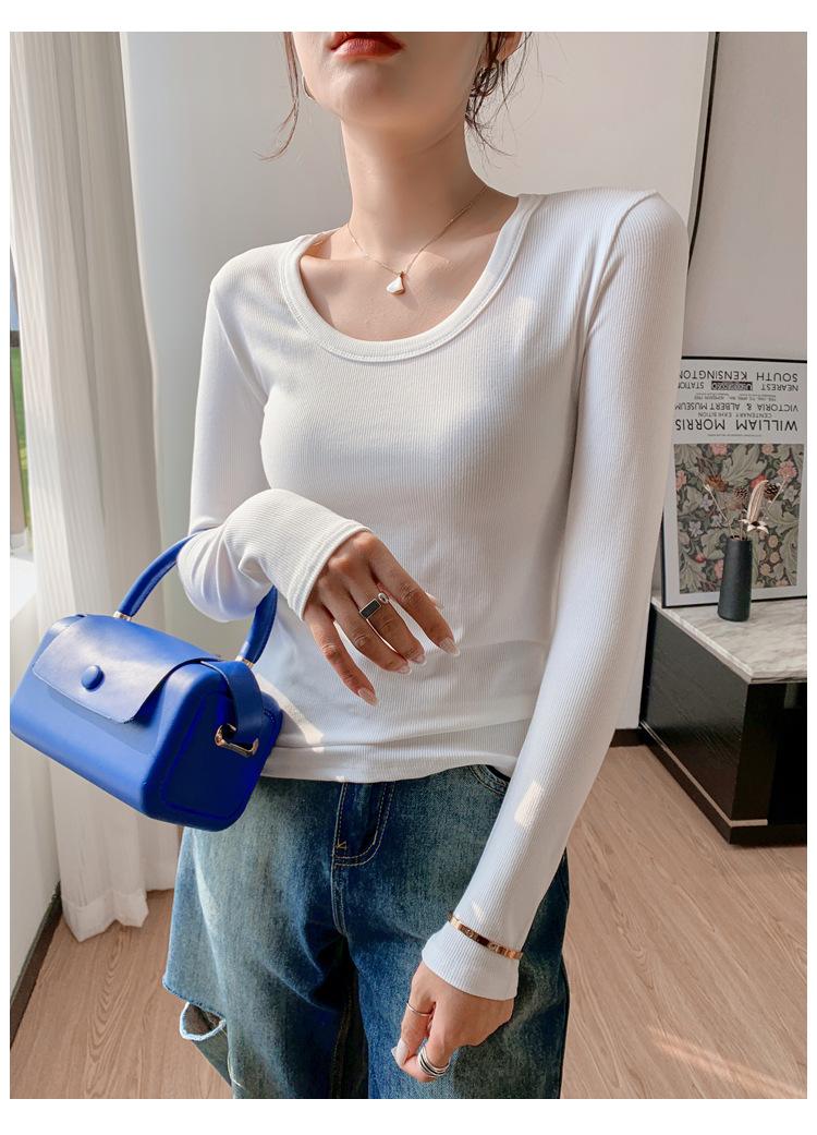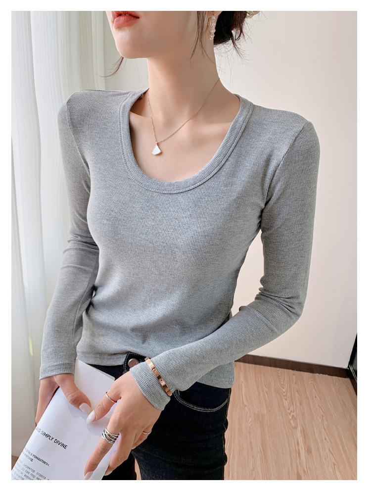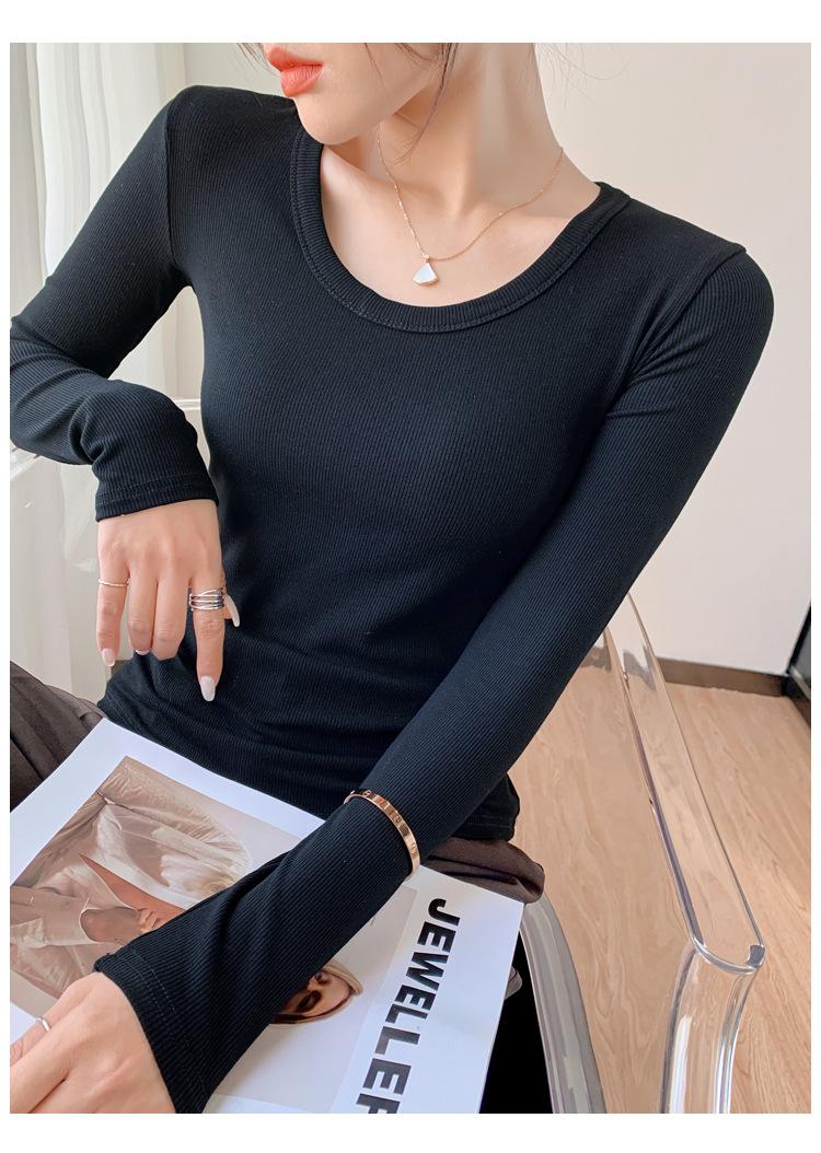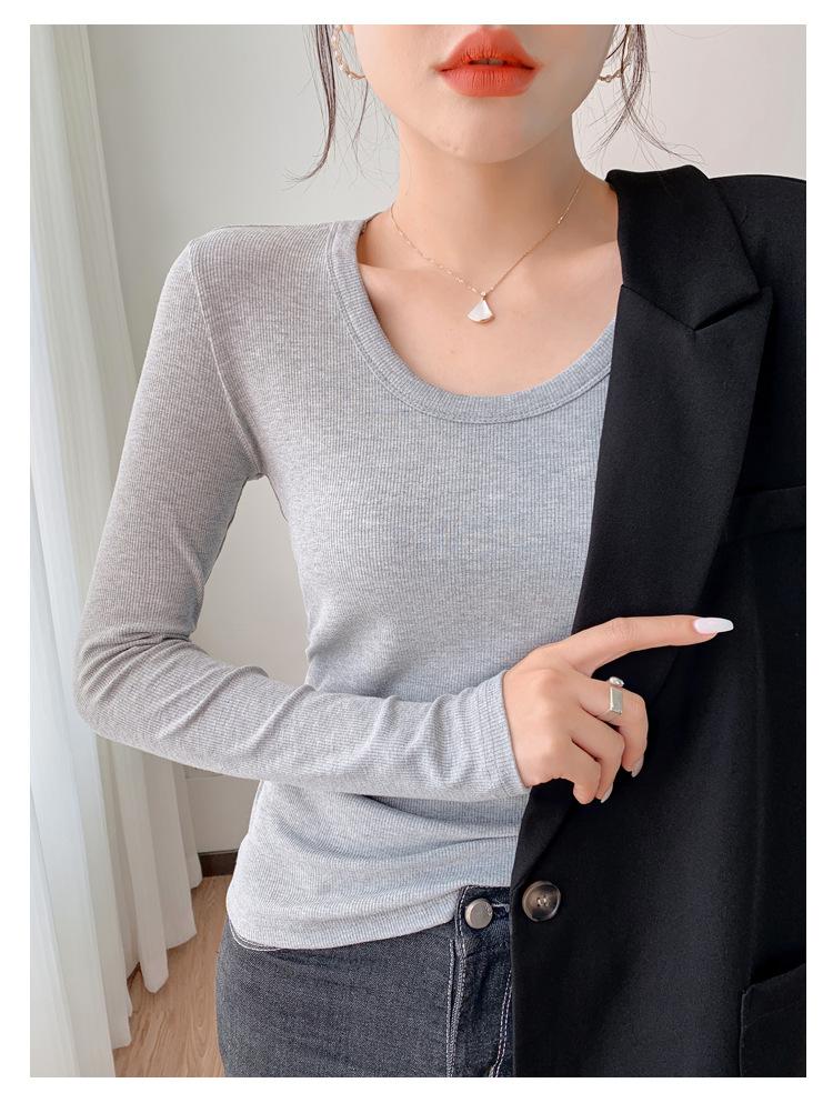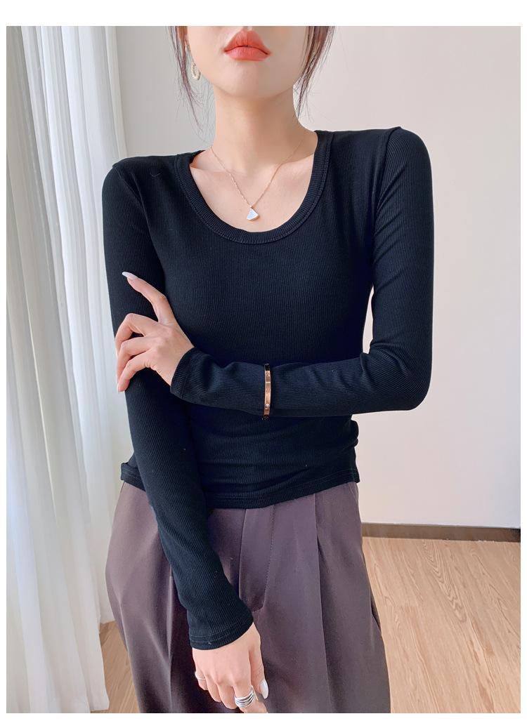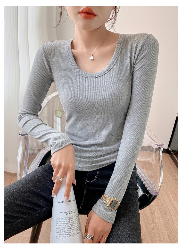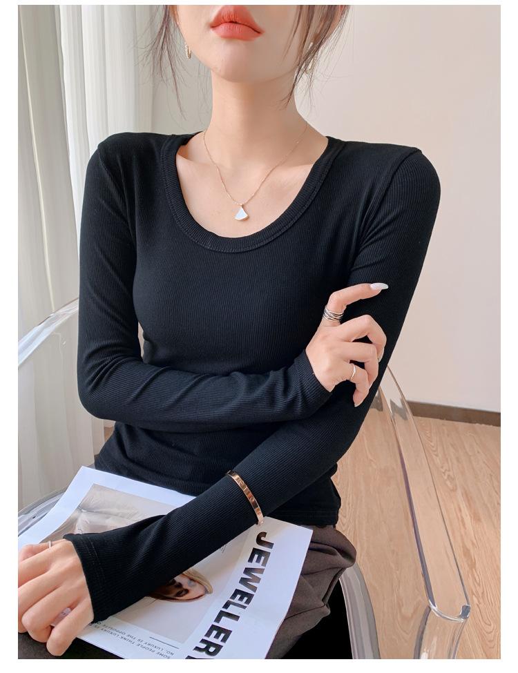 Compra Camiseta básica de cuello redondo ropa interior de mujer 2025 nuevo estilo de principios de otoño color sólido sexy top con clavícula ajuste ceñido y adelgazante camiseta de manga larga al por mayor en Joom.pro