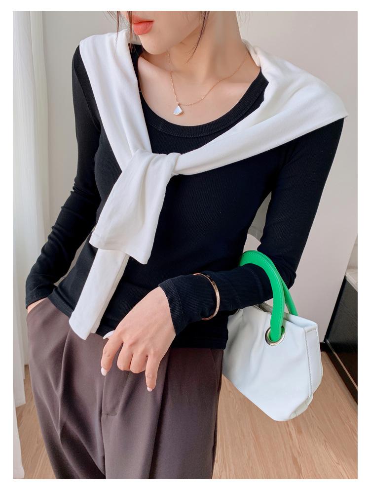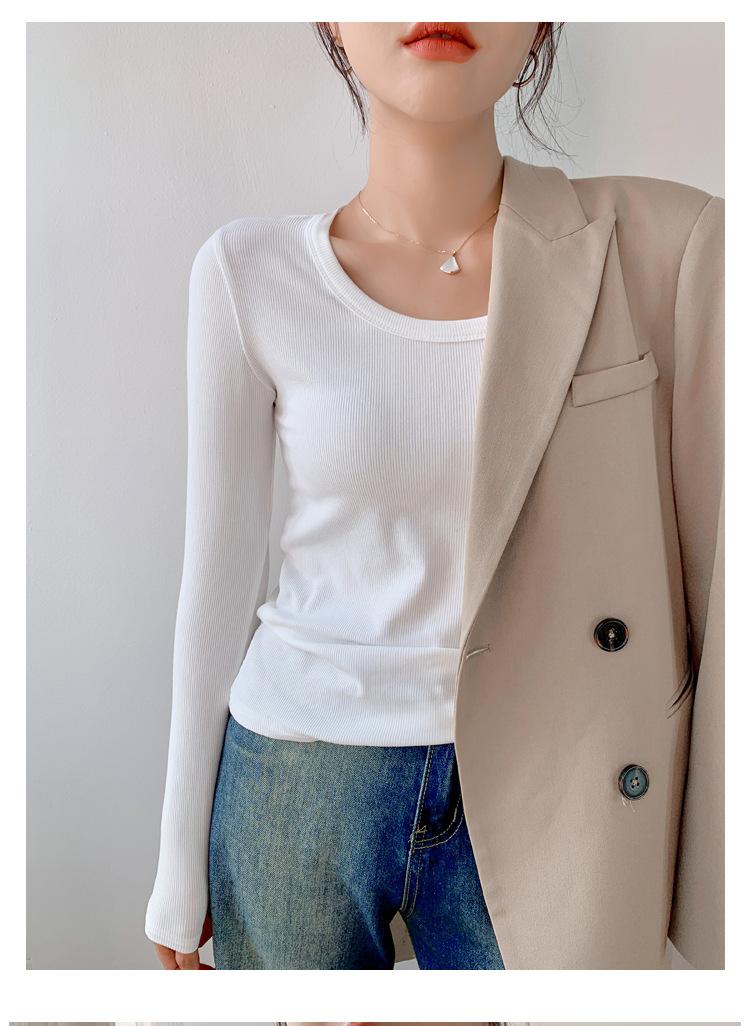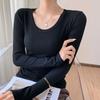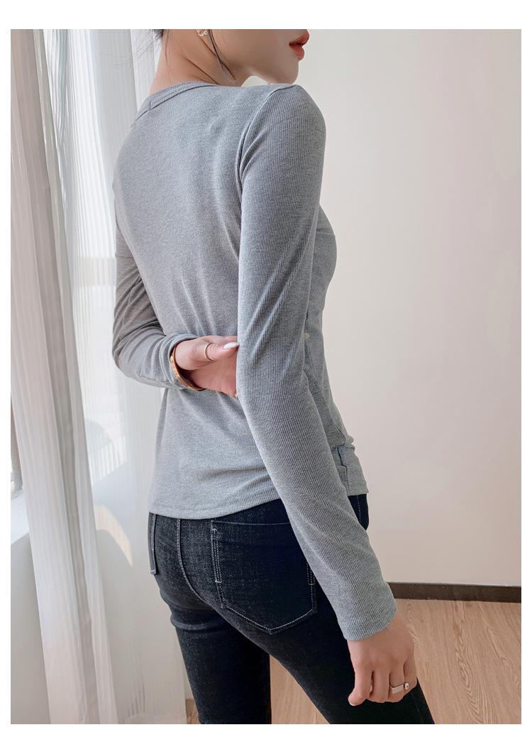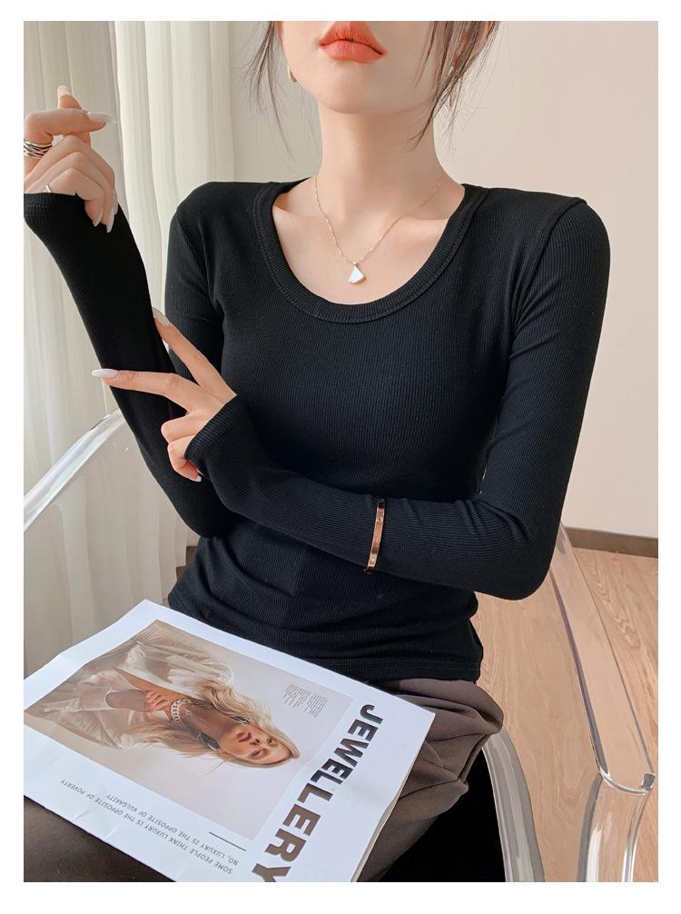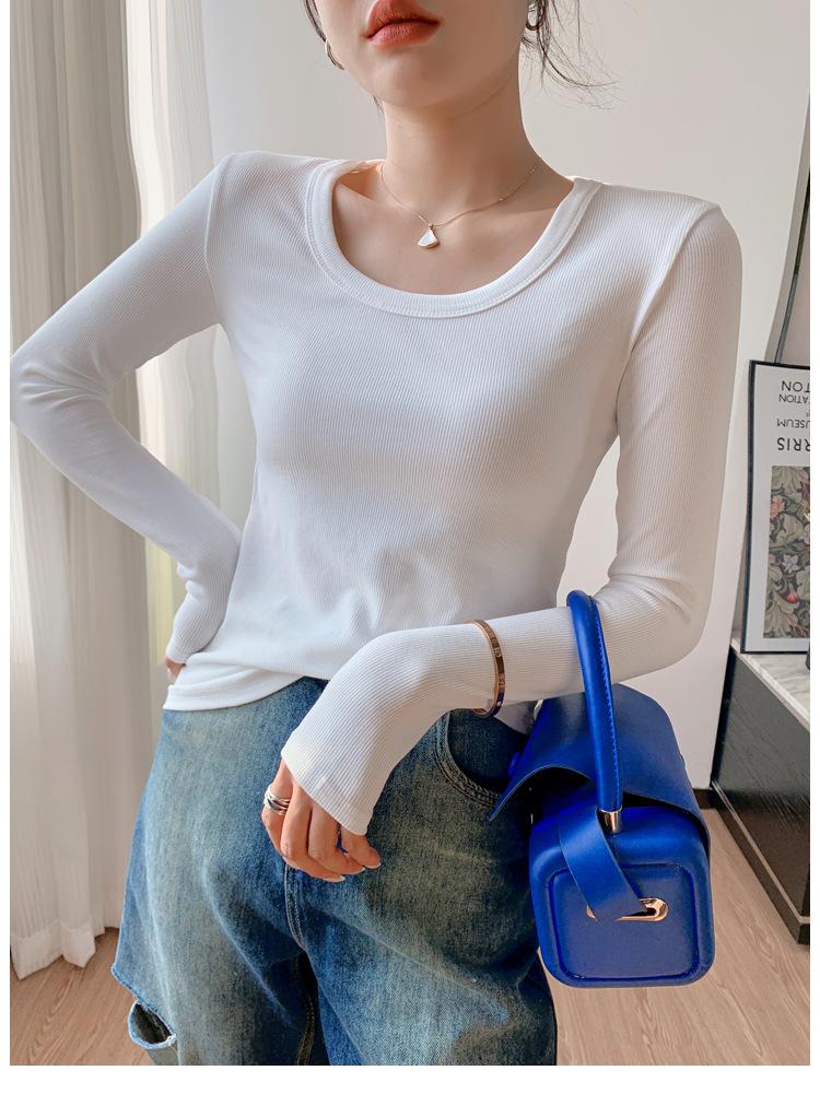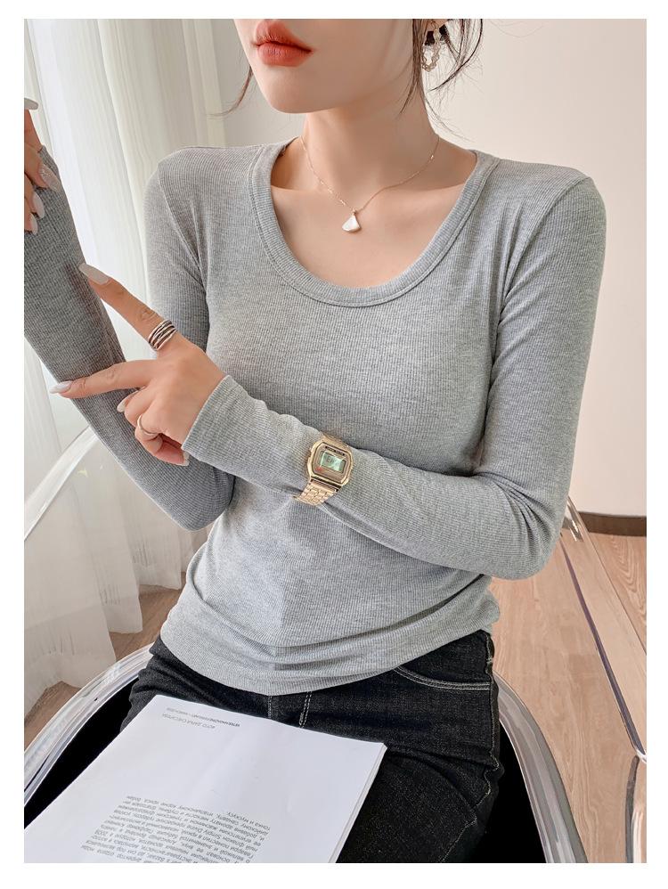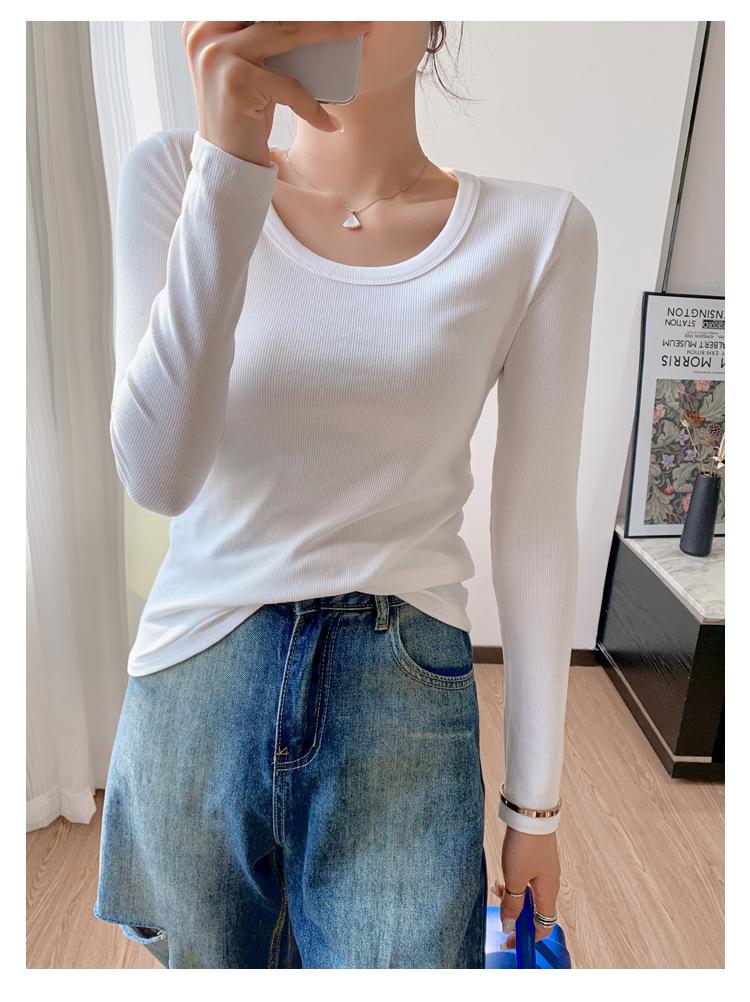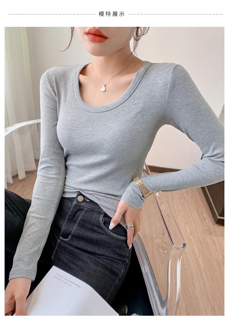 Compra Camiseta básica de cuello redondo ropa interior de mujer 2025 nuevo estilo de principios de otoño color sólido sexy top con clavícula ajuste ceñido y adelgazante camiseta de manga larga al por mayor en Joom.pro