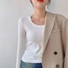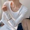 Tiro real camiseta básica de cuello redondo ropa interior para mujer 2024 primavera y otoño nueva color sólido sexy top clavícula slim camiseta de manga larga