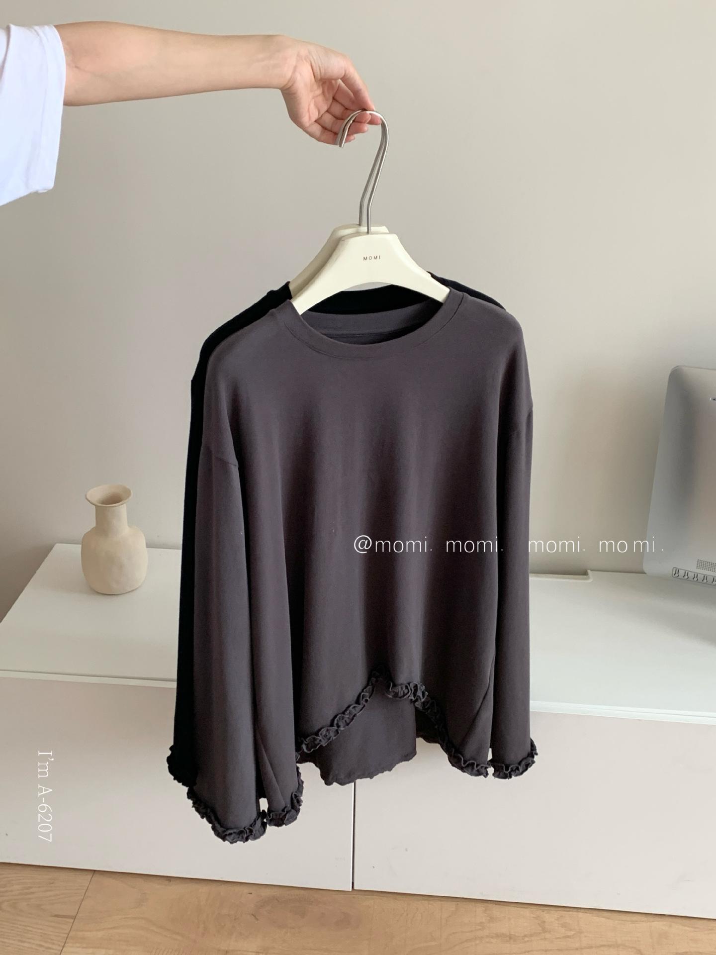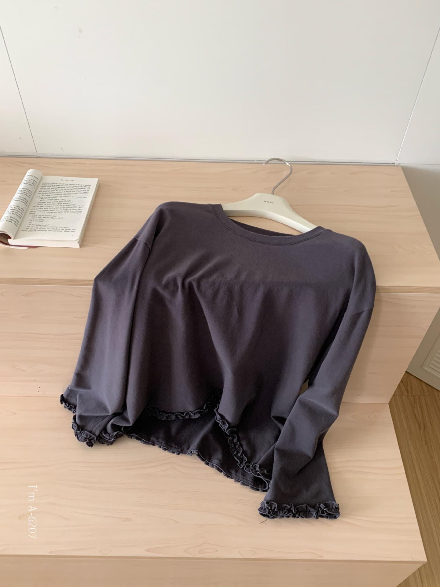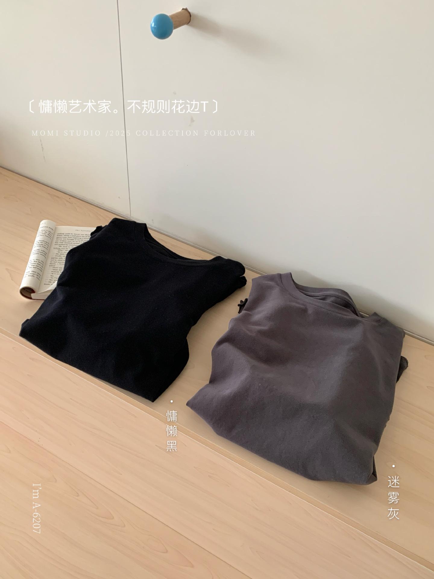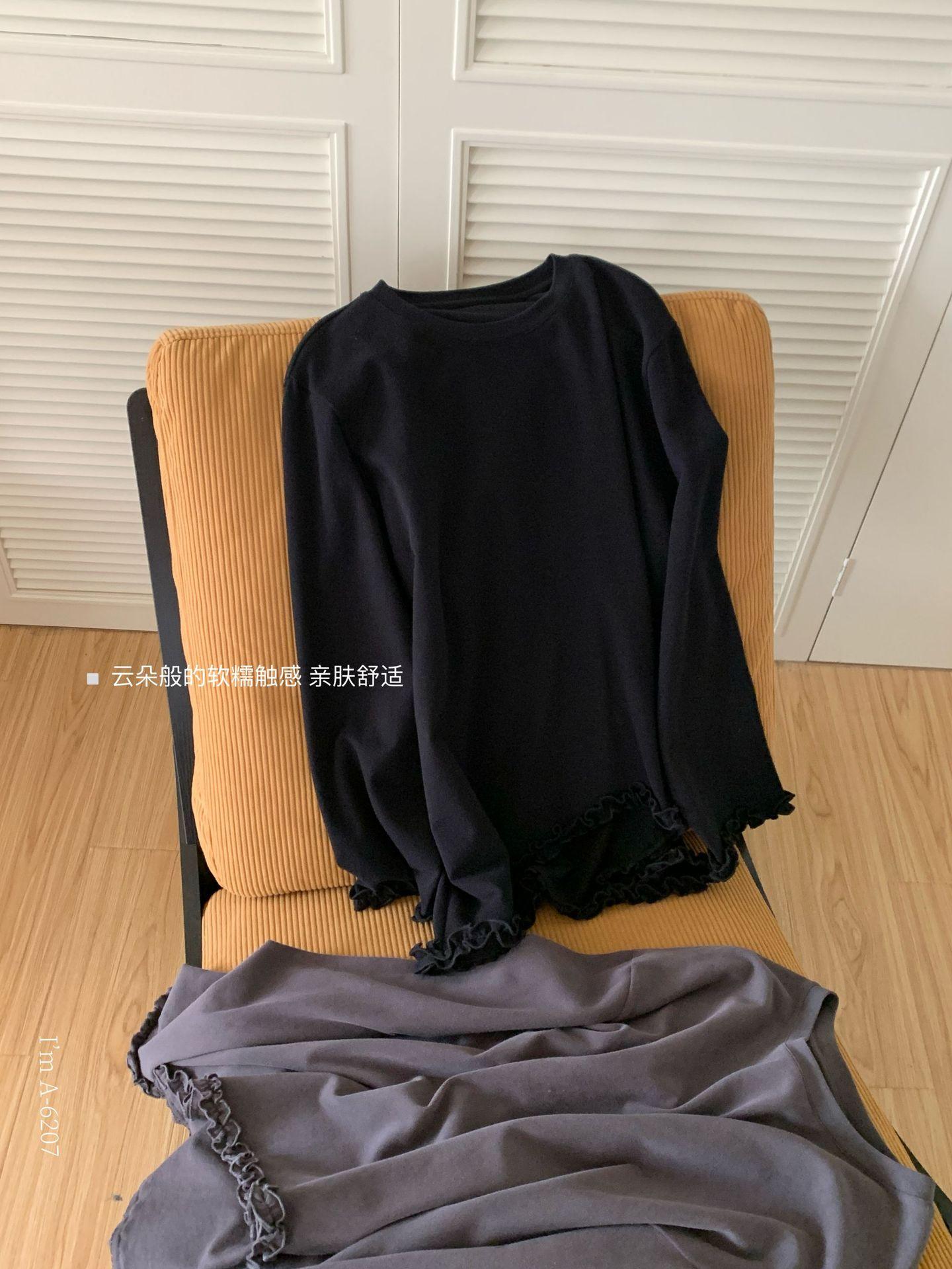 Principios de Otoño Nueva Camiseta de Encaje Irregular de Artista Perezoso para Mujer Diseño con Sentido Casual Manga Larga Temperamento Versátil Top