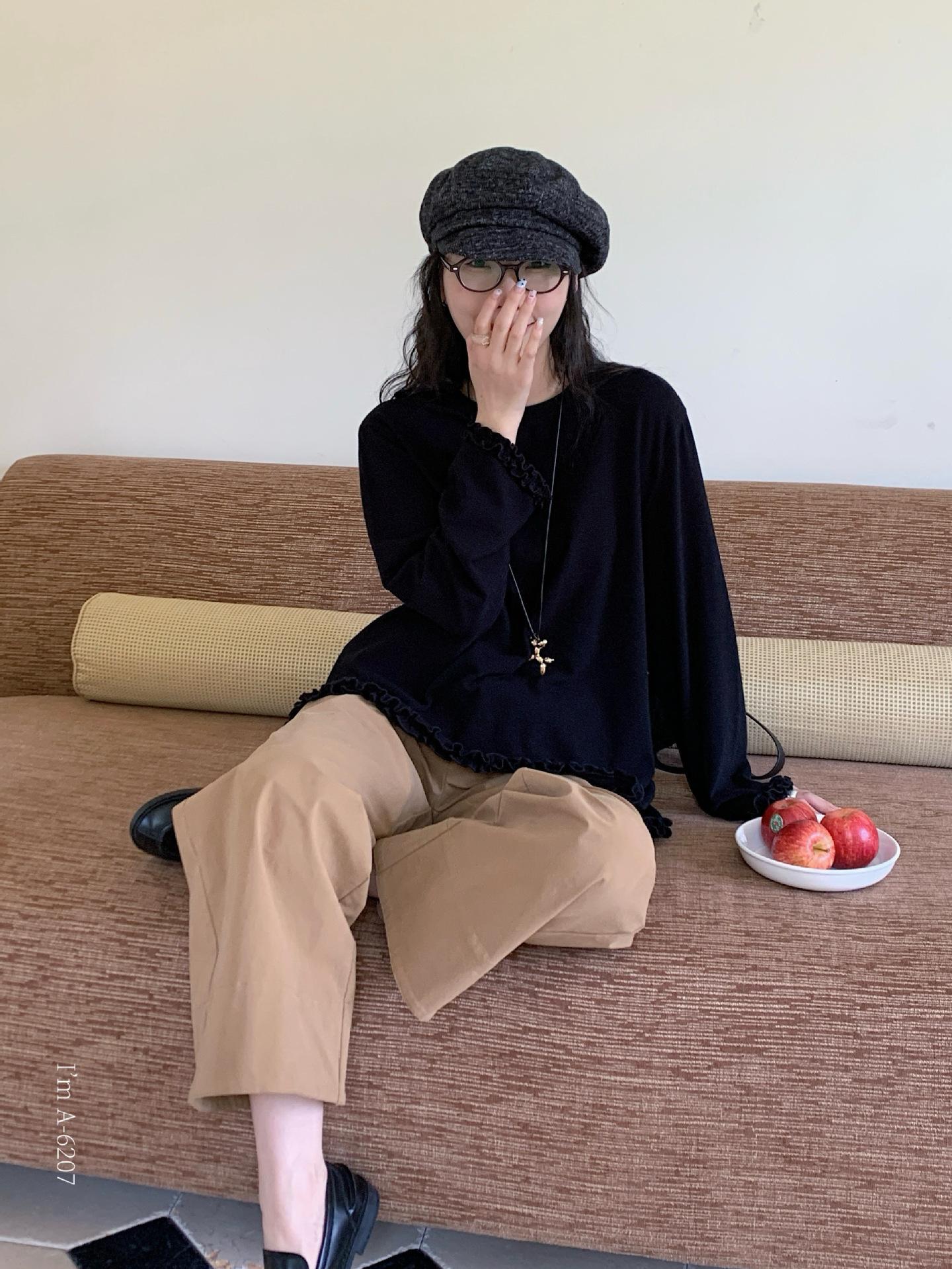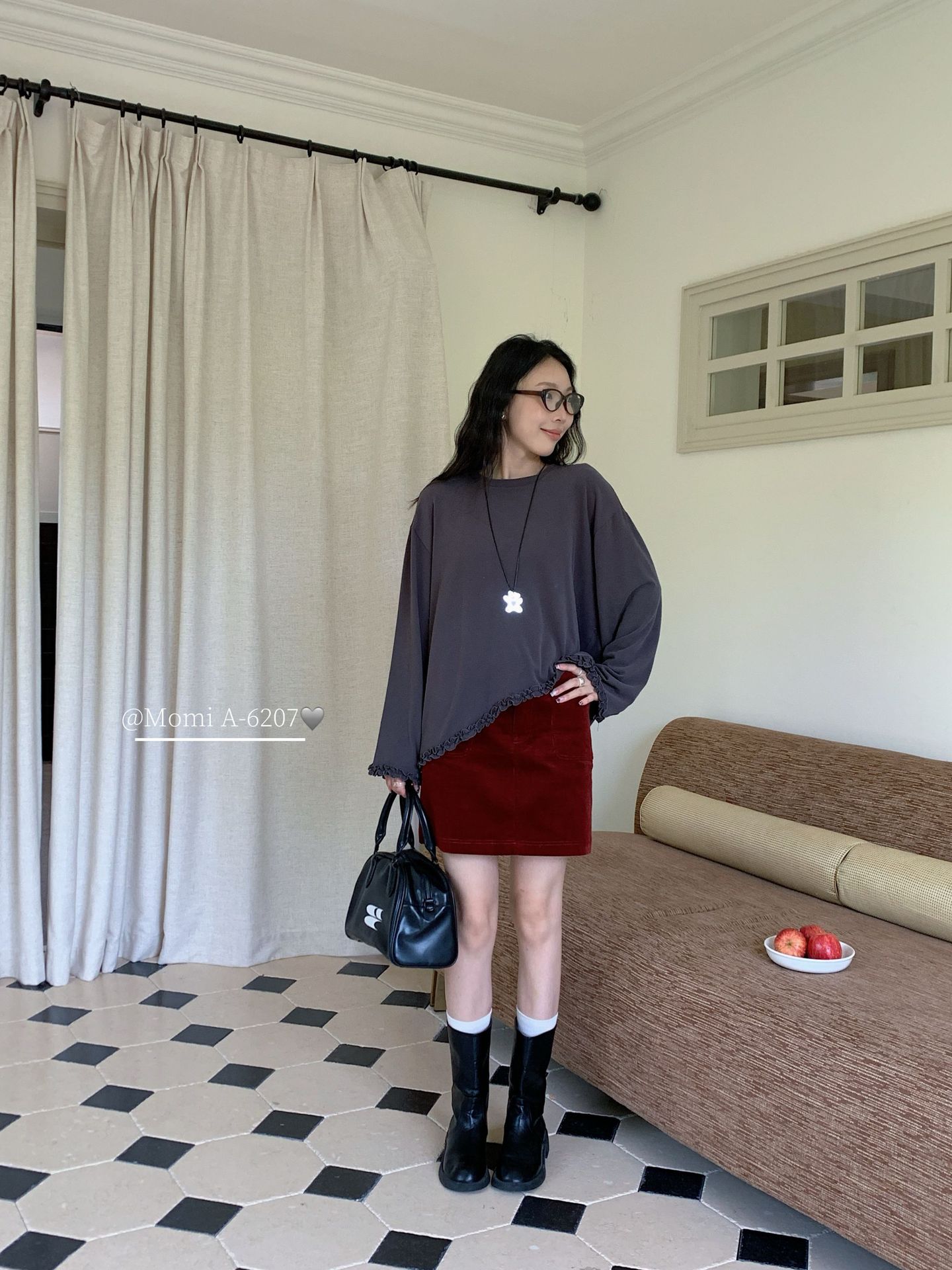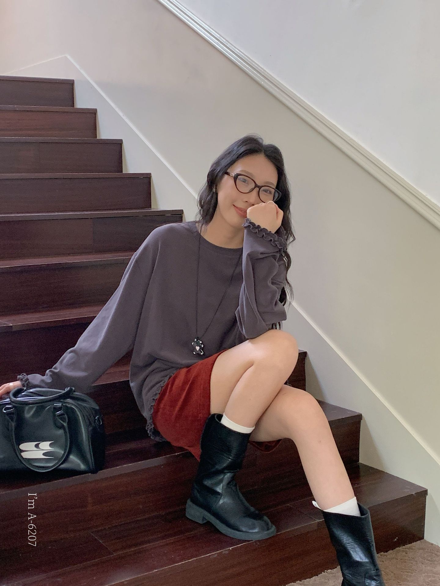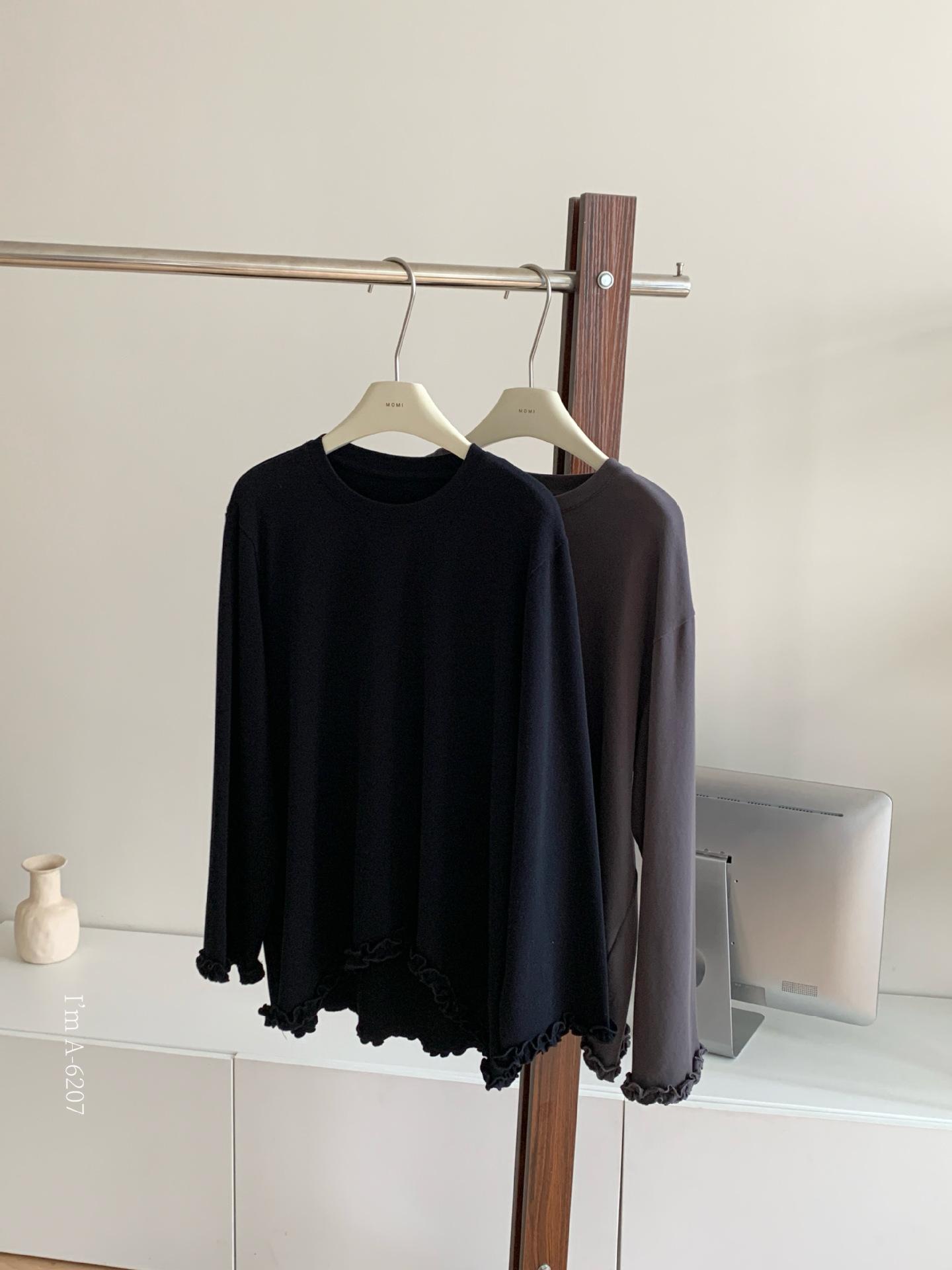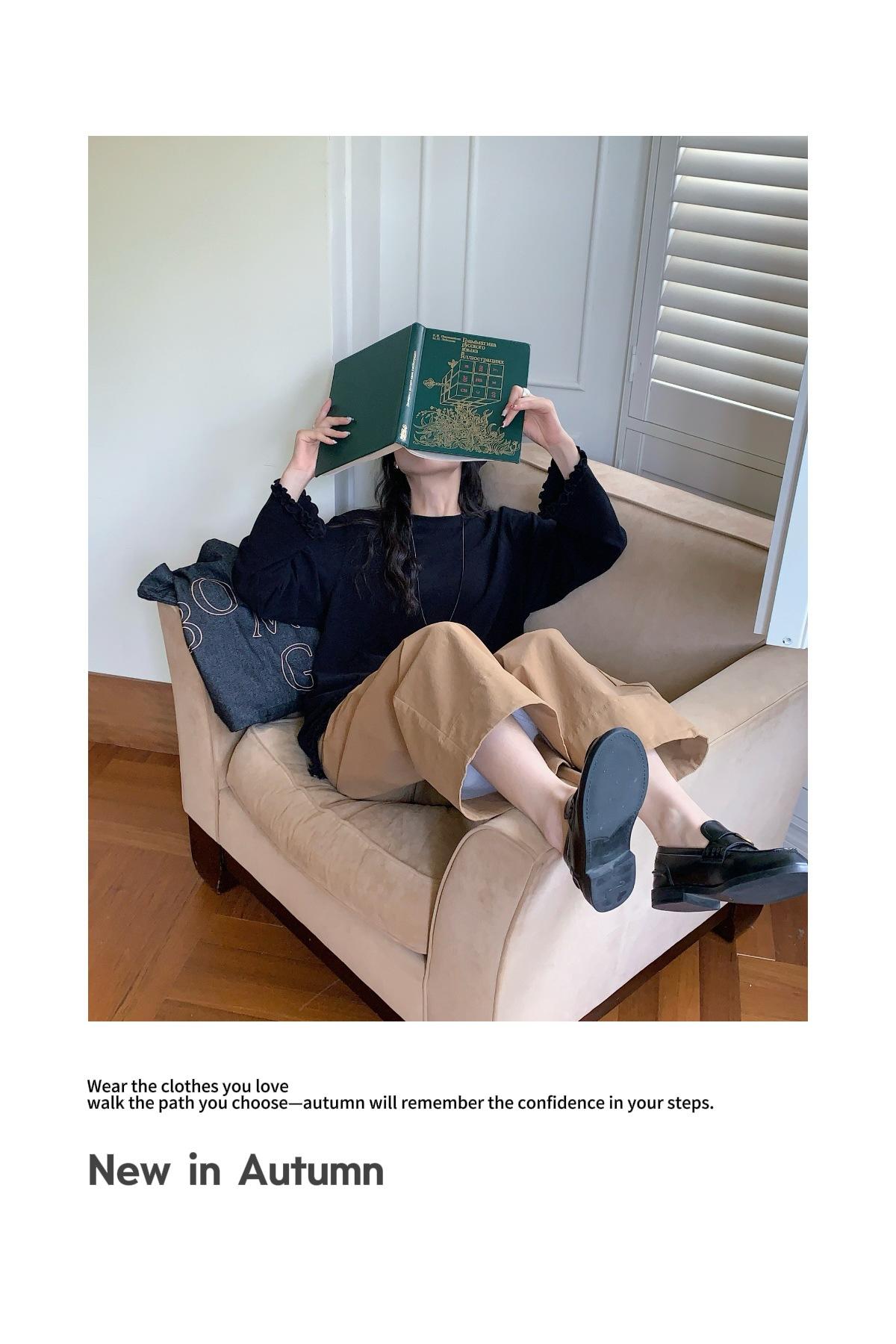 Principios de Otoño Nueva Camiseta de Encaje Irregular de Artista Perezoso para Mujer Diseño con Sentido Casual Manga Larga Temperamento Versátil Top