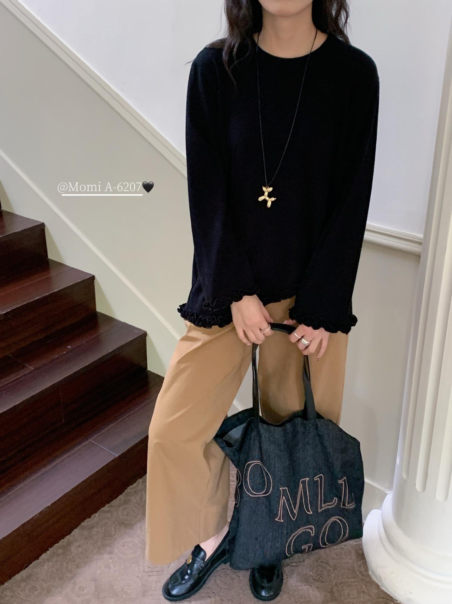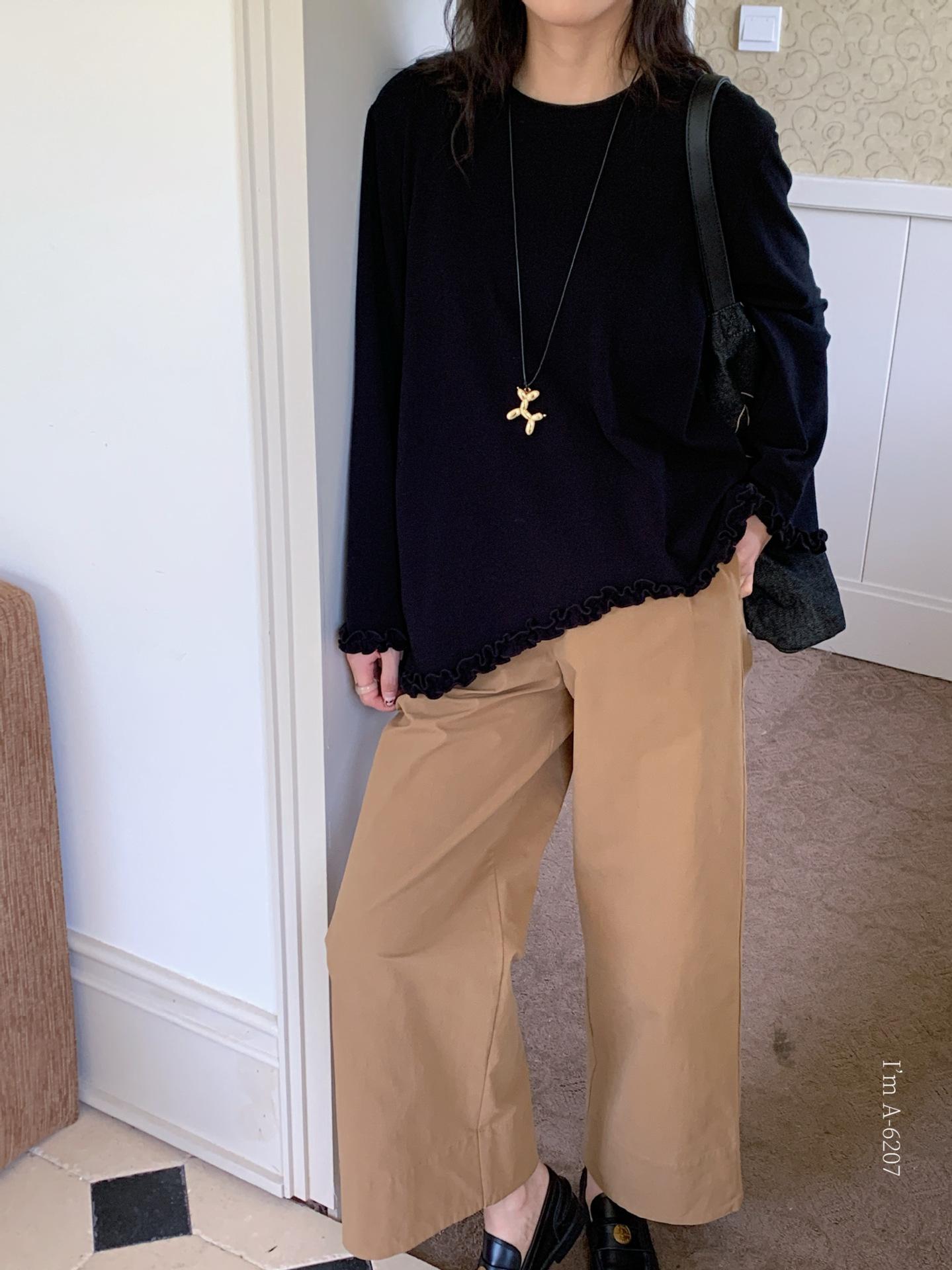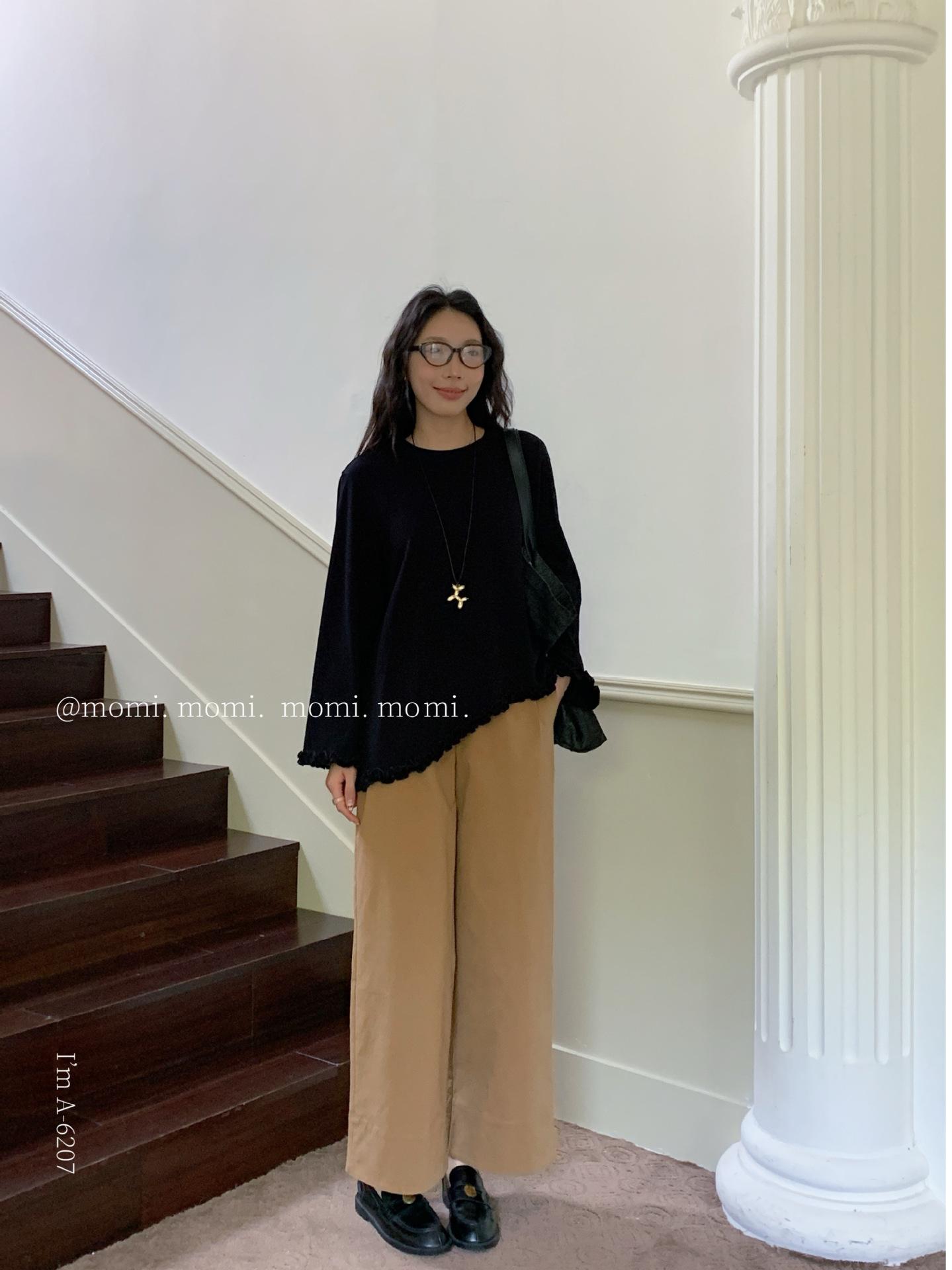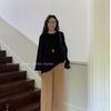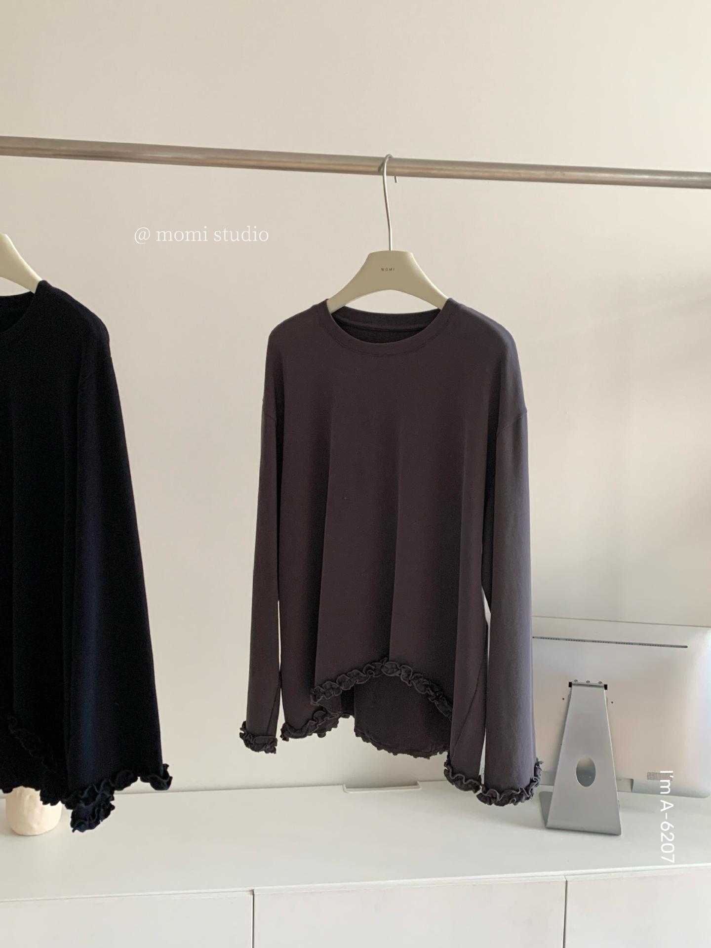 Principios de Otoño Nueva Camiseta de Encaje Irregular de Artista Perezoso para Mujer Diseño con Sentido Casual Manga Larga Temperamento Versátil Top