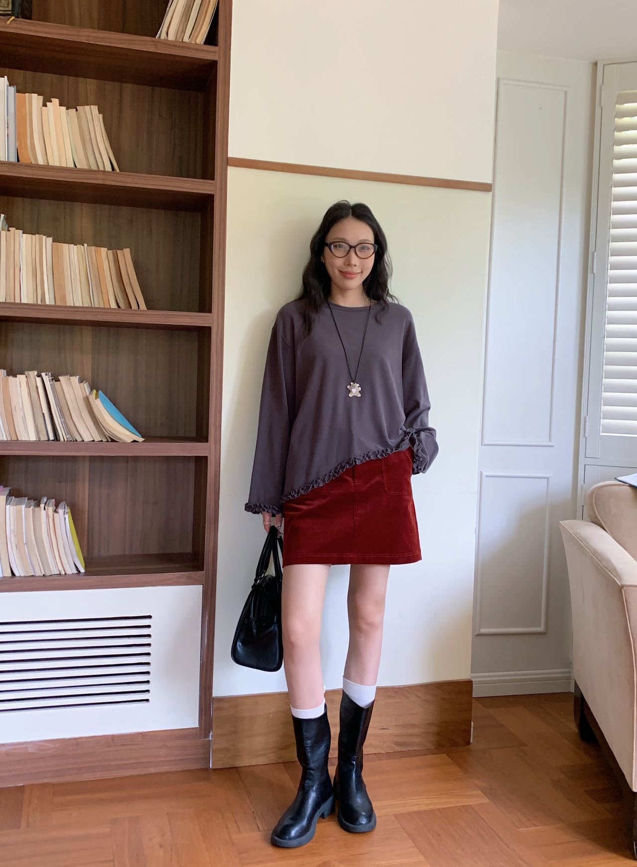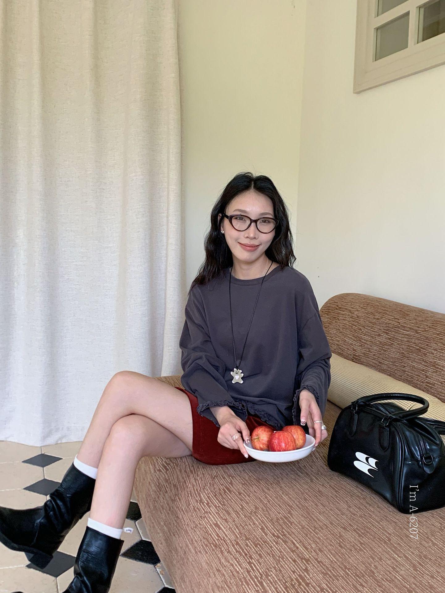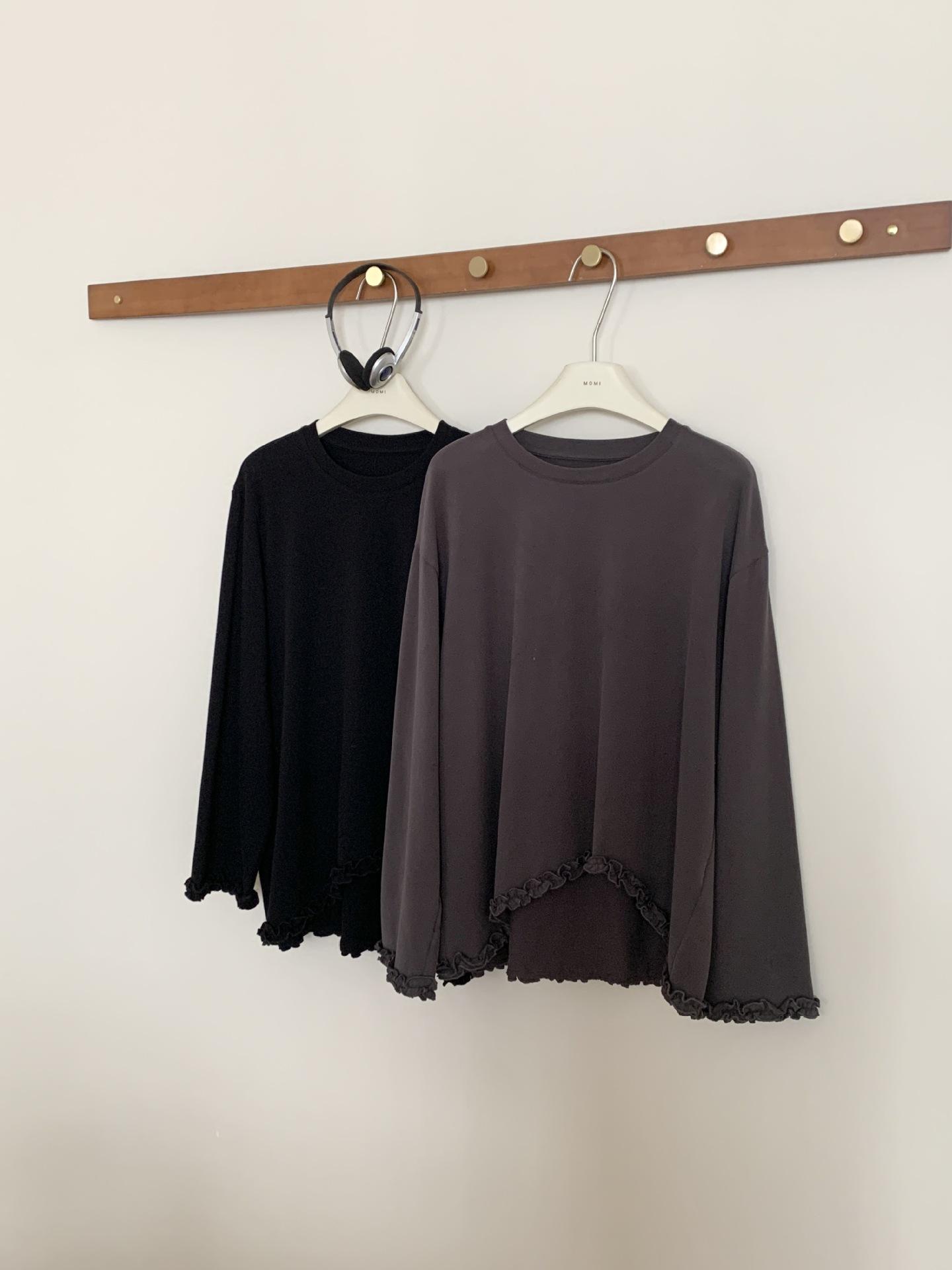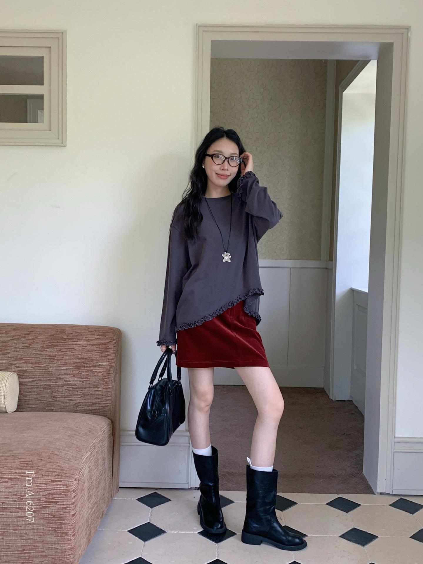 Principios de Otoño Nueva Camiseta de Encaje Irregular de Artista Perezoso para Mujer Diseño con Sentido Casual Manga Larga Temperamento Versátil Top