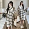 Conjunto de Vestido de Talla Grande 2025 Otoño Nuevo MM Gordo Adelgazante Vestido Camisola + Cárdigan de Punto Conjunto de Dos Piezas