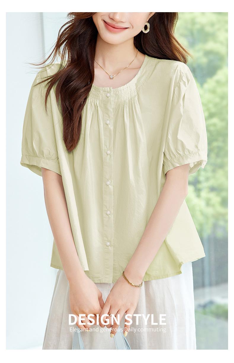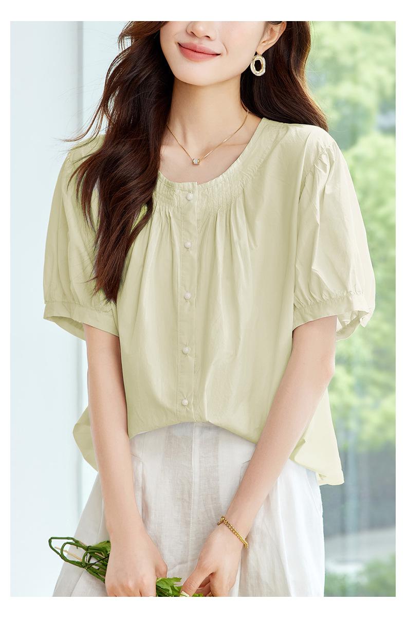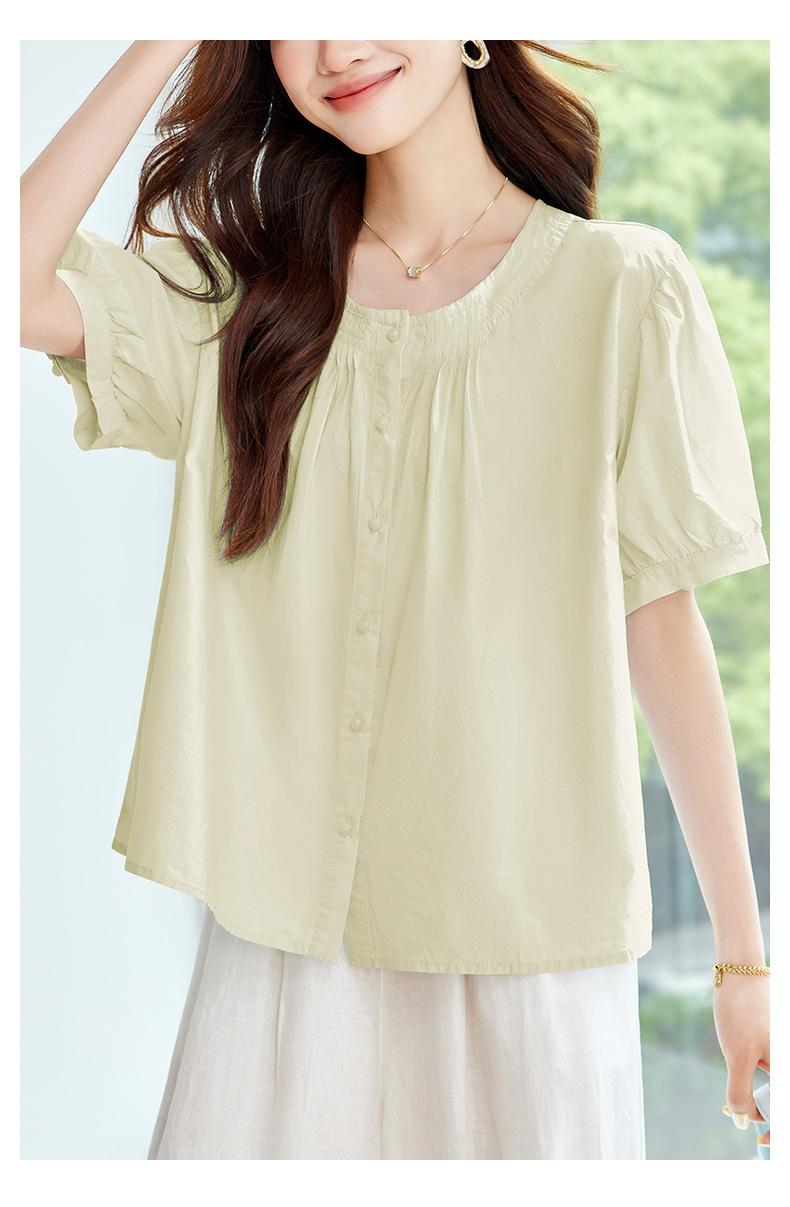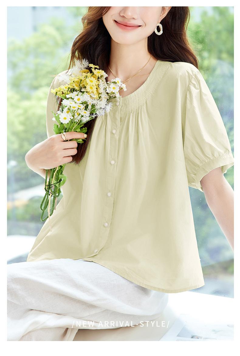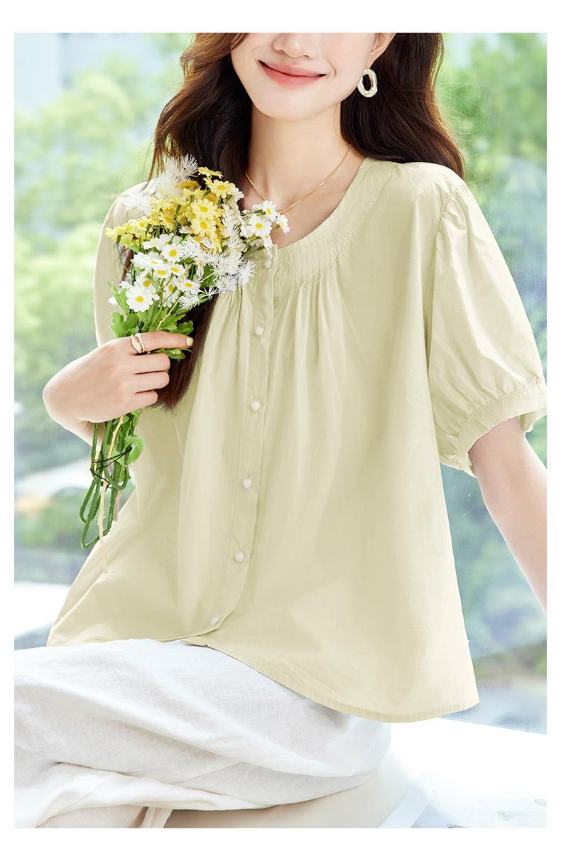 Compra Camisa Capullo de Algodón Verde Fruta para Mujer Manga Corta Verano 2025 Nuevo Top Cuello Redondo Camisa Pequeña Holgada de Algodón al por mayor en Joom.pro