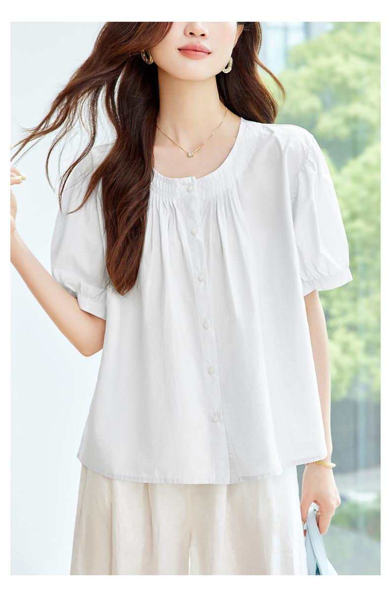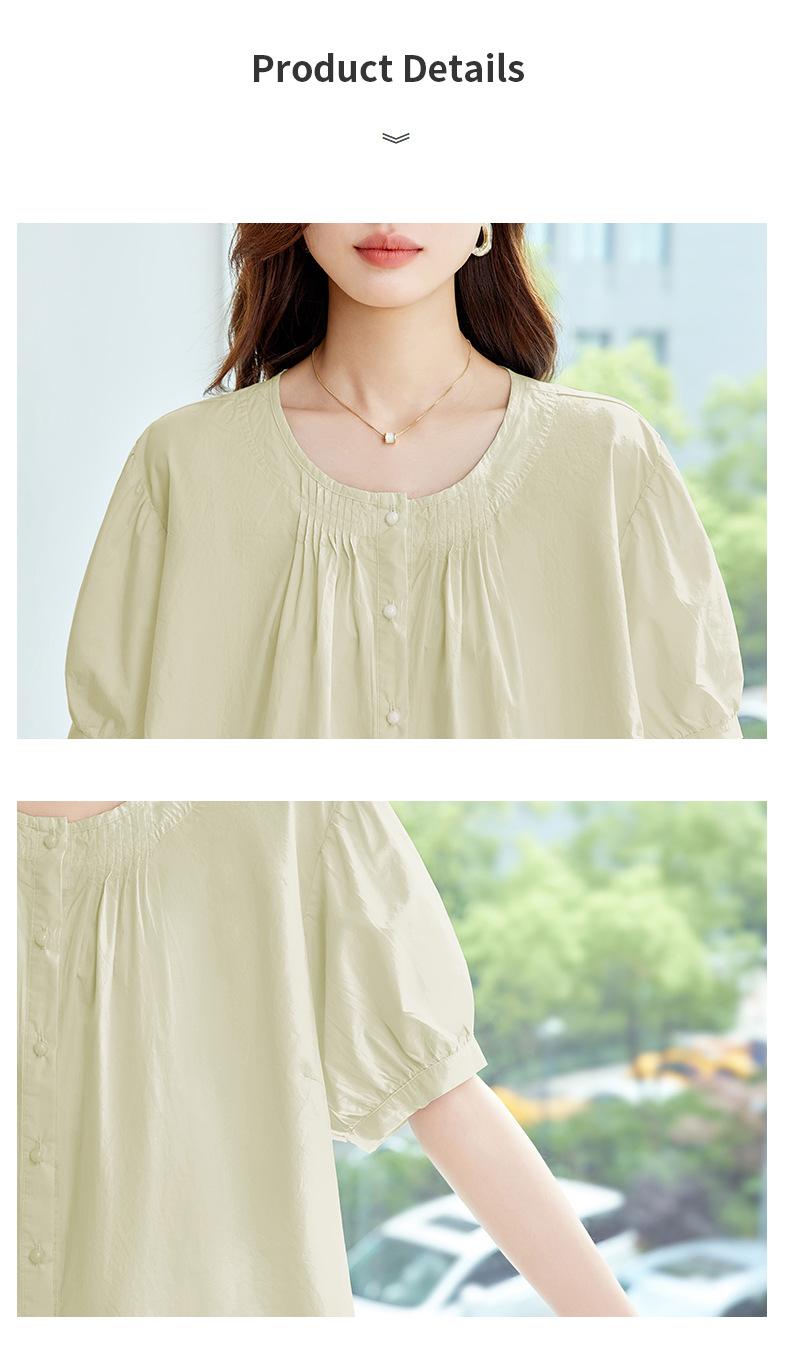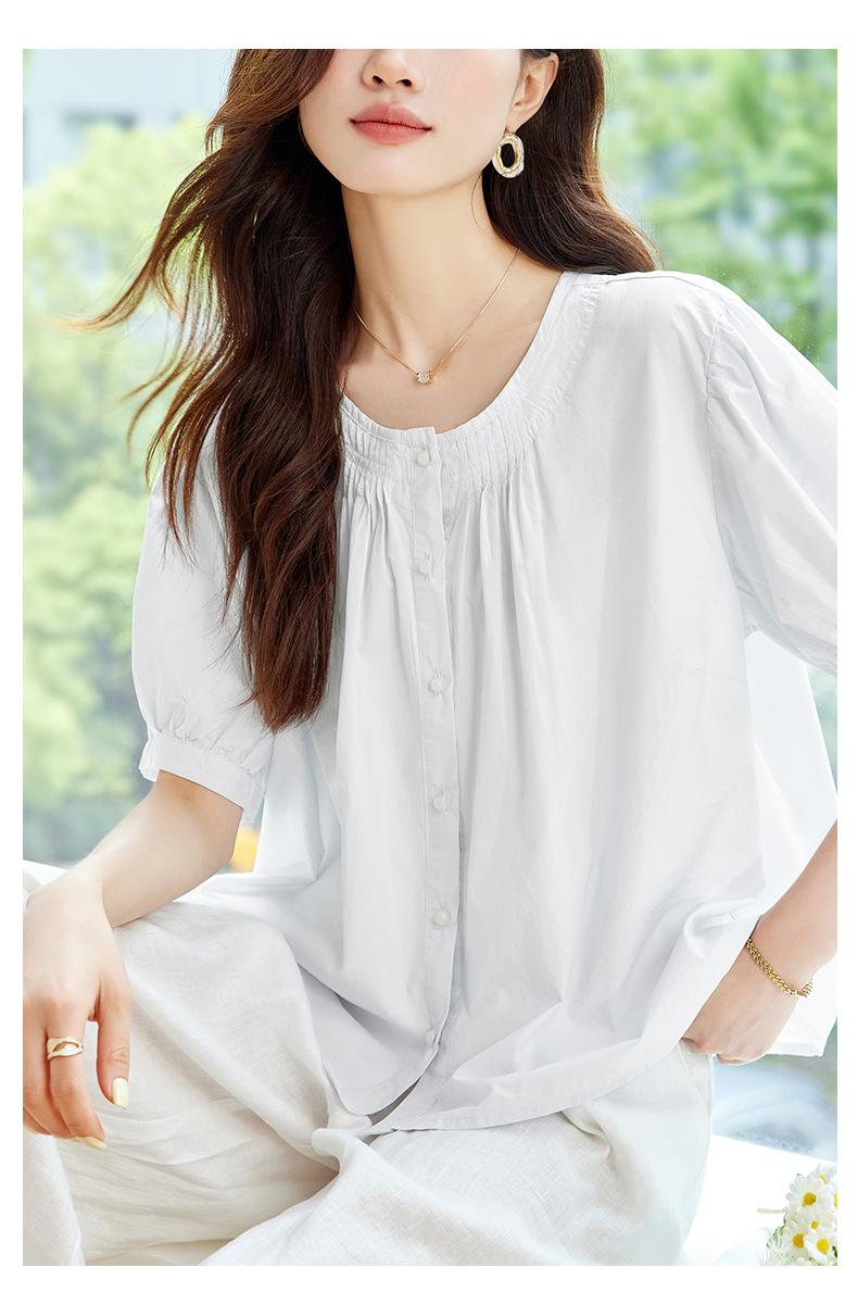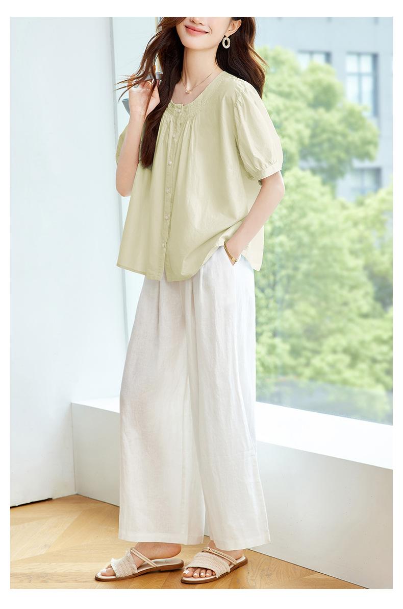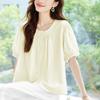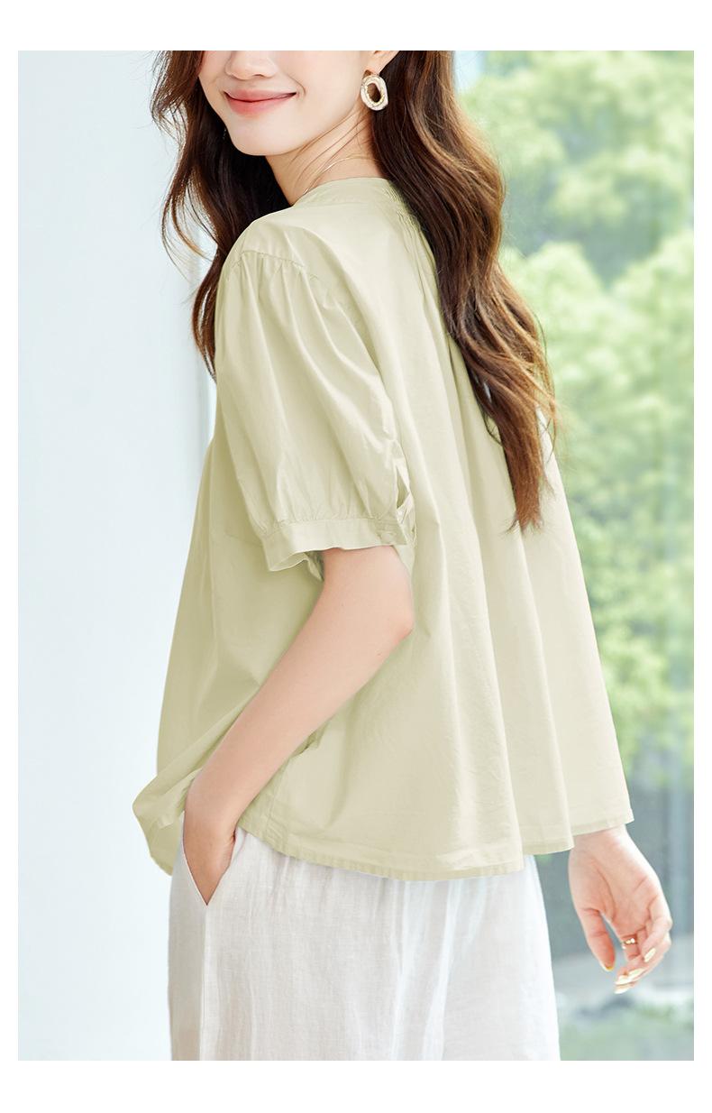 Compra Camisa Capullo de Algodón Verde Fruta para Mujer Manga Corta Verano 2025 Nuevo Top Cuello Redondo Camisa Pequeña Holgada de Algodón al por mayor en Joom.pro