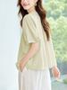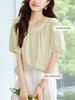 Camisa Capullo de Algodón Verde Fruta para Mujer Manga Corta Verano 2025 Nuevo Top Cuello Redondo Camisa Pequeña Holgada de Algodón