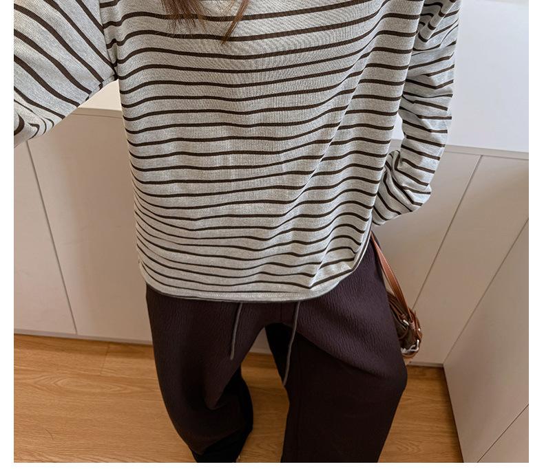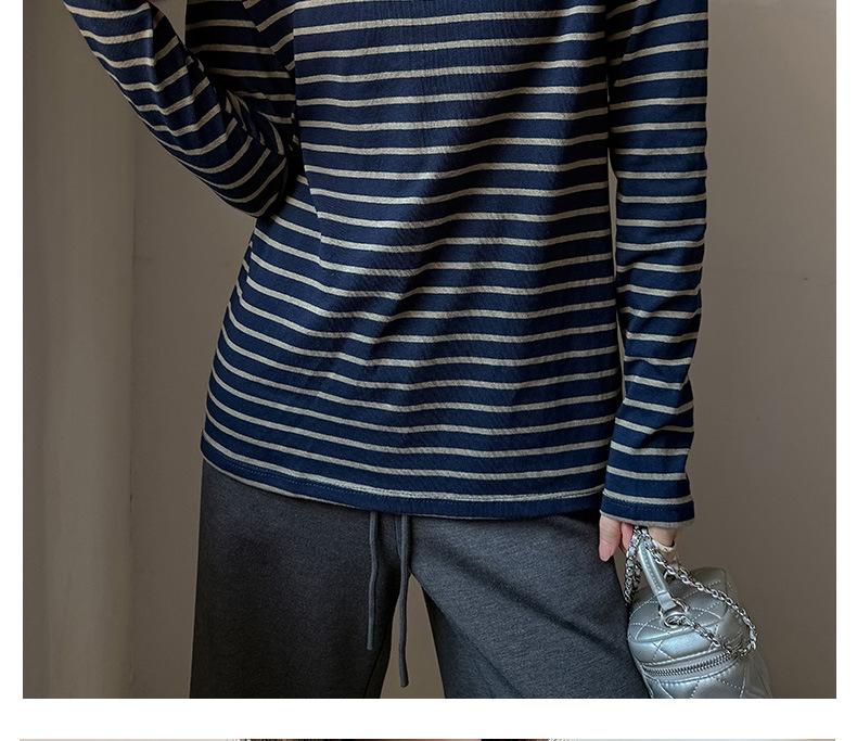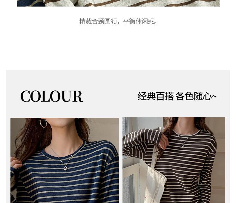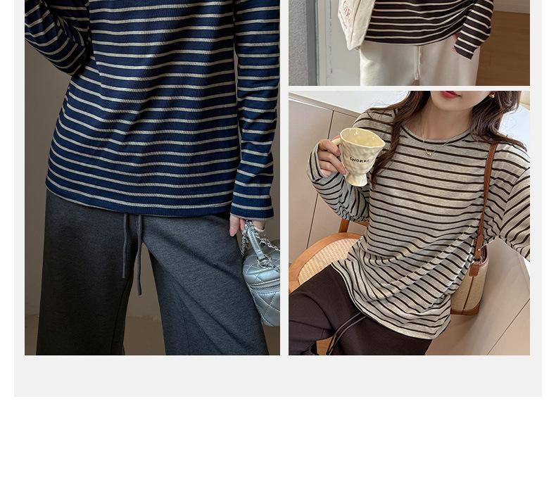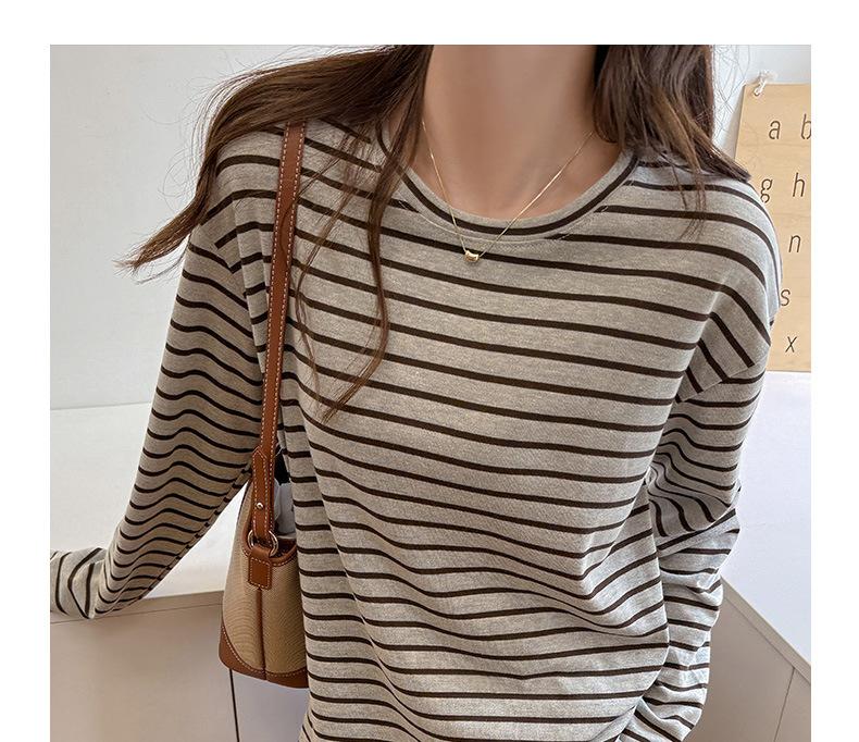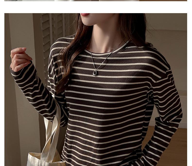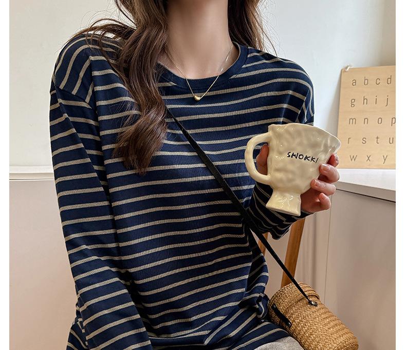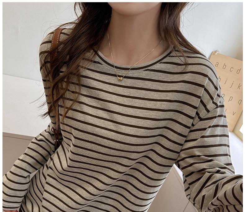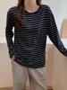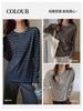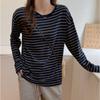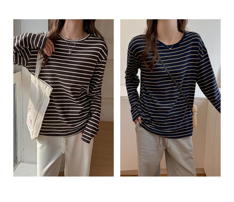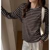 Principios de Otoño Nuevo Color Block Camiseta Básica a Rayas para Mujer Estilo Holgazán Suelta Cuello Redondo Manga Larga Camiseta Casual Simple