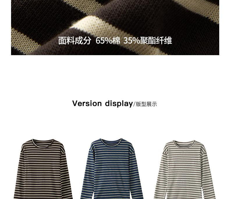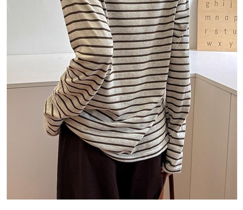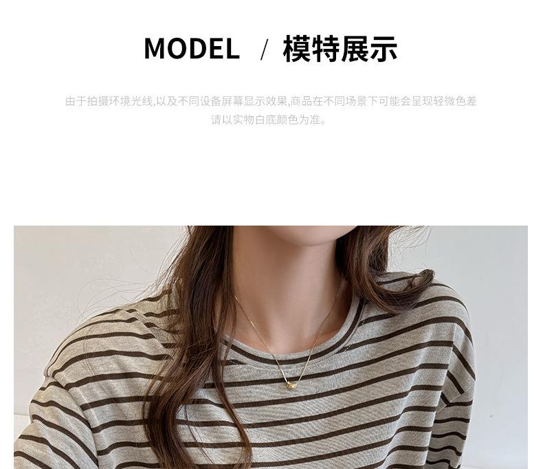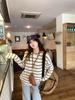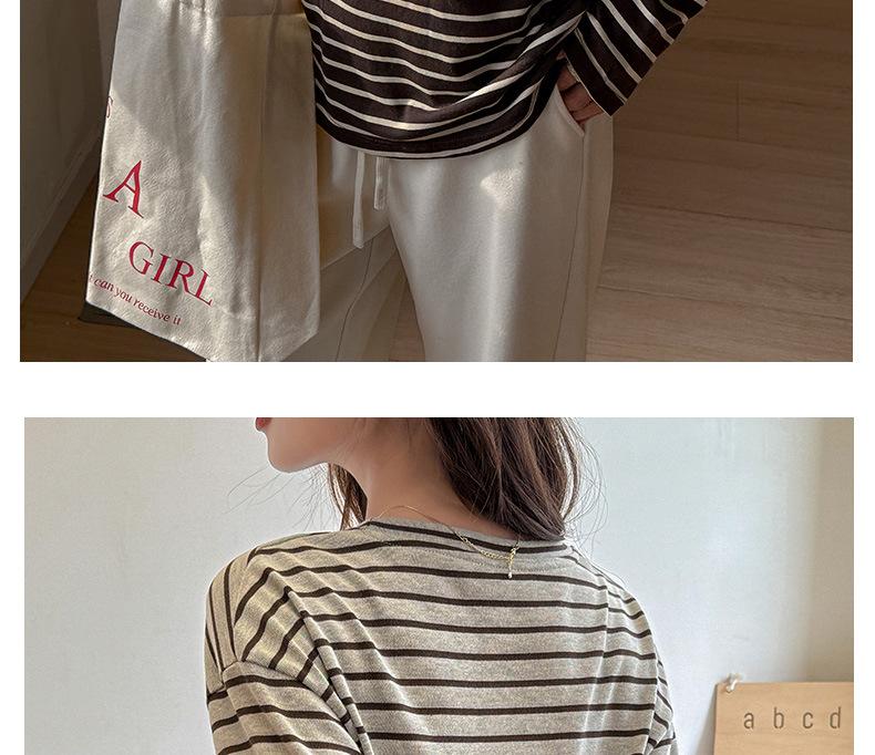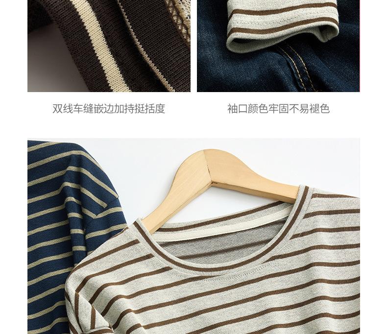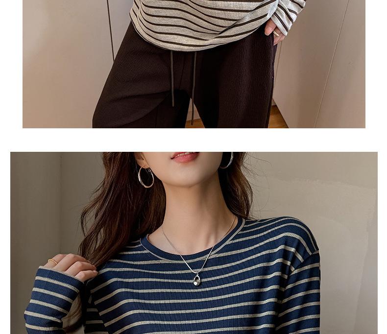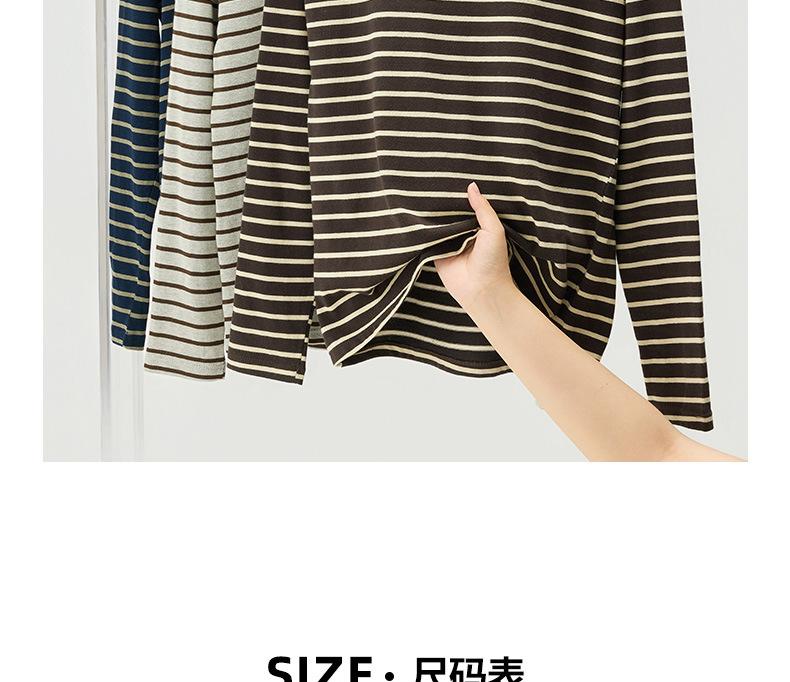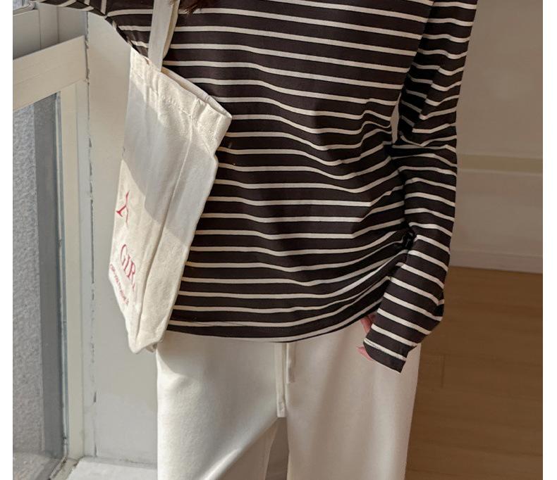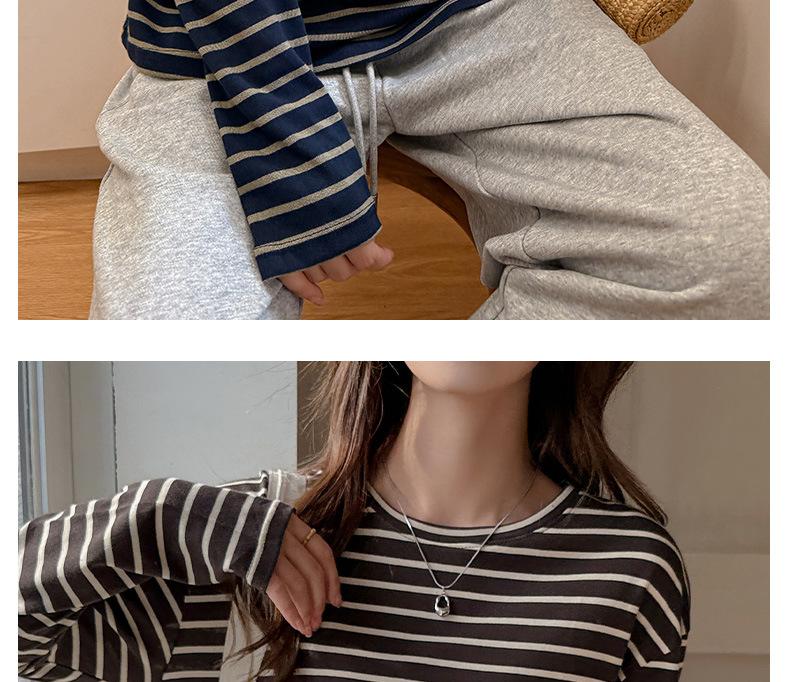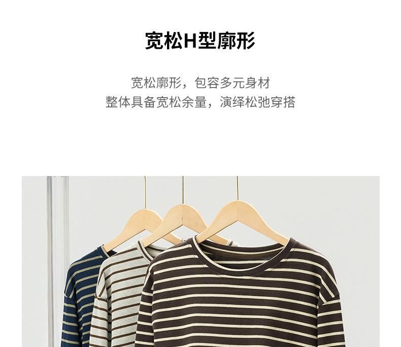 Principios de Otoño Nuevo Color Block Camiseta Básica a Rayas para Mujer Estilo Holgazán Suelta Cuello Redondo Manga Larga Camiseta Casual Simple