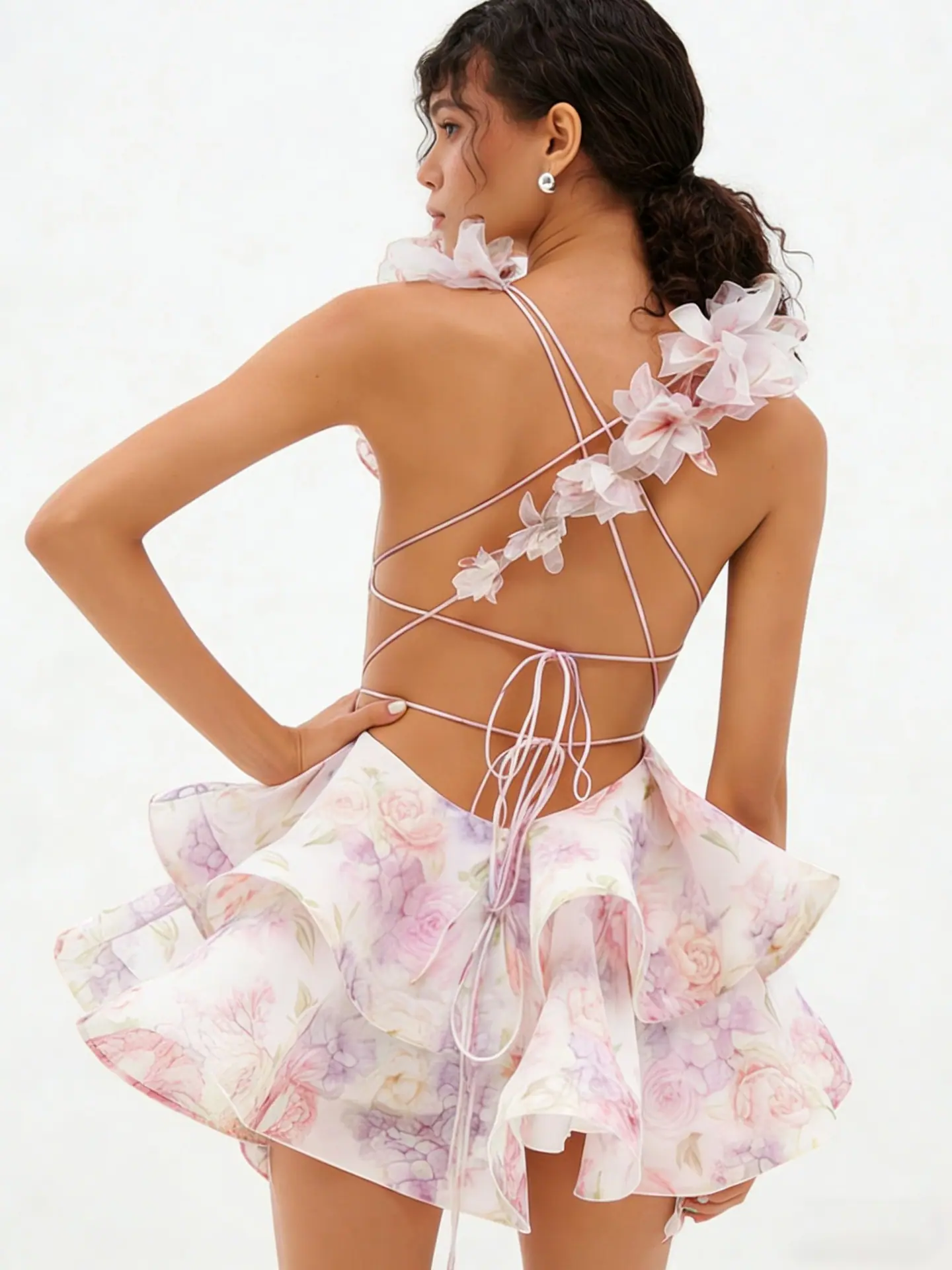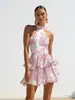 Serie de Vestidos de Falda Tulipán Slim Fit con Estampado Floral Europeo y Americano Vestido Corto sin Espalda con Tirantes Espagueti Estilo de Moda para Vacaciones 2