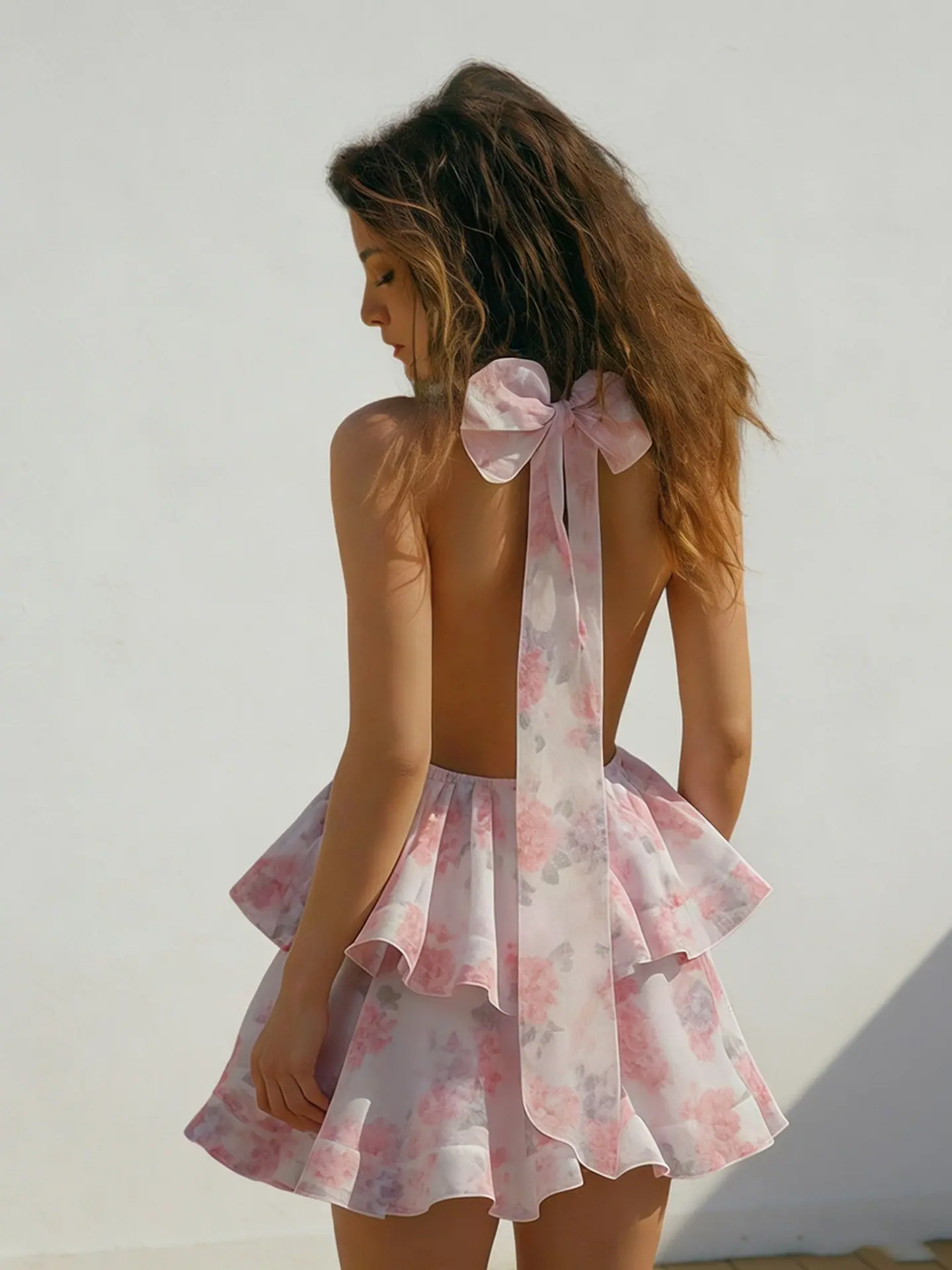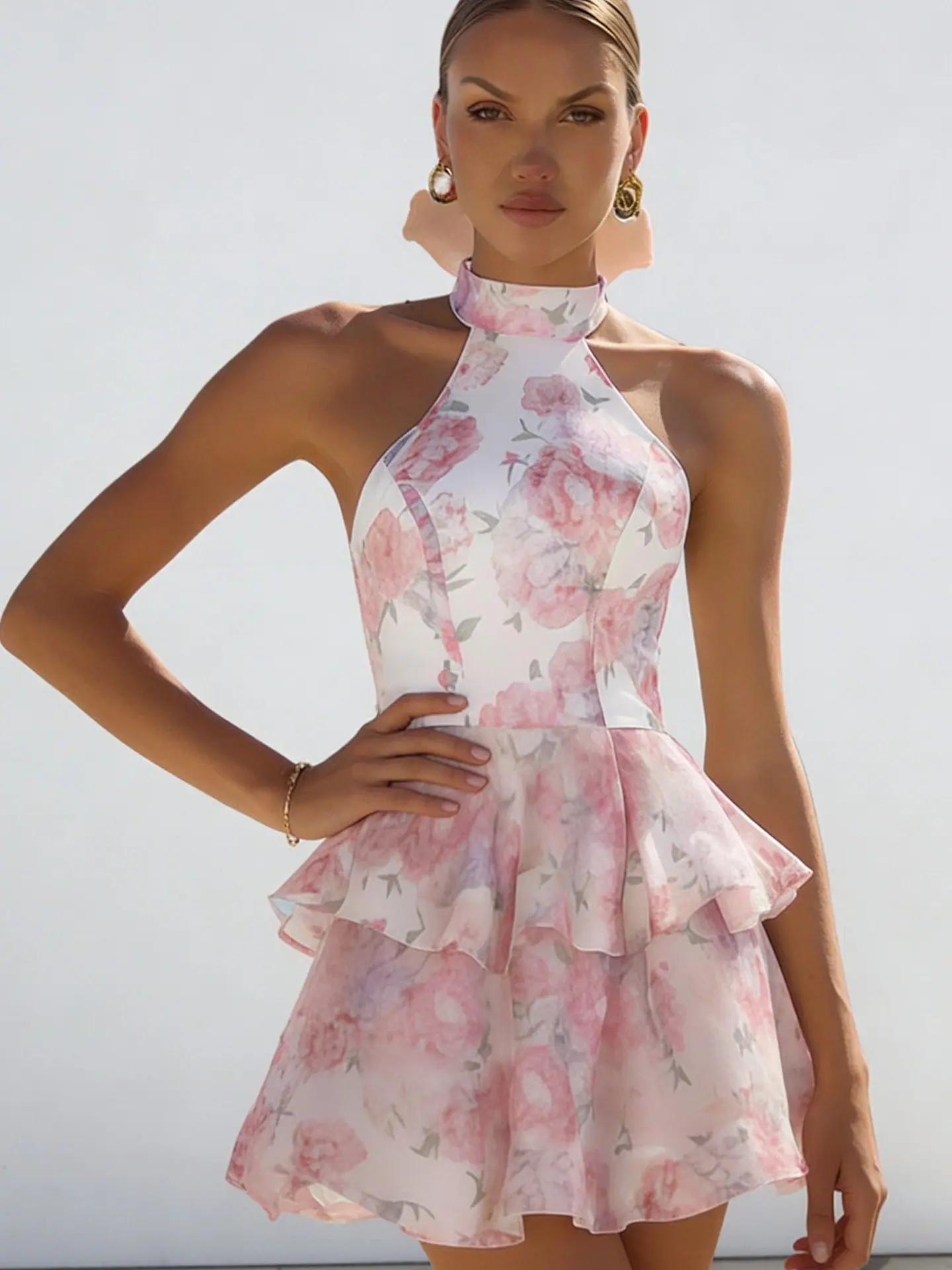 Compra Serie de Vestidos de Falda Tulipán Slim Fit con Estampado Floral Europeo y Americano Vestido Corto sin Espalda con Tirantes Espagueti Estilo de Moda para Vacaciones 2 al por mayor en Joom.pro