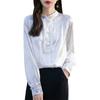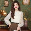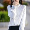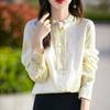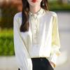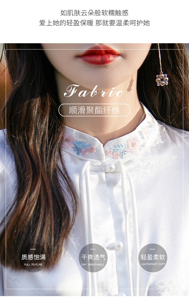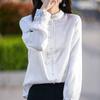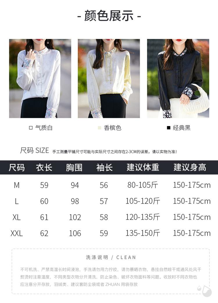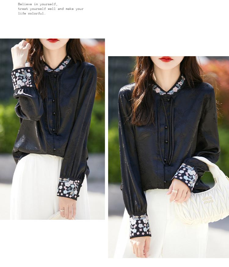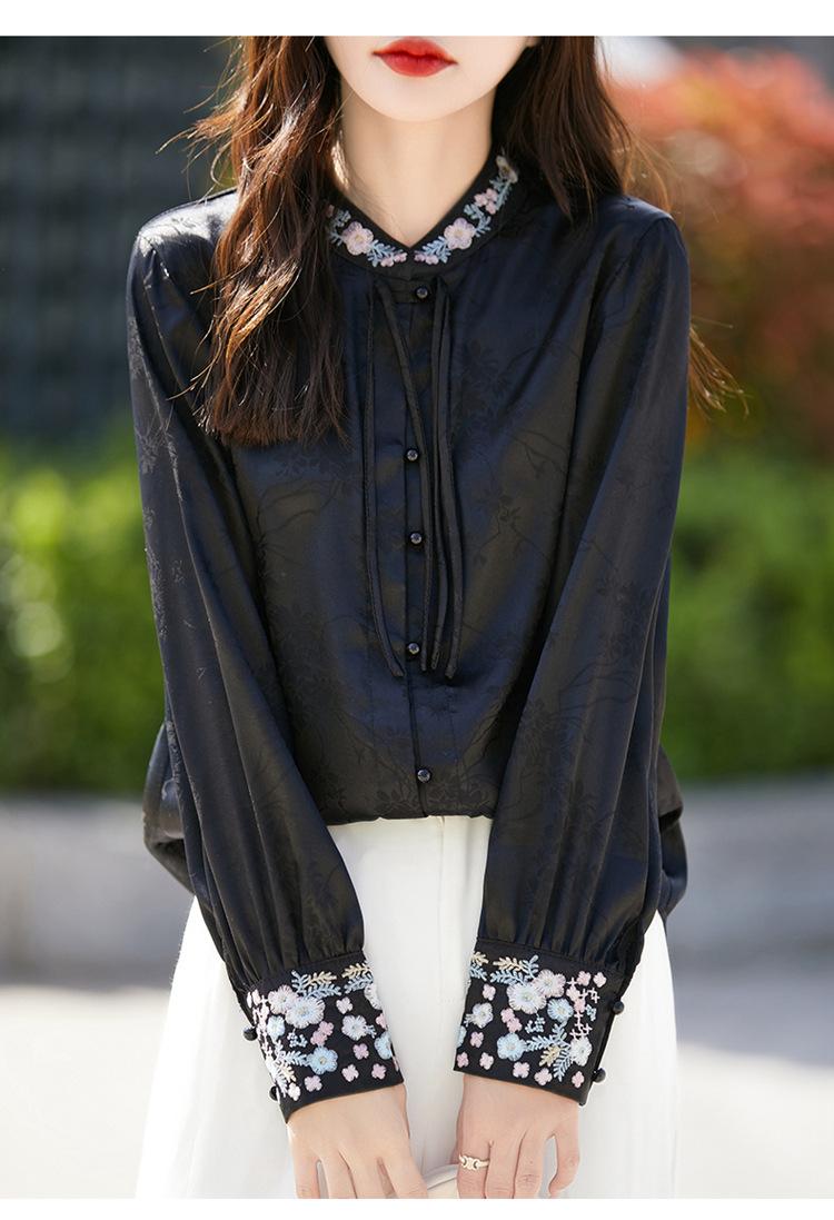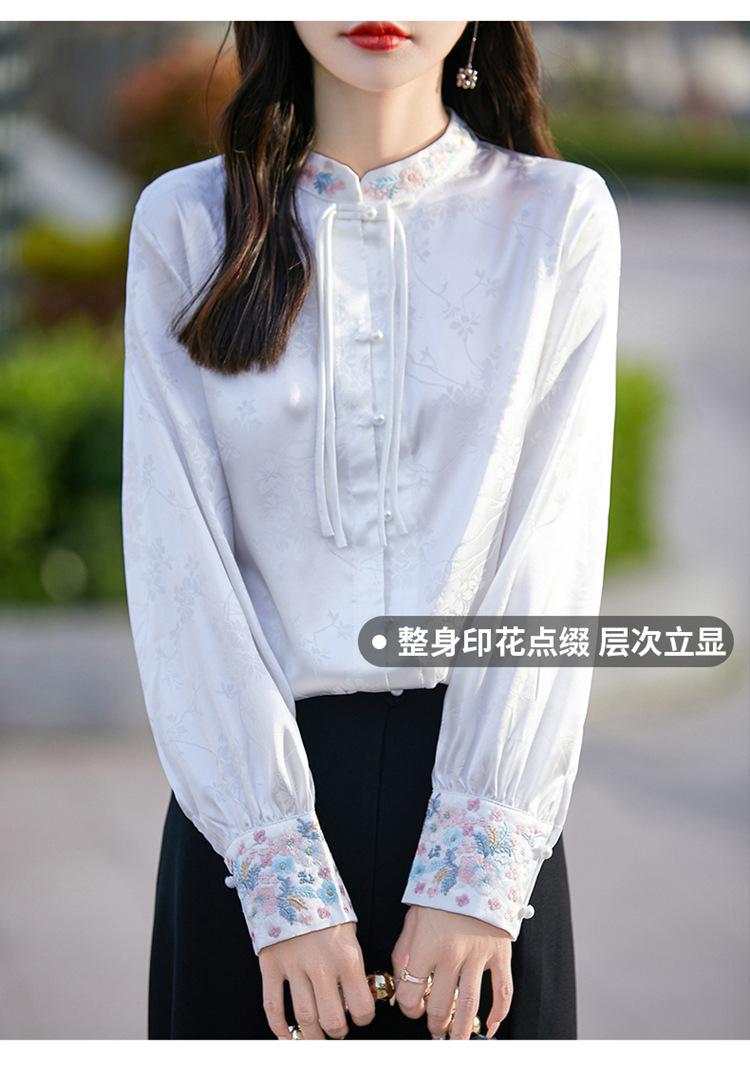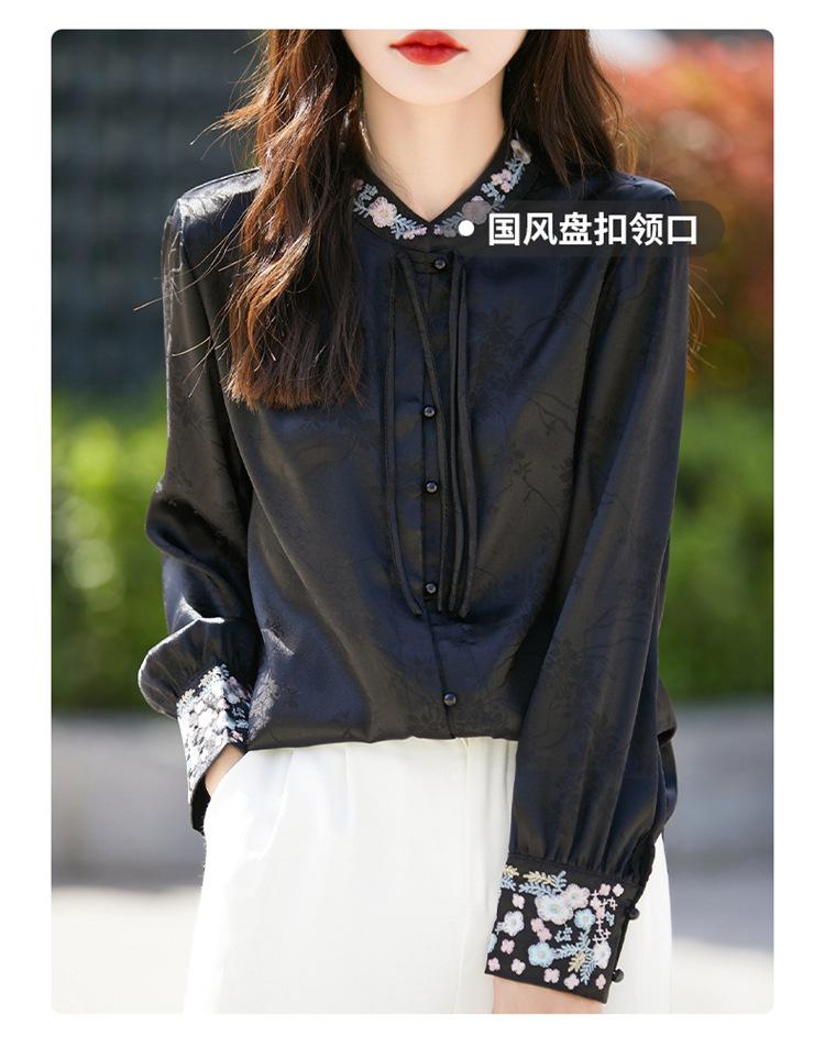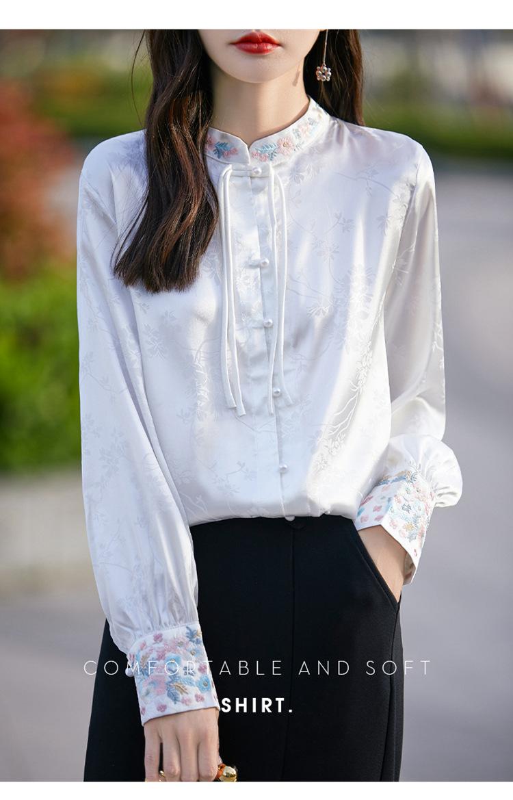 Camisa de cuello vertical estilo nacional chino para mujer, nueva primavera 2025, con diseño de hebilla bordada y manga larga.