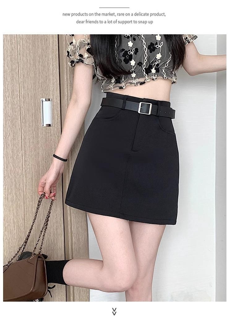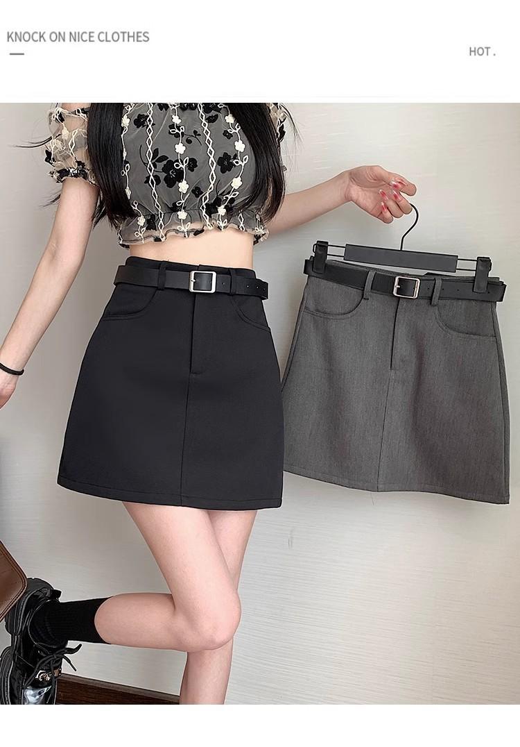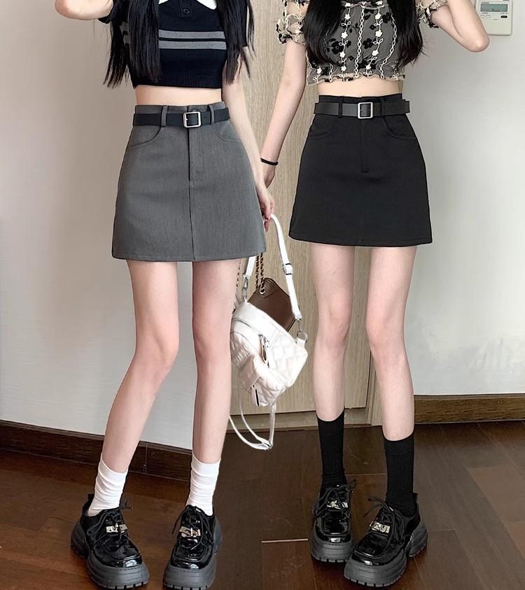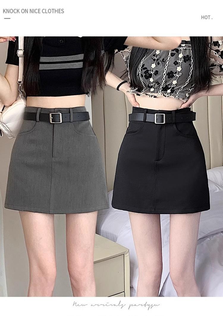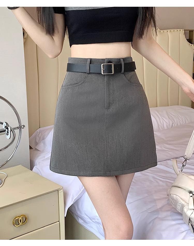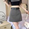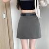 Falda Gris Corte A 2025 Nueva Verano para Mujer Cintura Alta Versátil Adelgazante Traje Profesional Falda Corta Ajustada a las Caderas para Personas Pequeñas