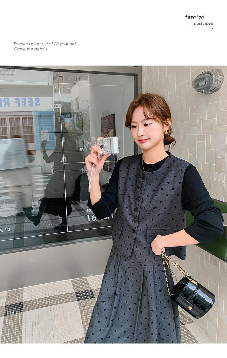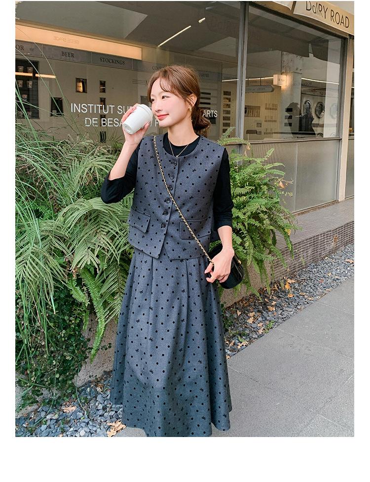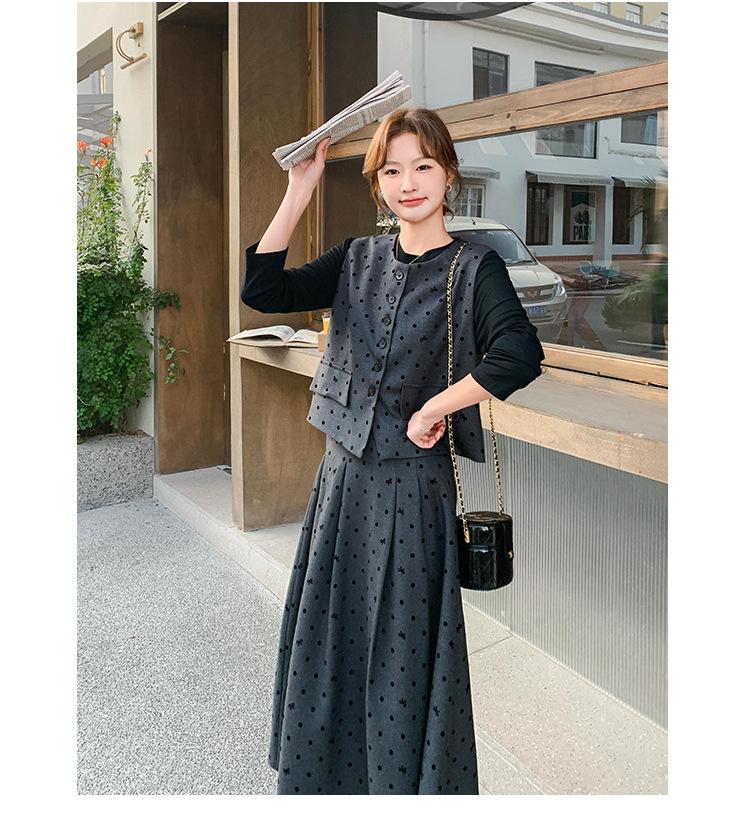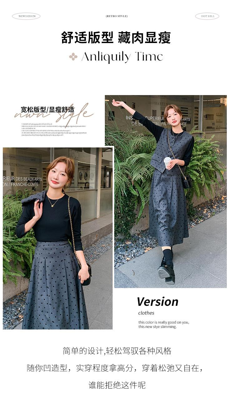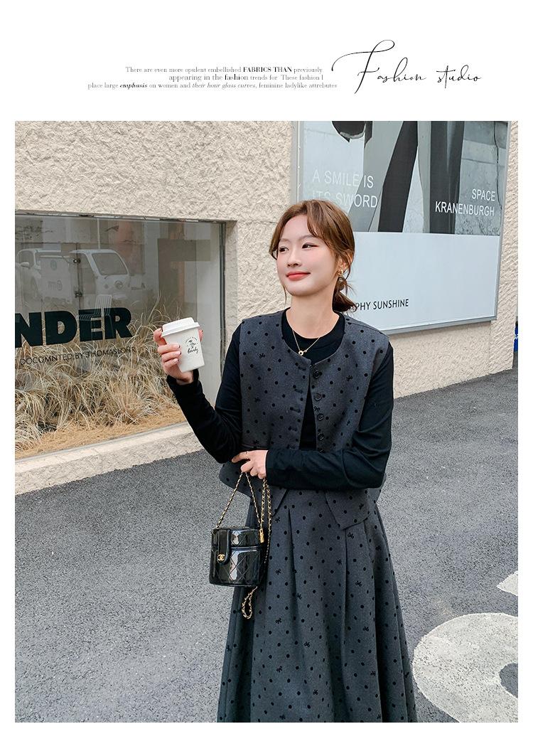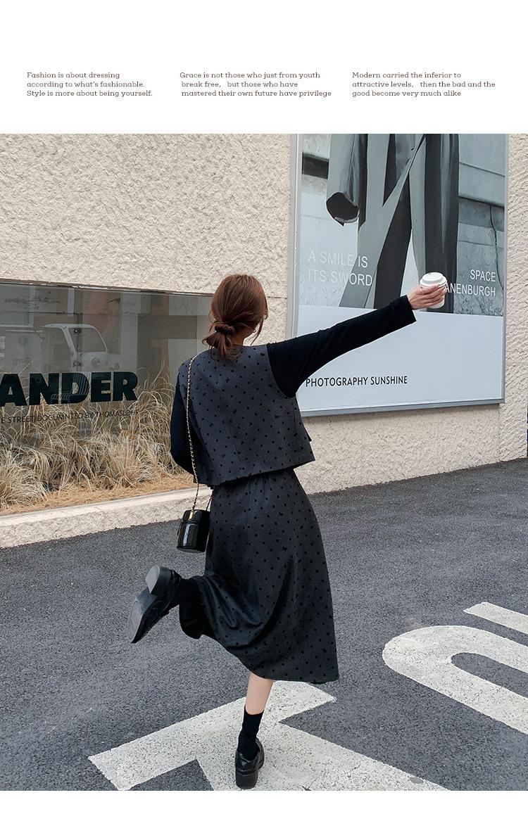 Traje de mujer otoño y primavera 2025 reductor de edad versátil chaleco + falda midi + camisa básica conjunto de tres piezas moderno