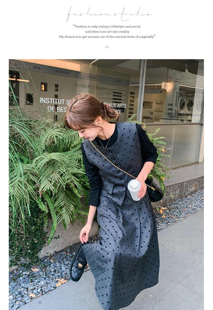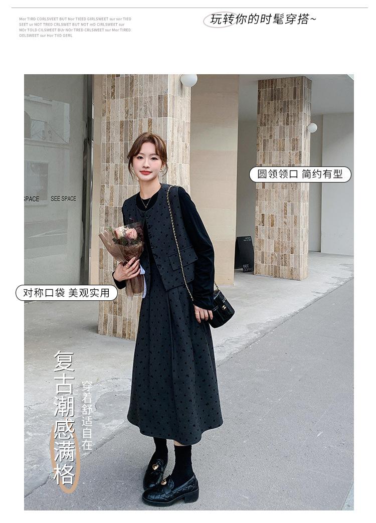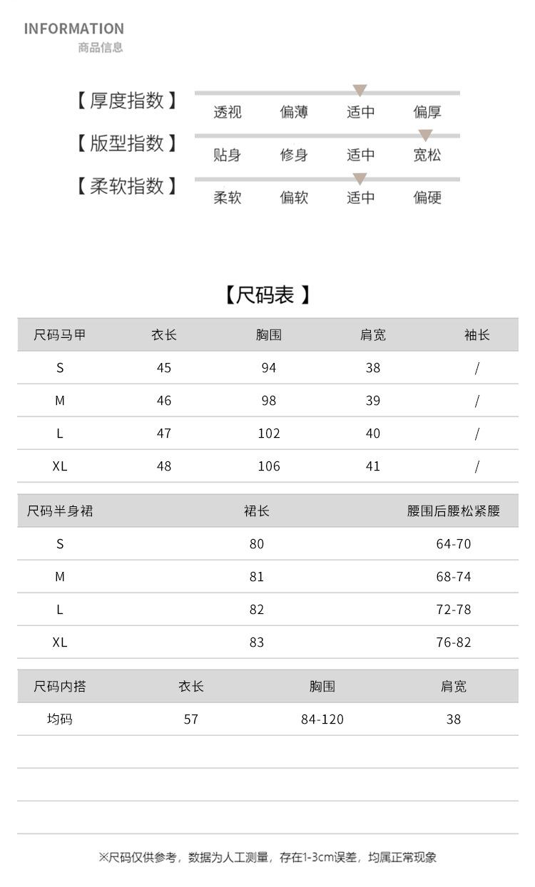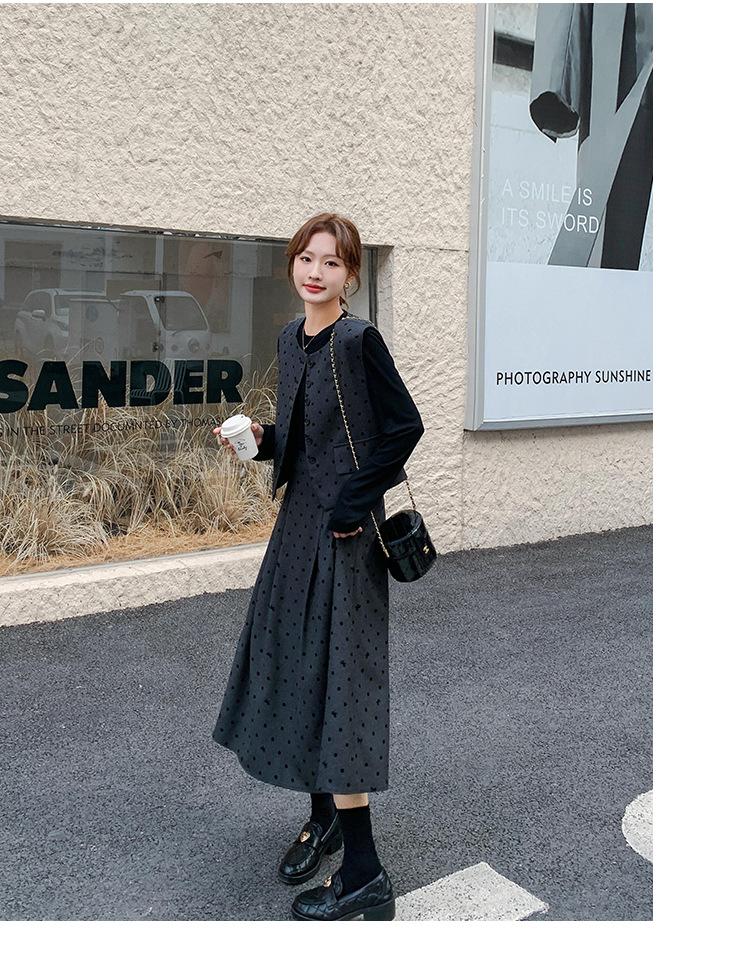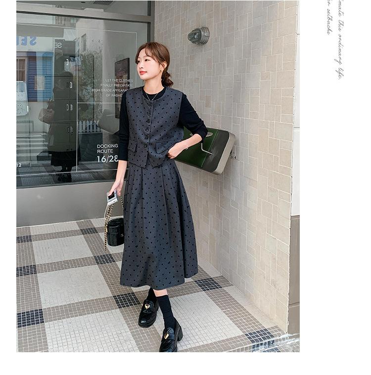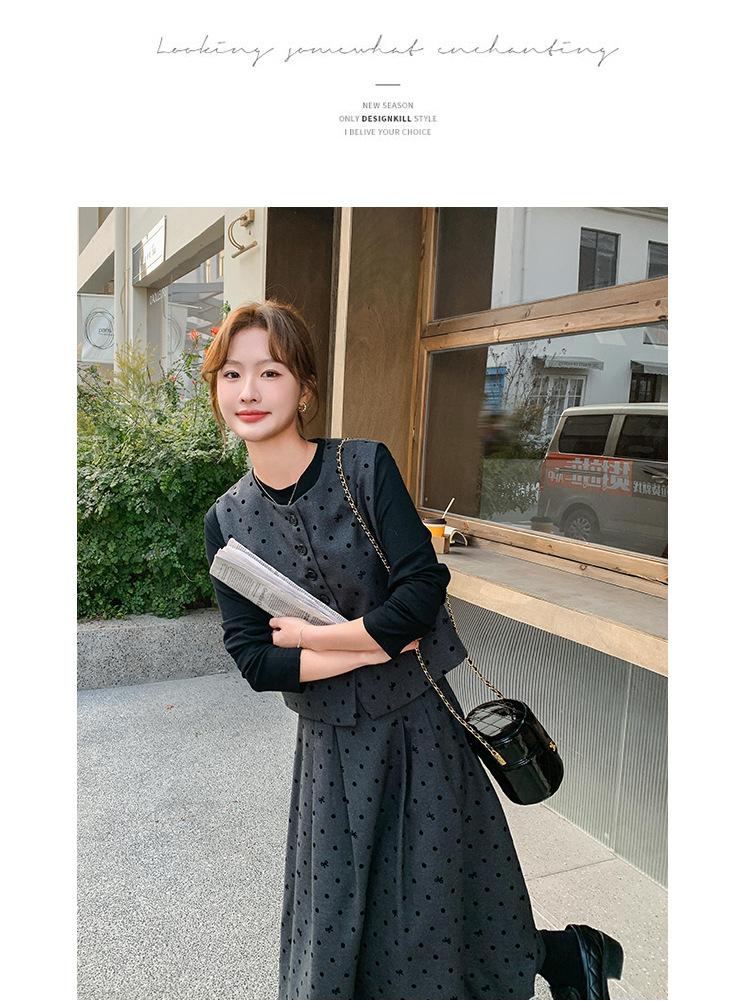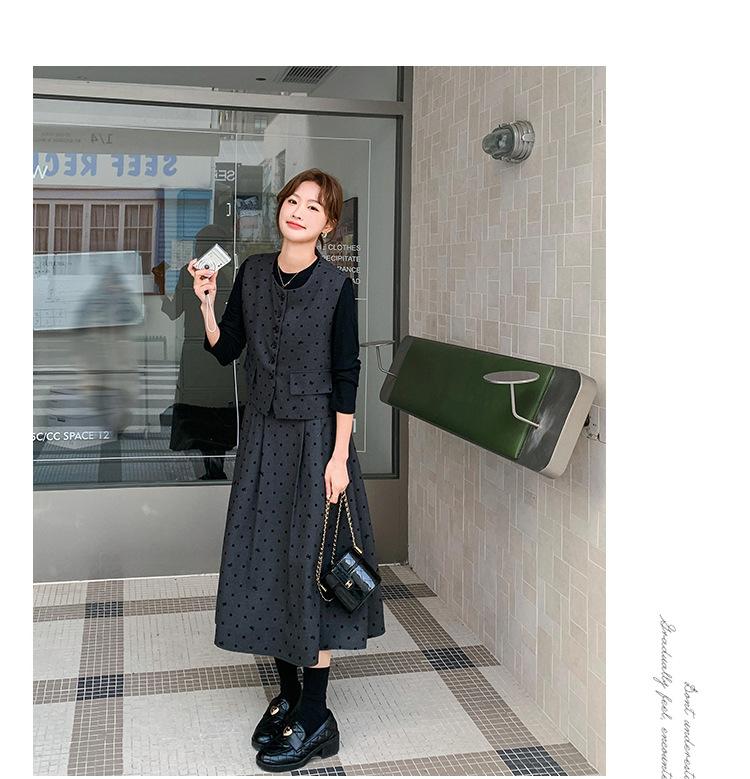 Traje de mujer otoño y primavera 2025 reductor de edad versátil chaleco + falda midi + camisa básica conjunto de tres piezas moderno