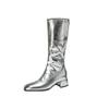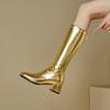 Botas de otoño e invierno de tacón medio para mujer de talla grande, cómodas de punta redonda, tacón de bloque, cremallera trasera, zapatos de moda, botas de tubo alto de charol nuevas para mujer